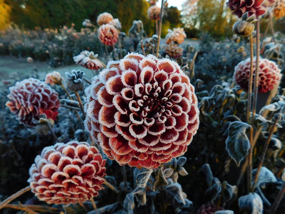 Kā iepriekš ziņots, naktī uz trešdienu daudzviet temperatūra noslīdēja zem nulles. Visvēsākais rīts bijis Zosēnos, kur gaiss atdzisis līdz -3.7 grādiem. Salna konstatēta arī Salaspilī, kur atrodas Nacionālais botāniskais dārzs. Direktors Andrejs Svilāns dalījies ar fotogrāfijām, kurās dārza rudens ziedus pārsteigusi salna. Pēc direktora teiktā, naktī ziedi pārvērtušies par "sniega rozēm" un "sniega dālijām".