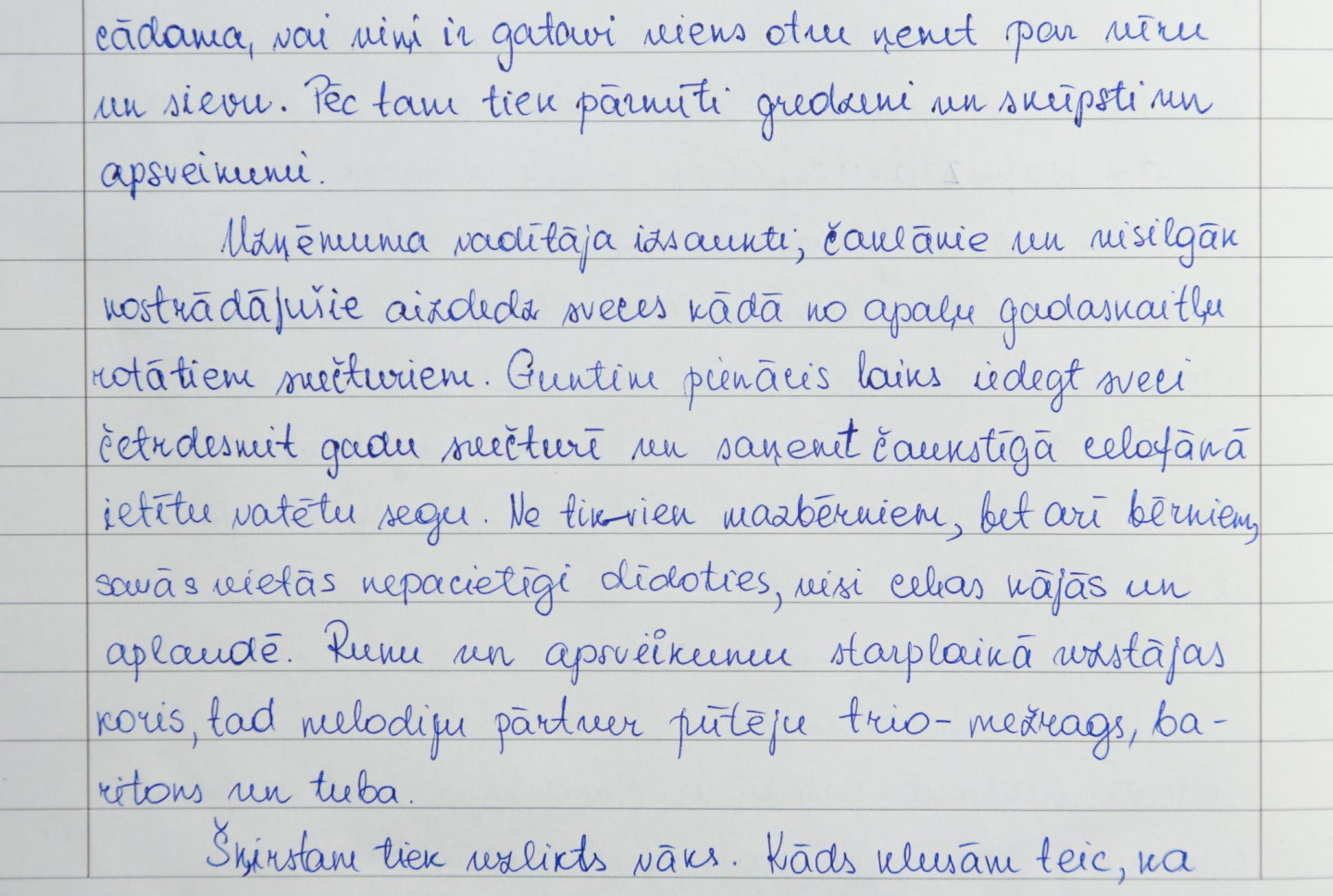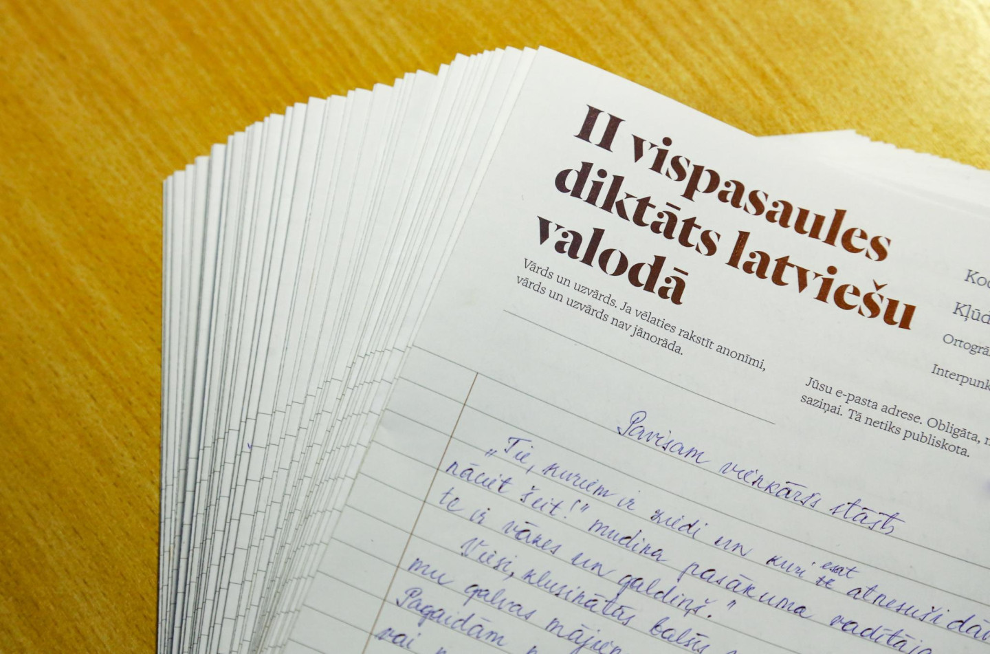 Otrajā "vispasaules diktātā" latviešu valodā tiešsaistē un klātienē kopā piedalījās 787 interesenti, ziņo LETA. Klātienē Latvijas pilsētās diktātu rakstīja 249 cilvēki, tostarp Rīgā - 122, Liepājā - 73, Rēzeknē - 10, Daugavpilī - 5, Ventspilī - 25 un Valmierā - 14. Savukārt interneta vietnē iesniegti 538 darbi no 25 valstīm. Piedāvājam ieskatu, kā diktāta rakstīšana notika Latvijas Universitātes Humanitāro zinātņu fakultātē.