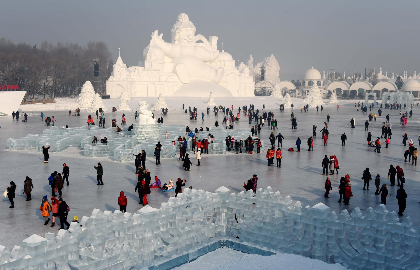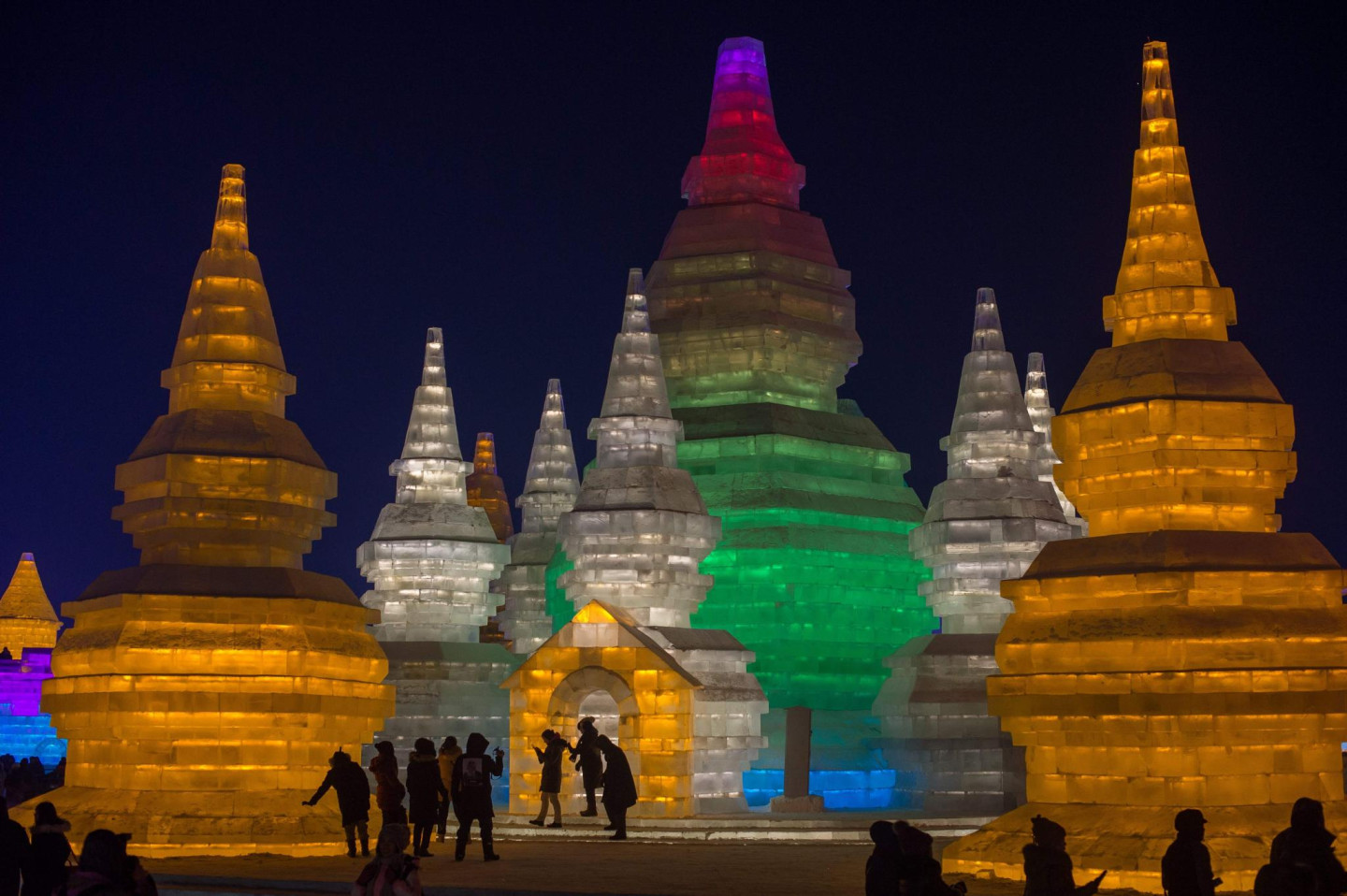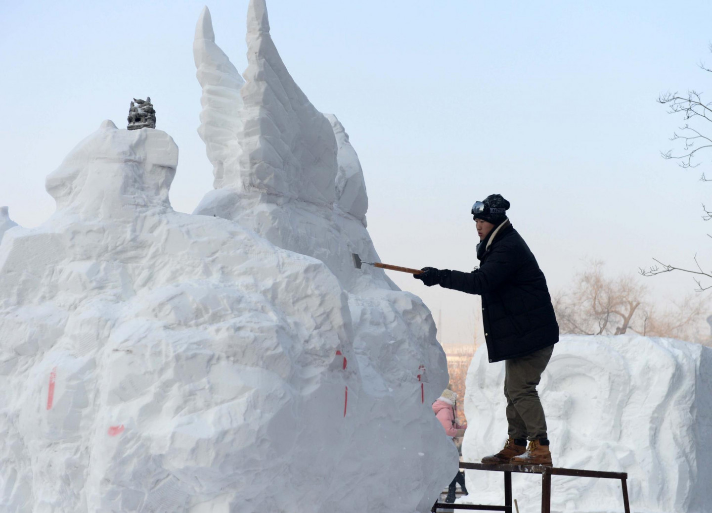 Ķīnas pilsētā Harbinā interesenti var priecēt acis ar izciliem māksliniekus darbiem, kas veidoti no ledus un sniega.