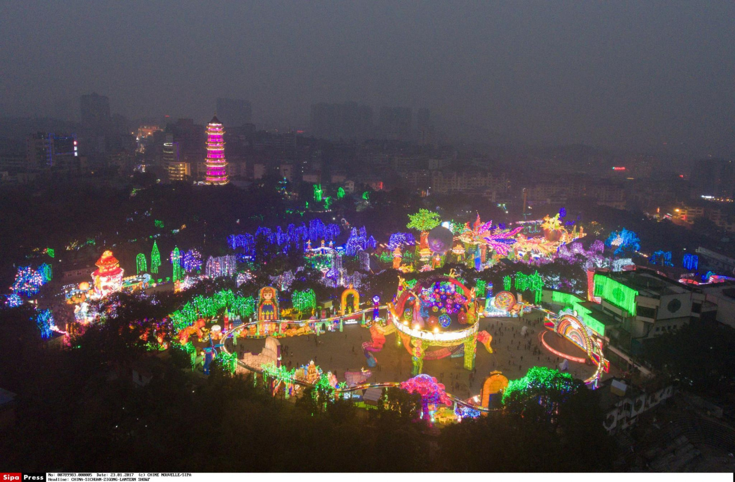 Ķīnas pilsētā Zigong norisnās gaismas laternu festivāls.