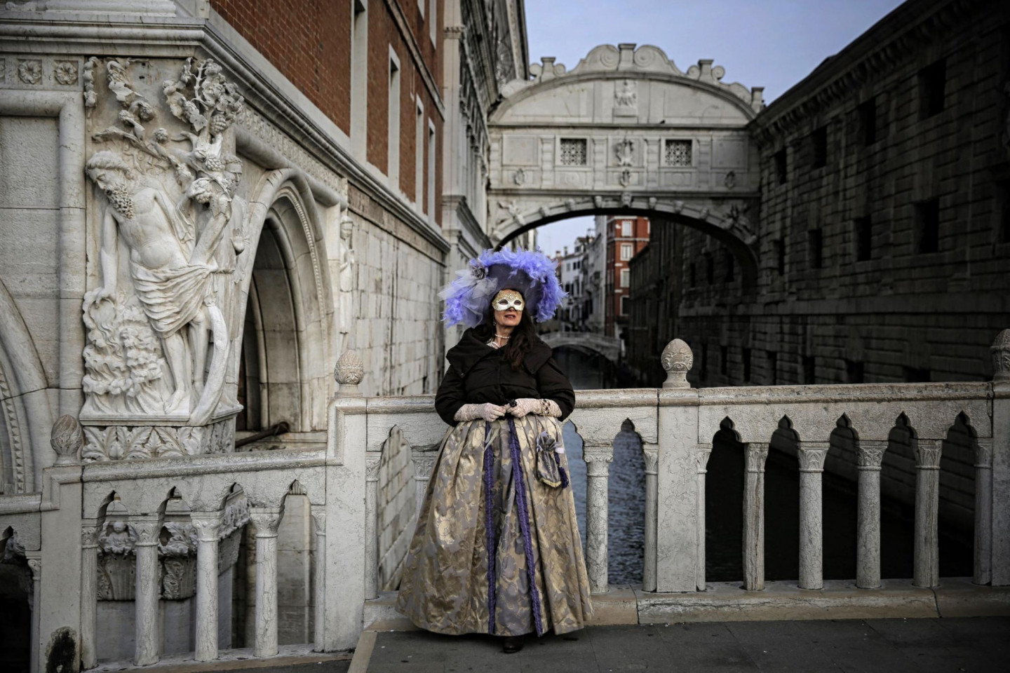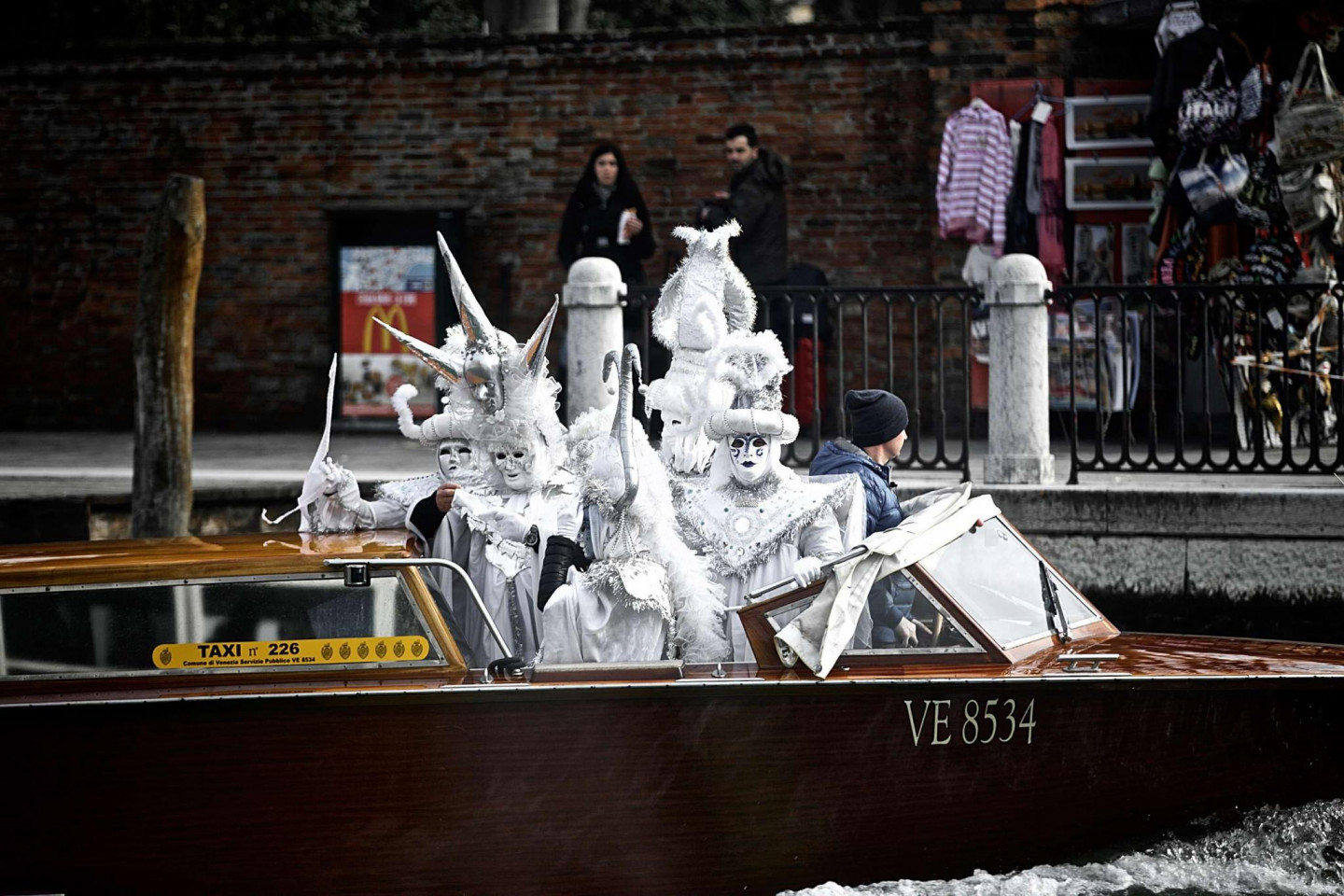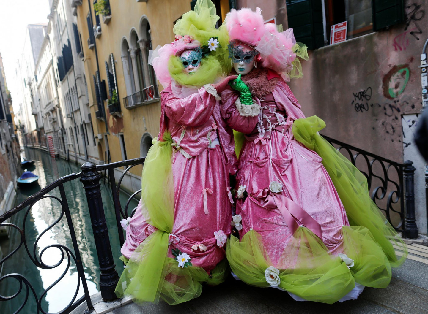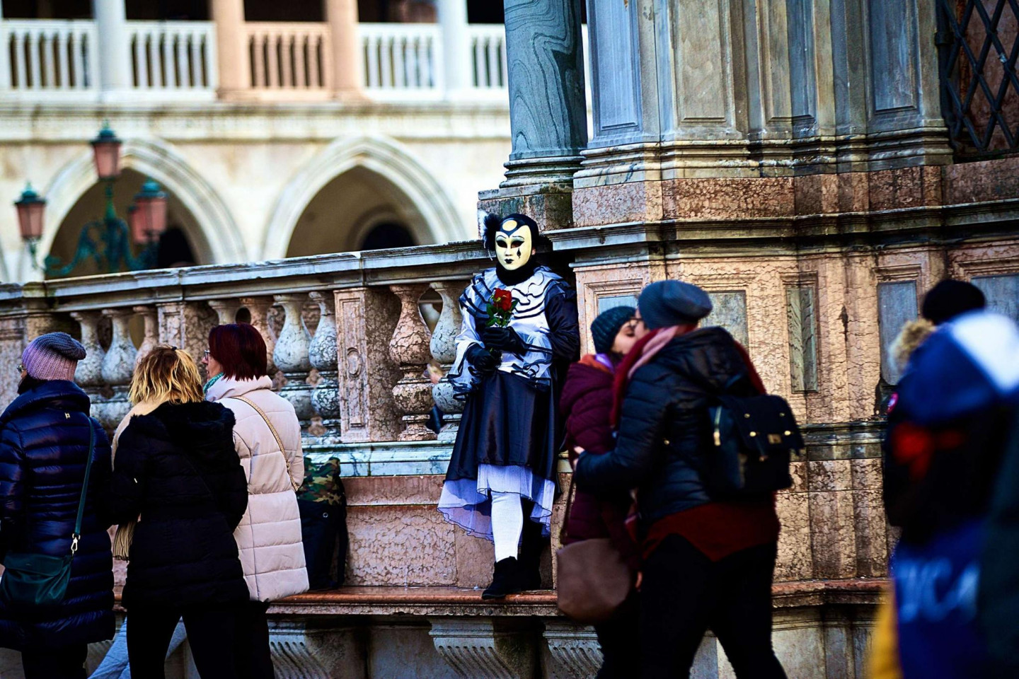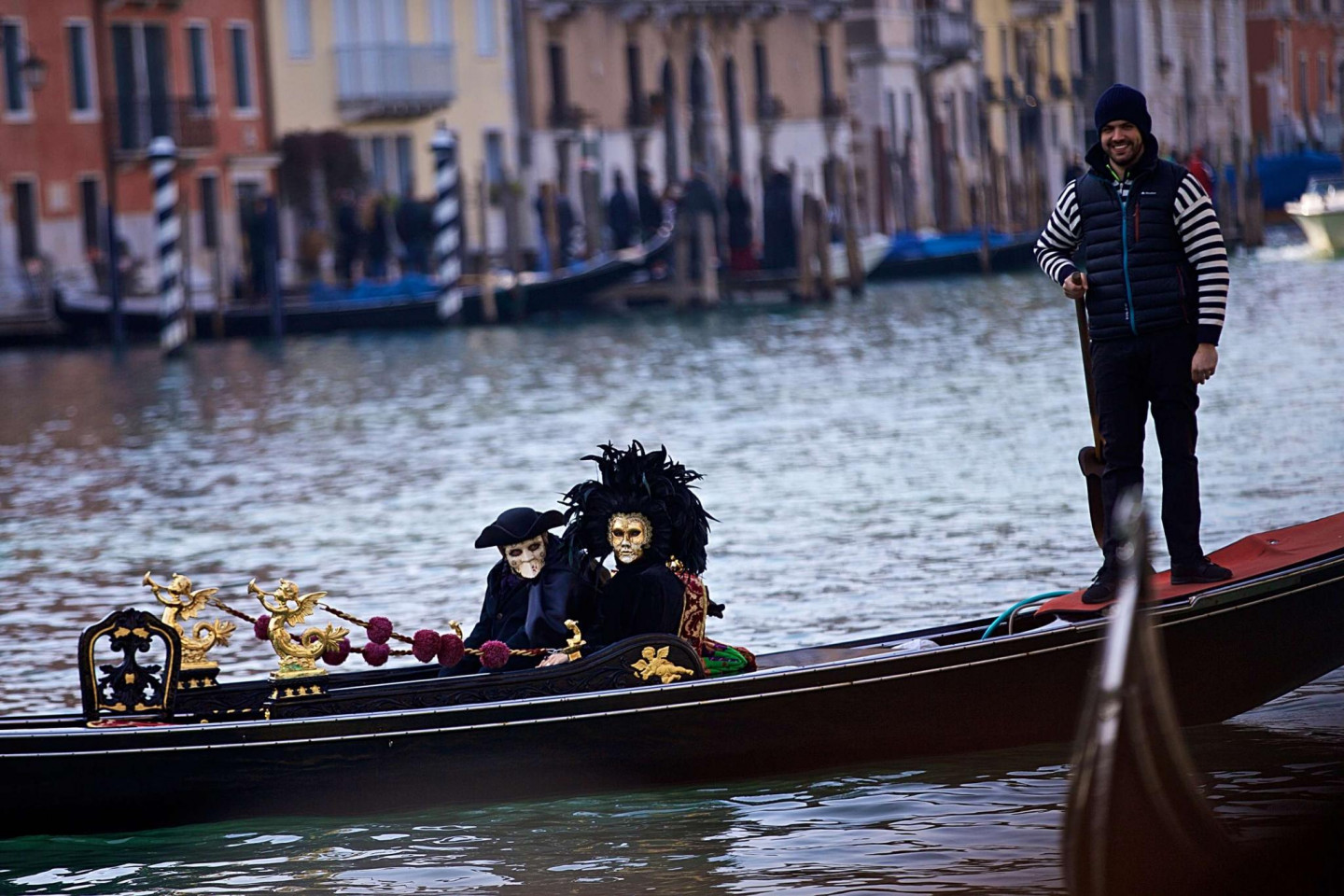 Karnevāla dalībnieki piepilda Venēcijas ielas un kanālus.