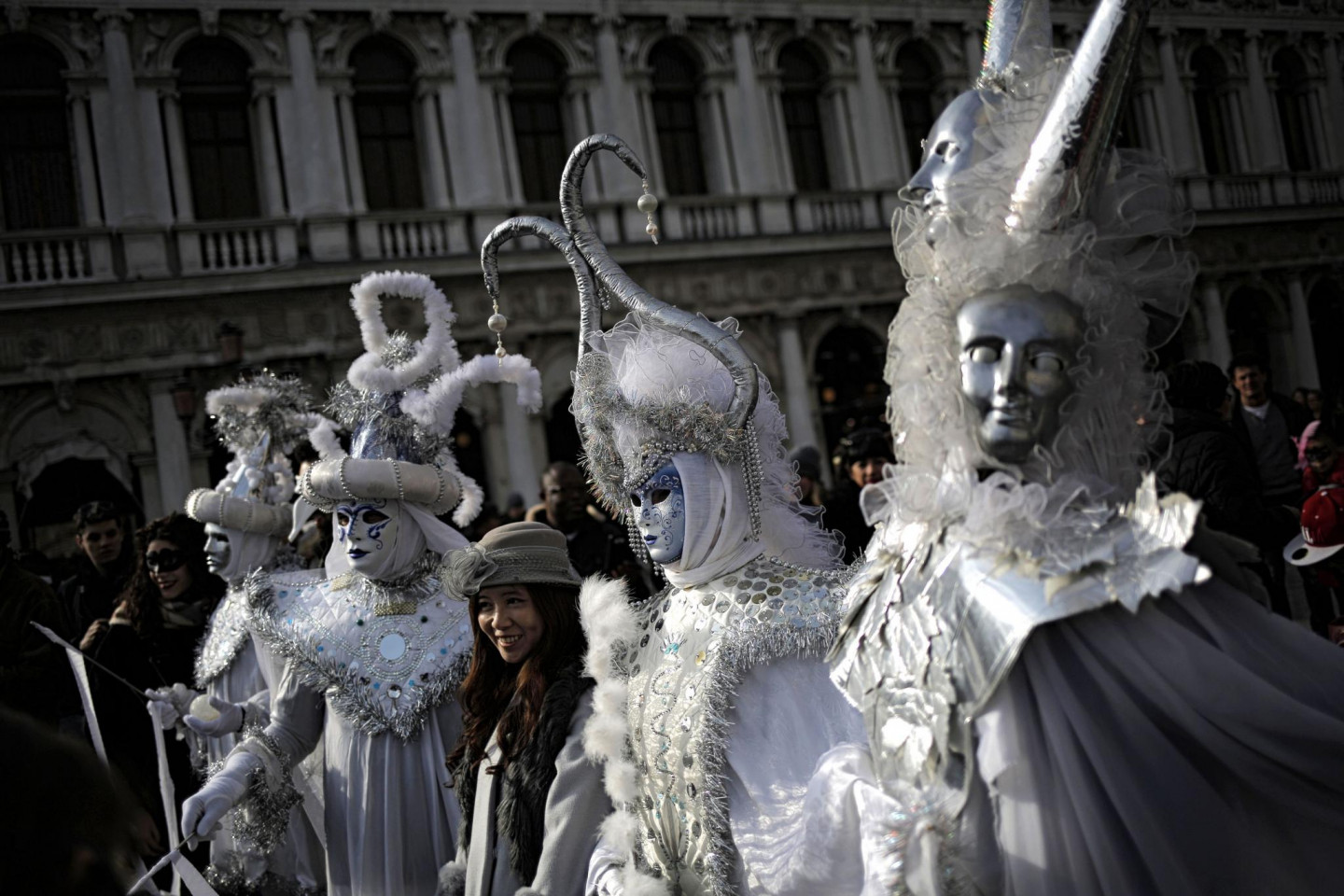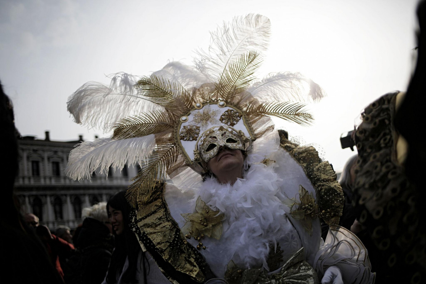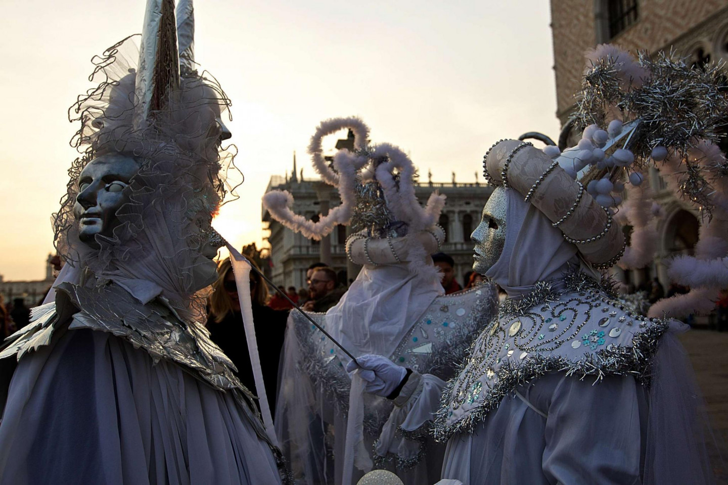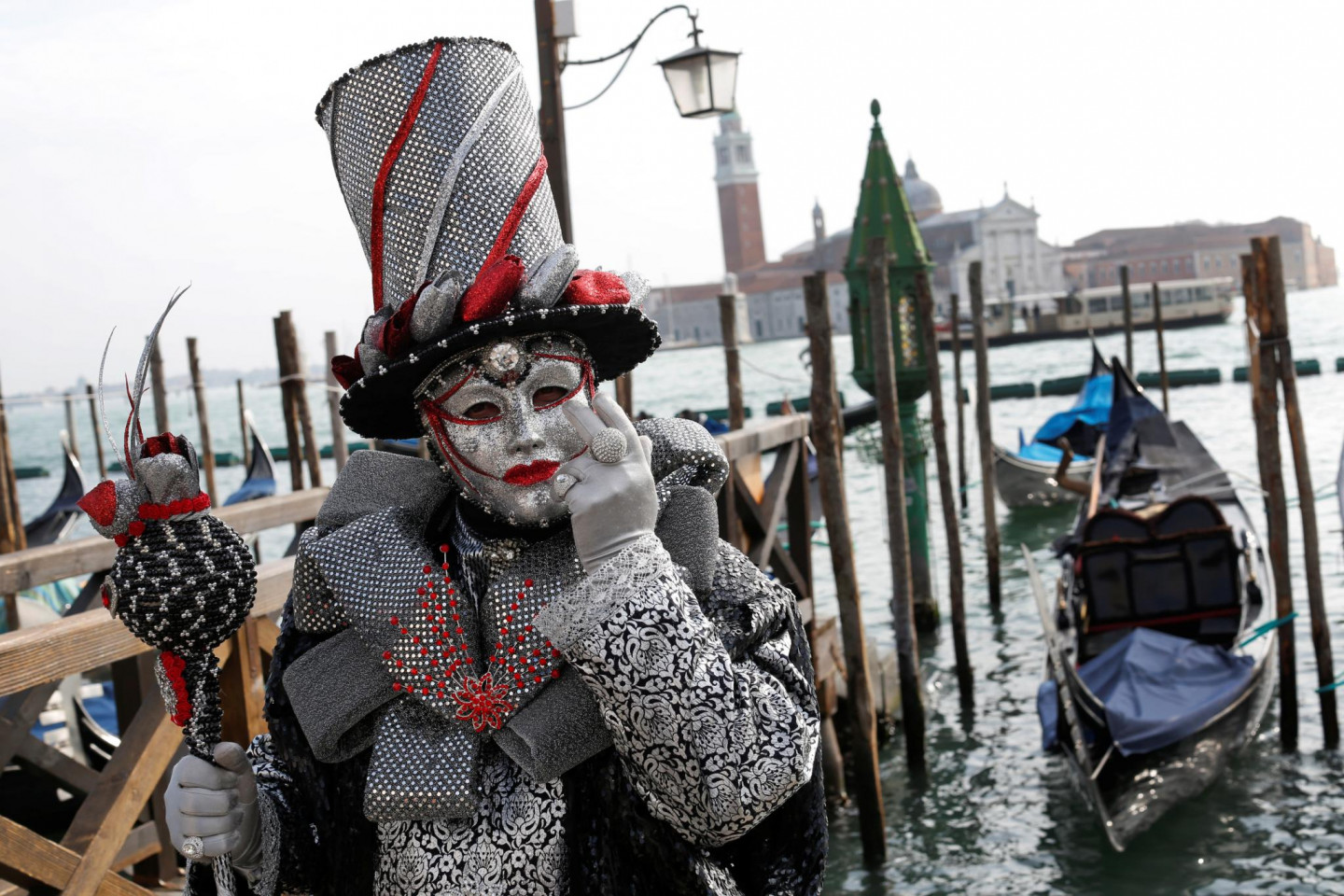 Karnevāla dalībnieki piepilda Venēcijas ielas un kanālus.