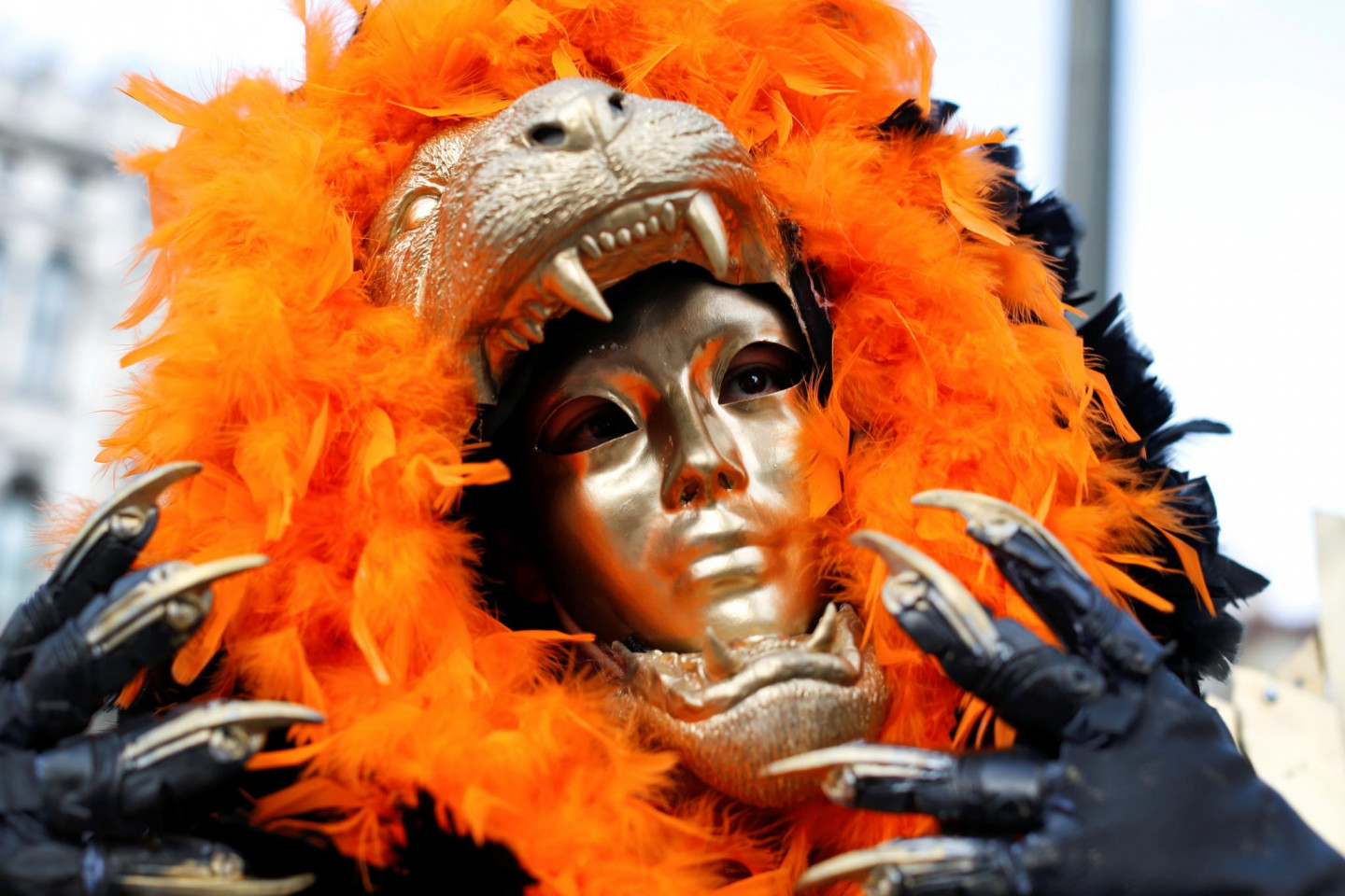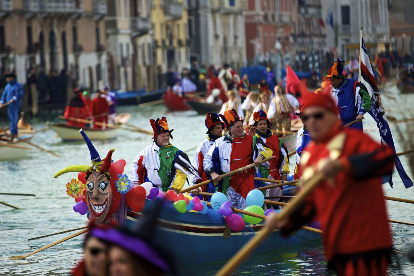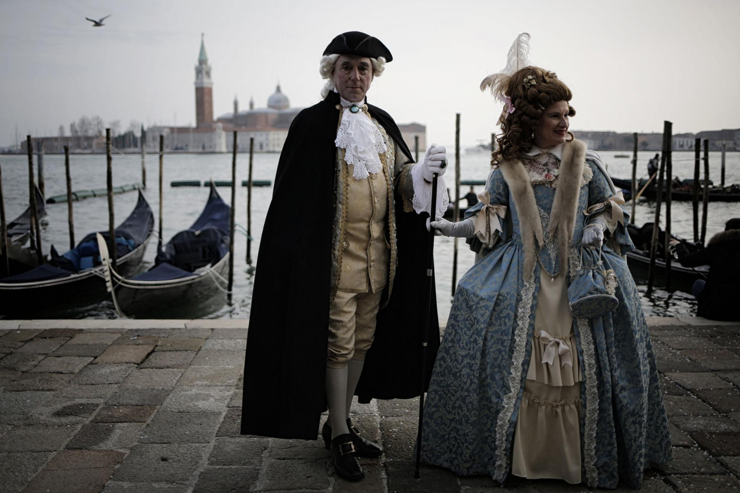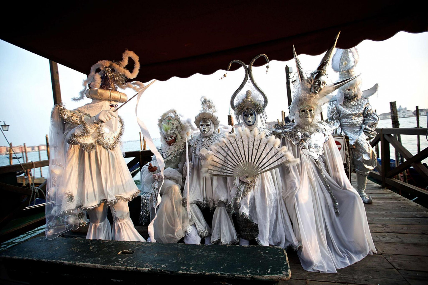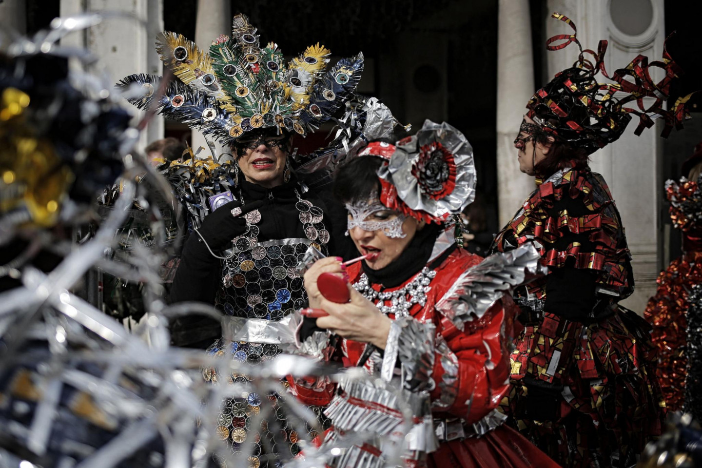 Karnevāla dalībnieki piepilda Venēcijas ielas un kanālus.