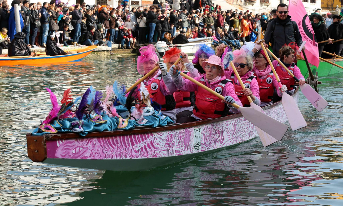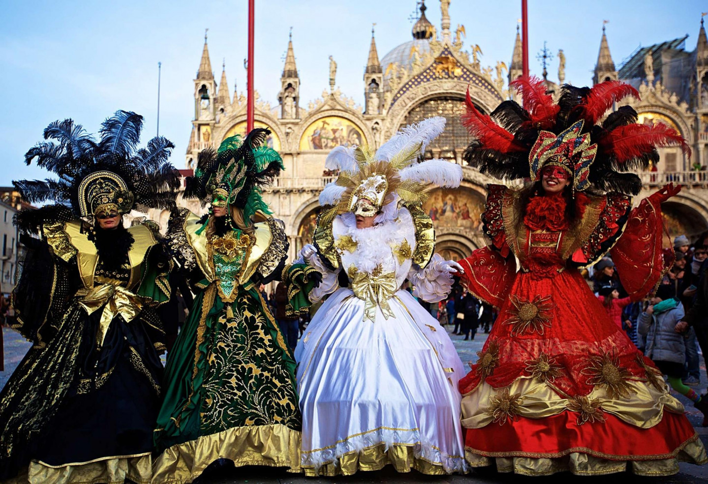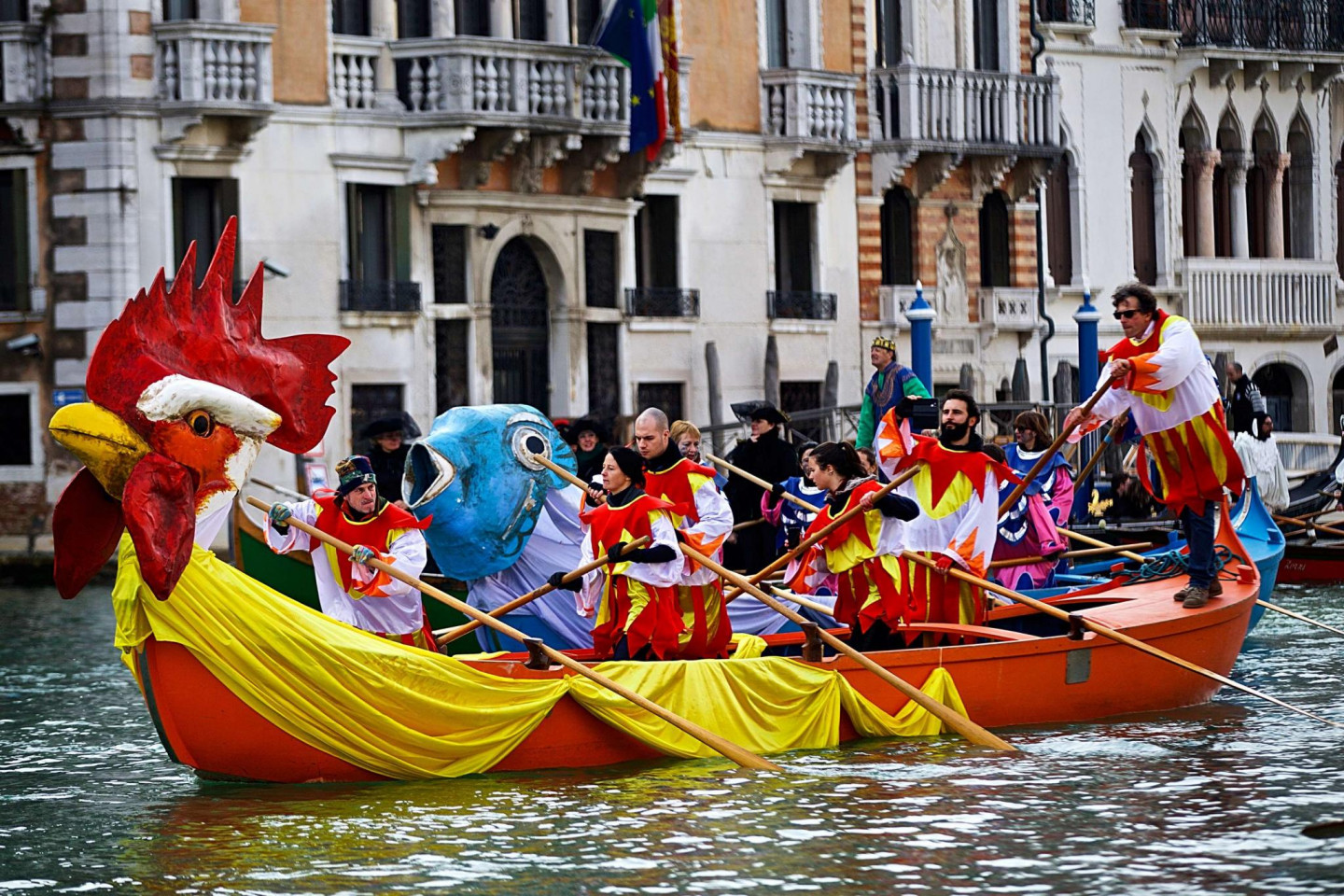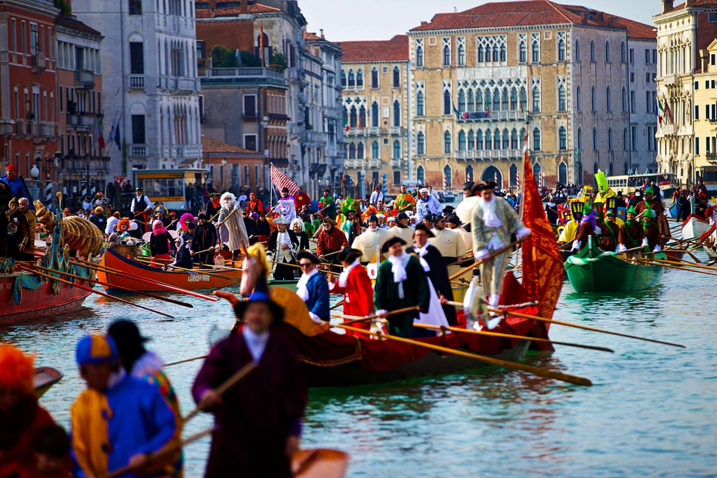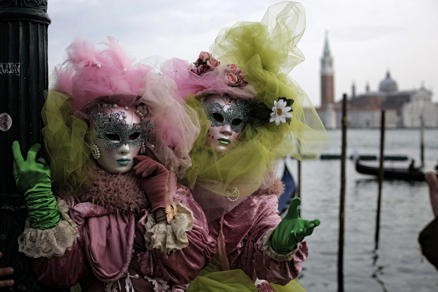 Karnevāla dalībnieki piepilda Venēcijas ielas un kanālus.