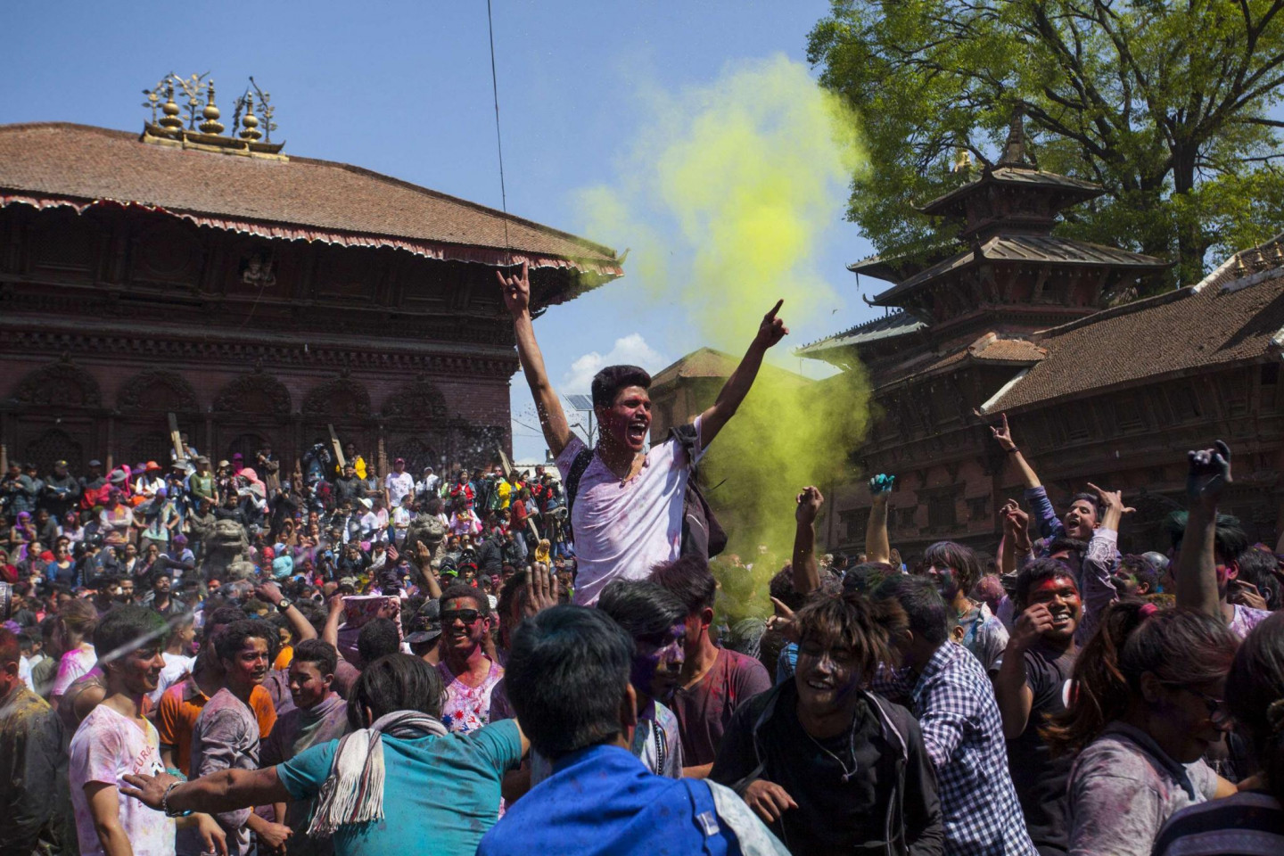 Nepālā pavasari sagaida ar krāsu festivālu