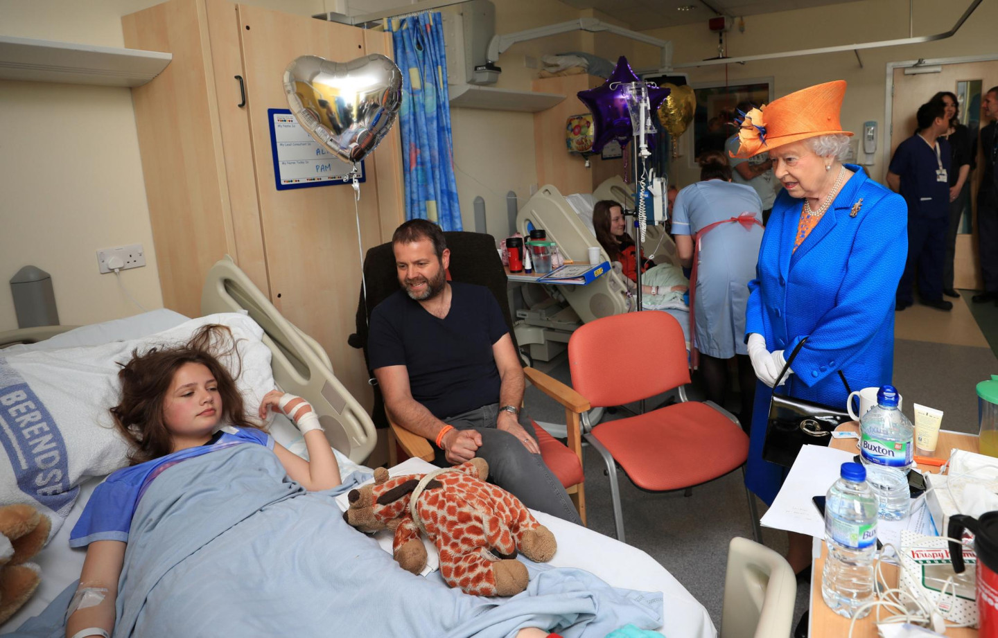 Lielbritānijas karaliene Elizabete II ceturtdien viesojās Mančestras bērnu slimnīcā, kur apciemoja pirmdienas teroraktā cietušos bērnus.