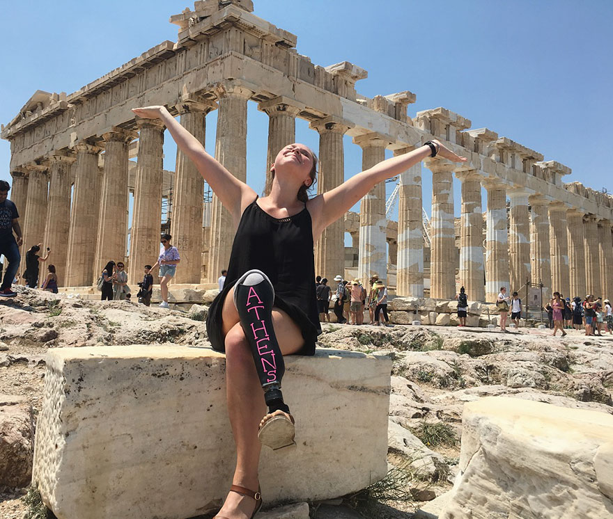 Meitene, kura bērnībā zaudēja daļu savas labās kājas un nēsā protēzi, iekarojusi interneta uzmanību. Apceļojot valstis, viņa uz protēzes uzraksta, kurā pilsētā atrodas un tā nofotografējas. Meitenes smaids un pozitīvisms iedvesmojis daudzus.