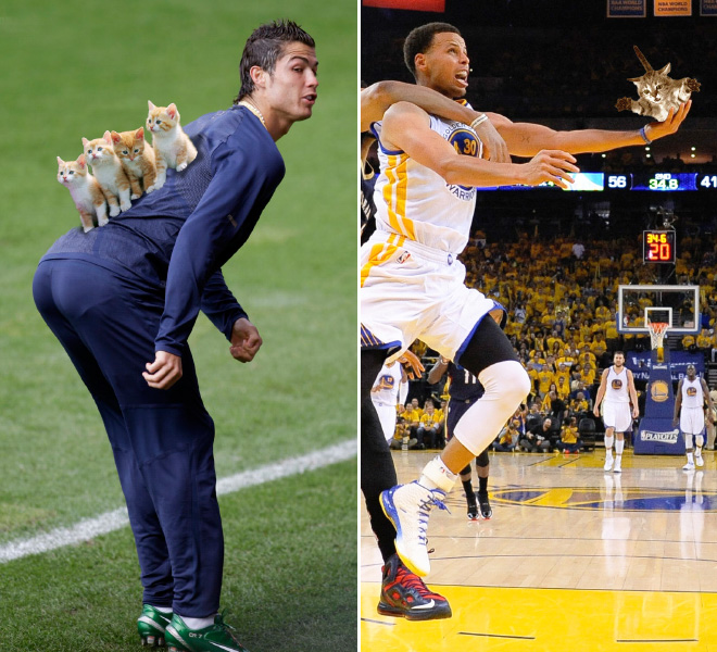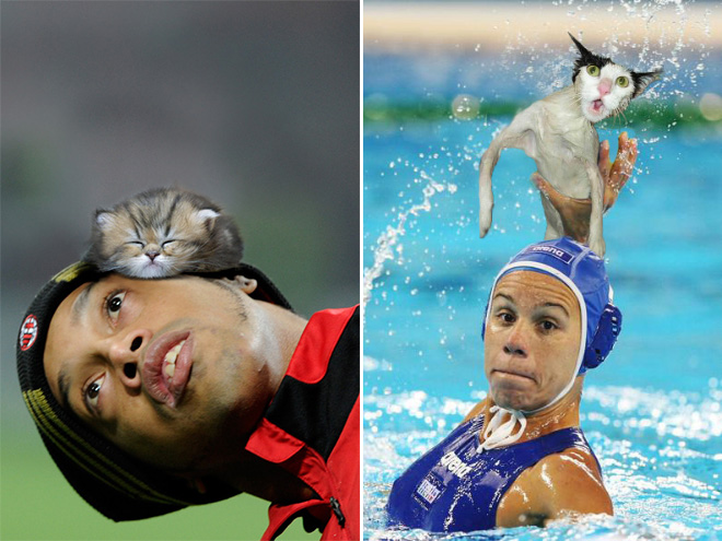 Amizants skats - sporta bumbas aizvieto ar kaķēniem