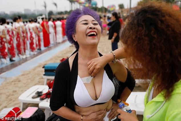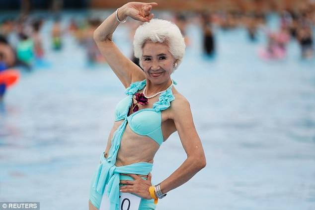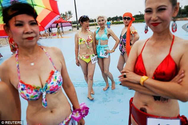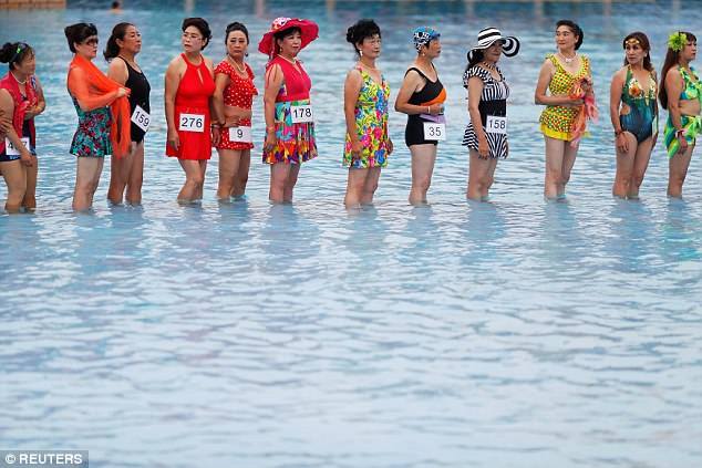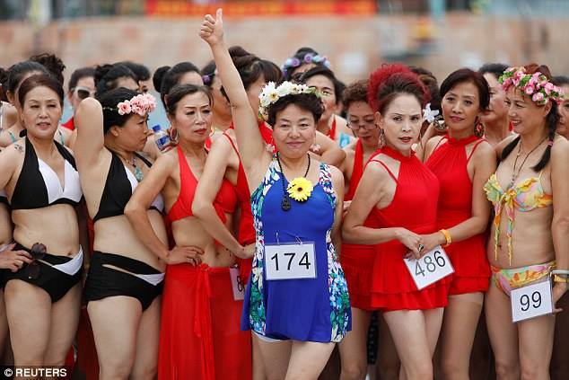 Facebook lapa "People Daily China" izrāda fotogaleriju no bikini konkursa, kurā var piedalīties tikai sievietes, kurām pār 55.