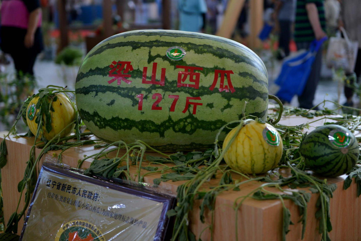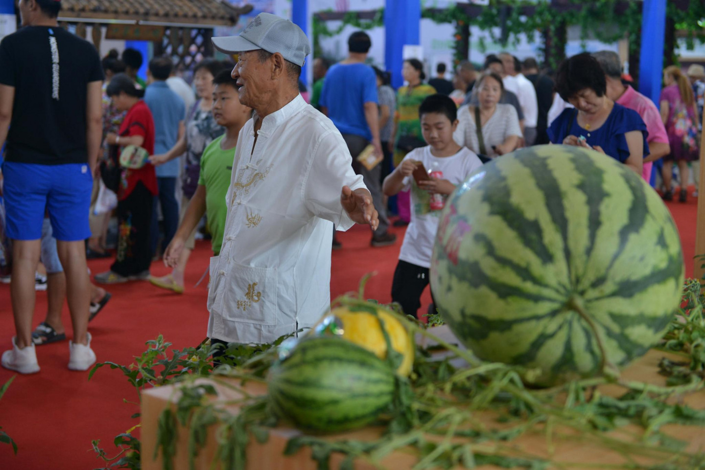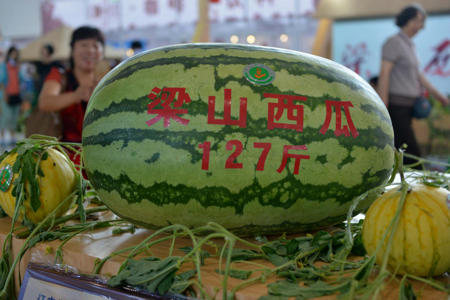 Lauksaimniecības izstādē Ķīna daudzu apmeklētāju uzmanību piesaistīja milzu arbūzs, kura svars sasniedz 65 kilogramus.