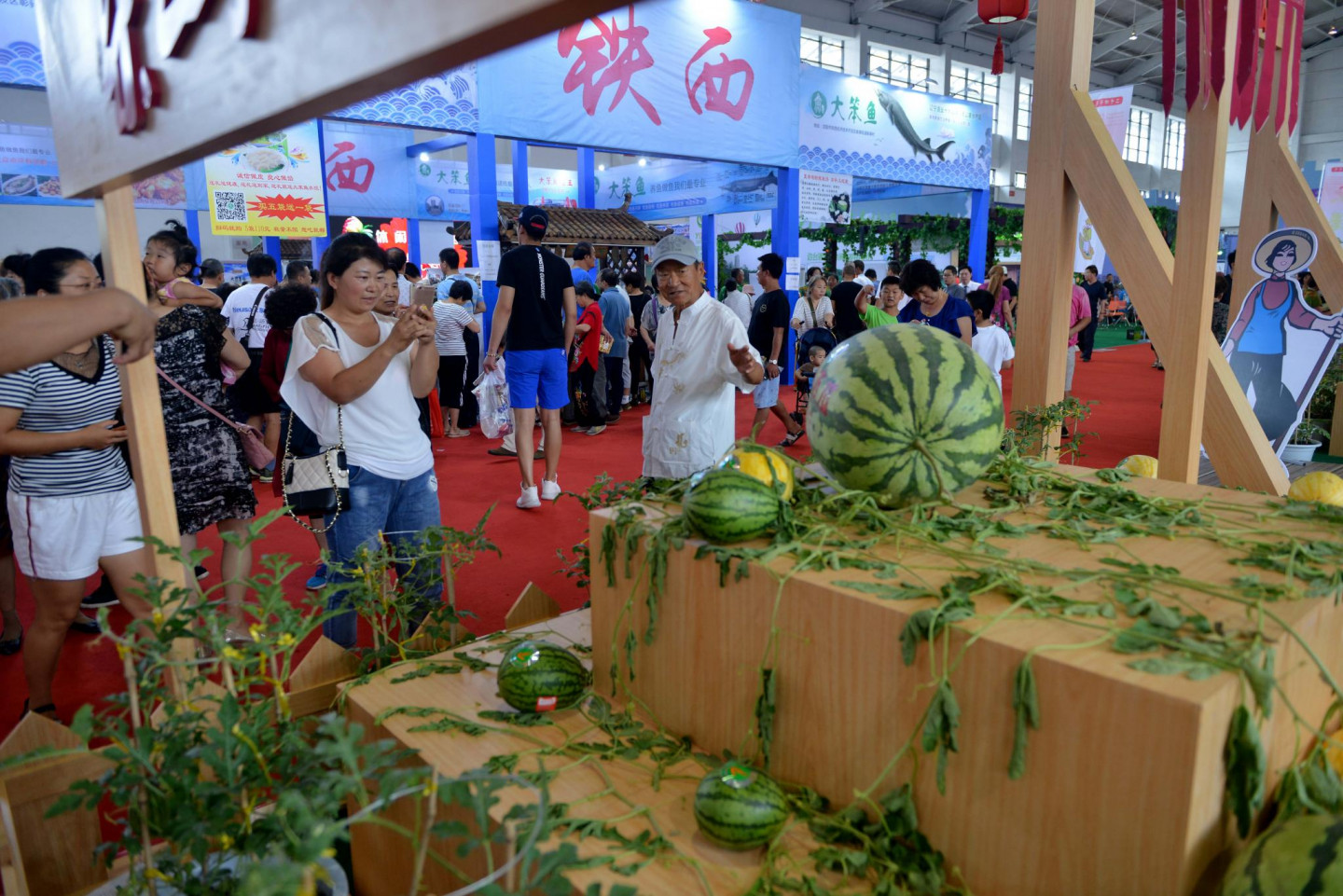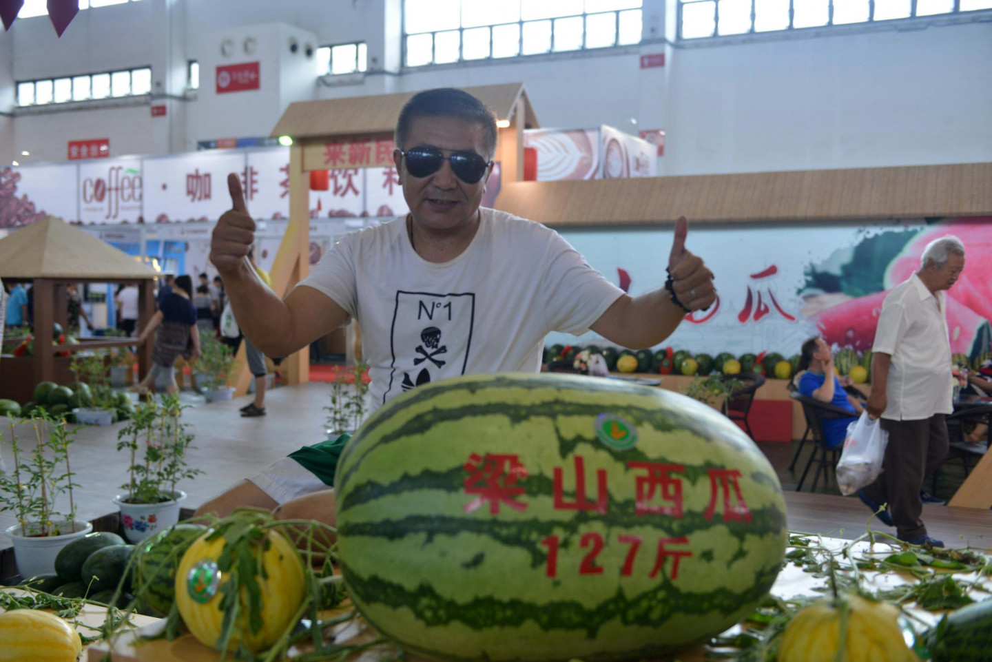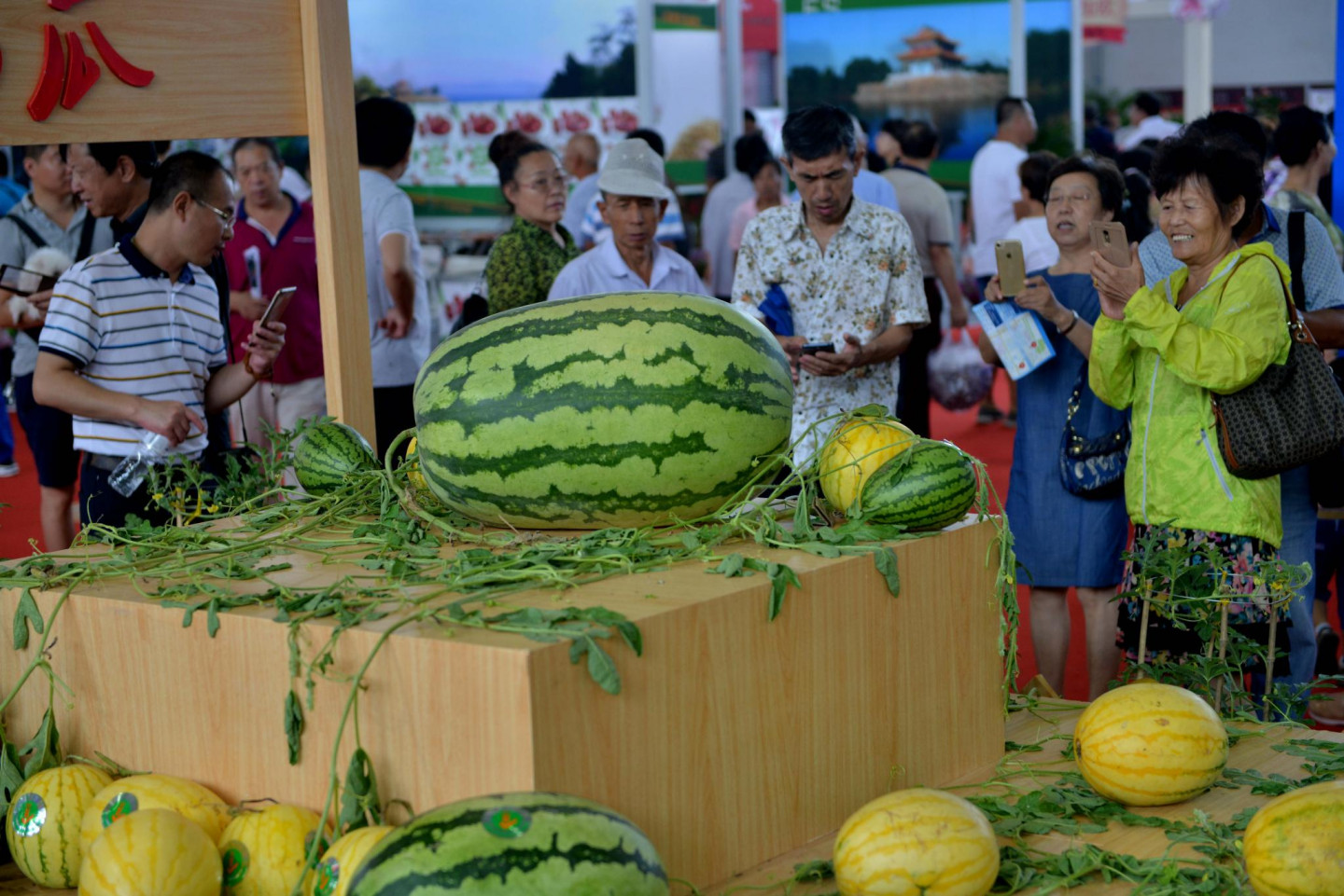 Lauksaimniecības izstādē Ķīna daudzu apmeklētāju uzmanību piesaistīja milzu arbūzs, kura svars sasniedz 65 kilogramus.