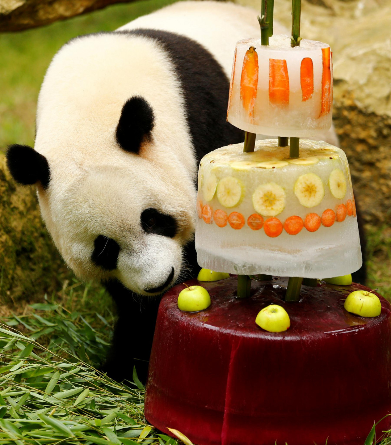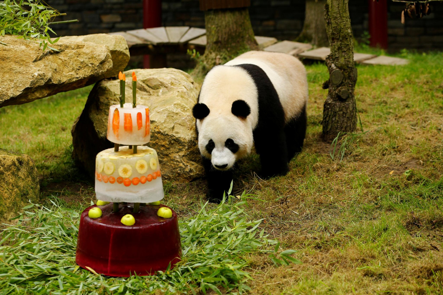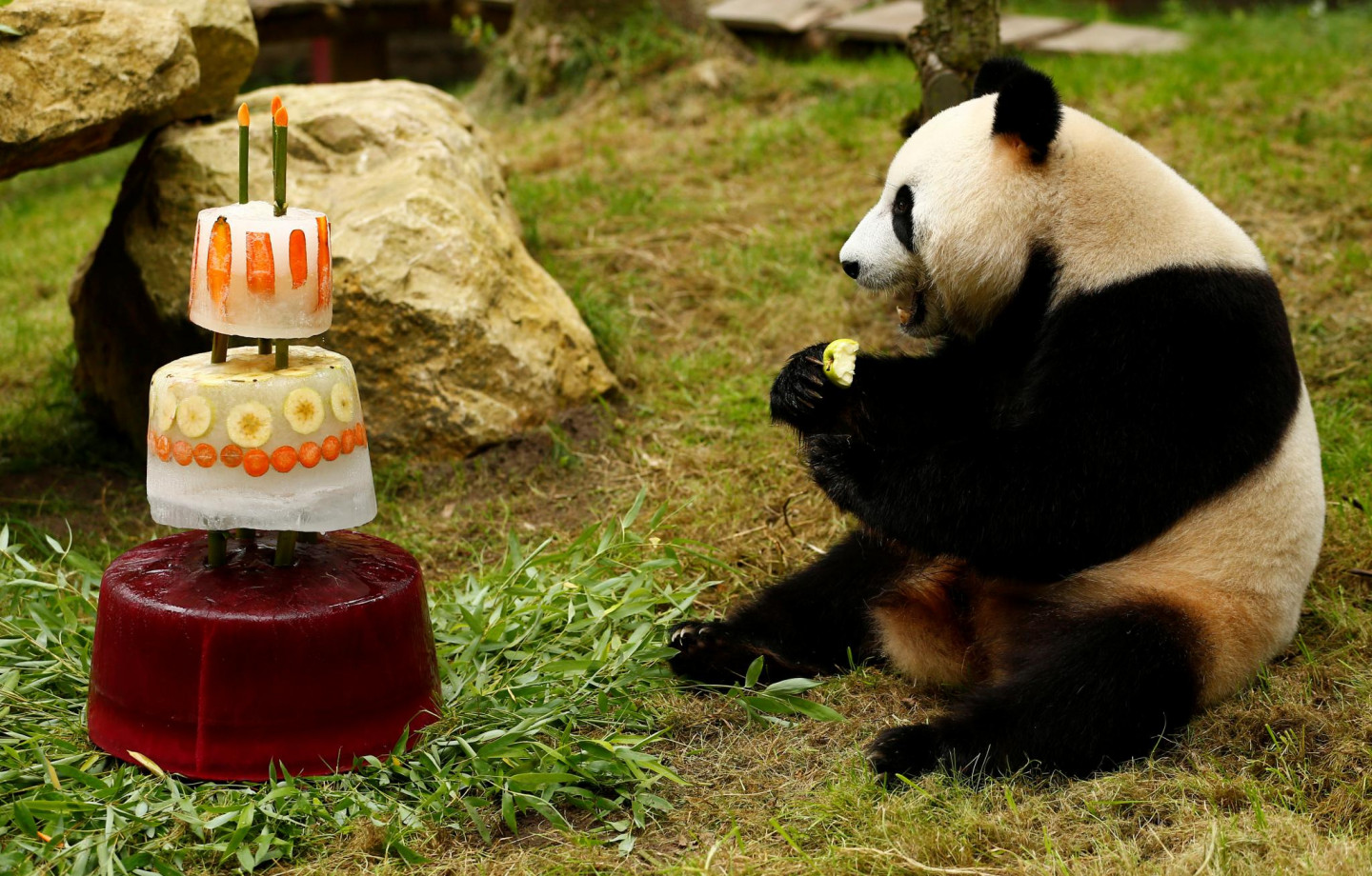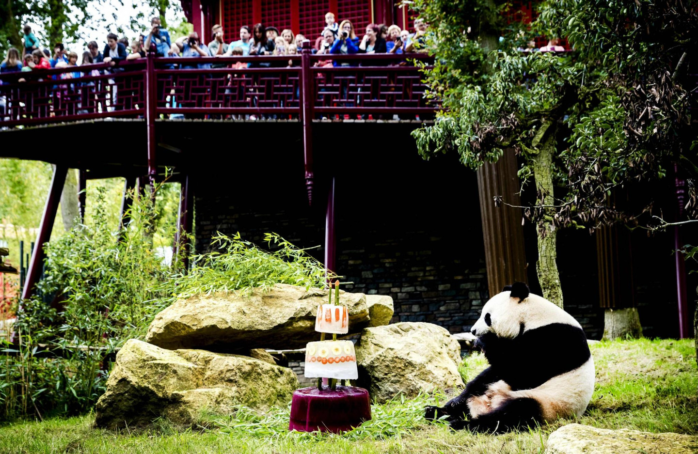Nīderlandes zoodārzā lielā panda nosvinējusi savu ceturto dzimšanas dienu.