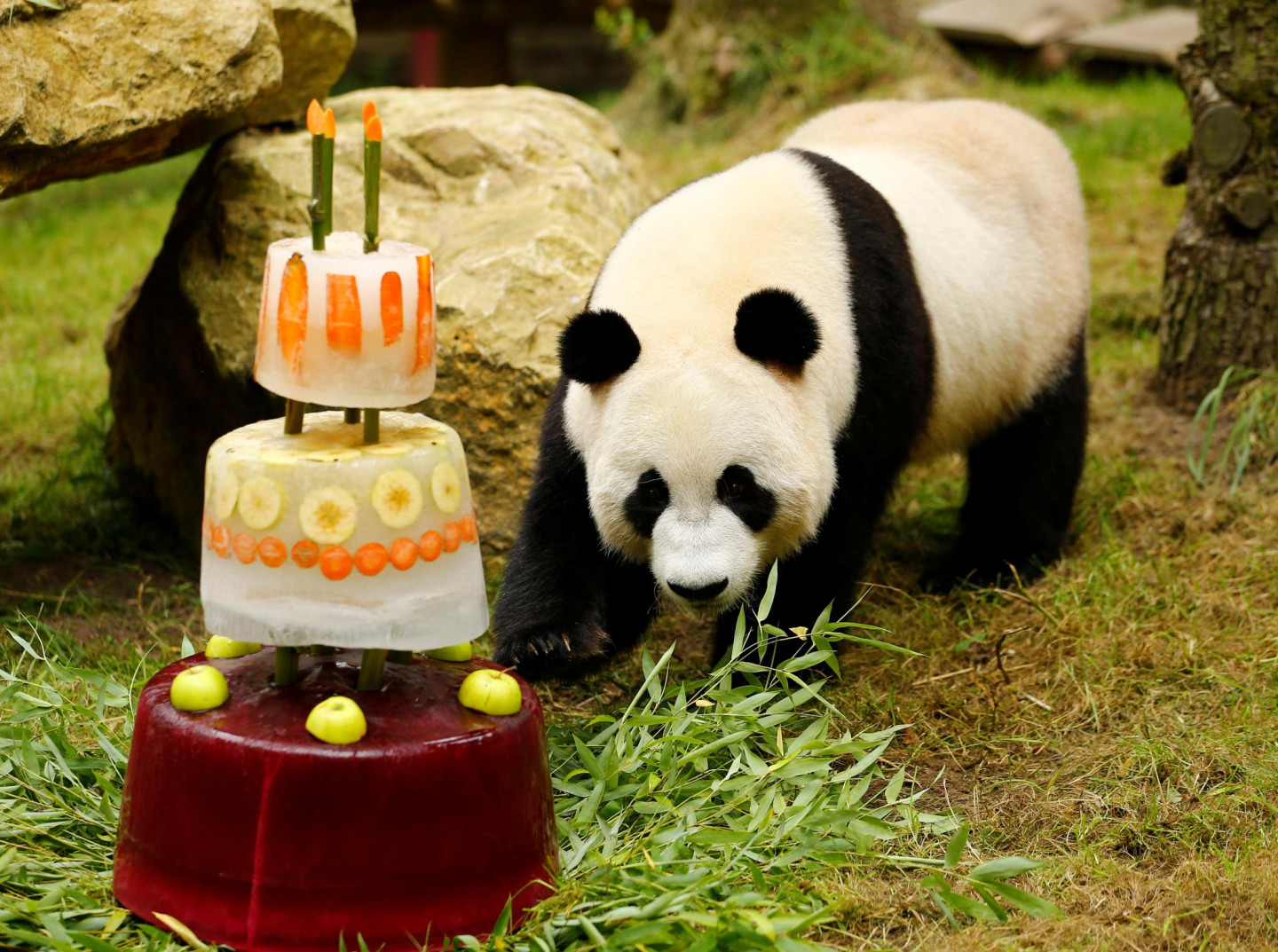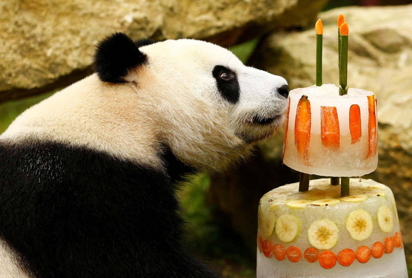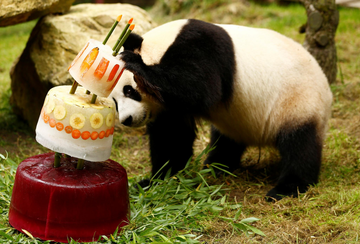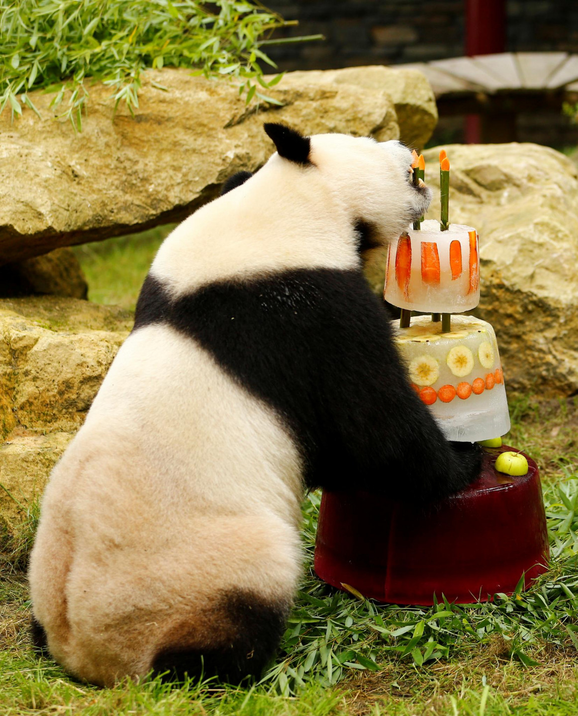 Nīderlandes zoodārzā lielā panda nosvinējusi savu ceturto dzimšanas dienu.