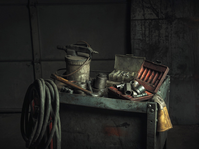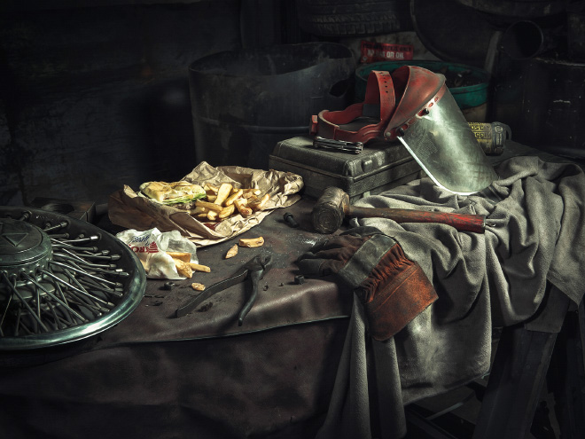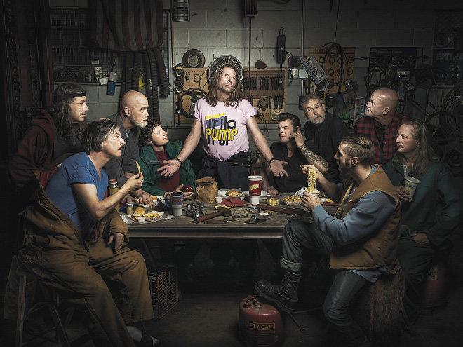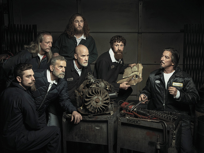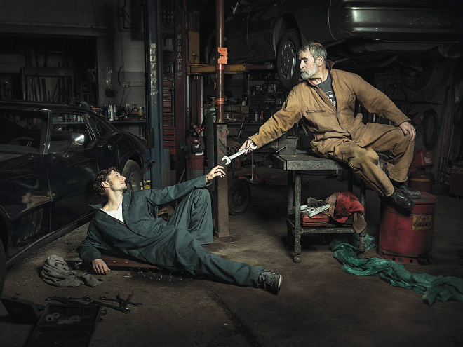 Fotogrāfs Fredijs Fabris radījis fotosesiju ar autoservisa darbiniekiem, atveidojot pasaulslavenas gleznas.