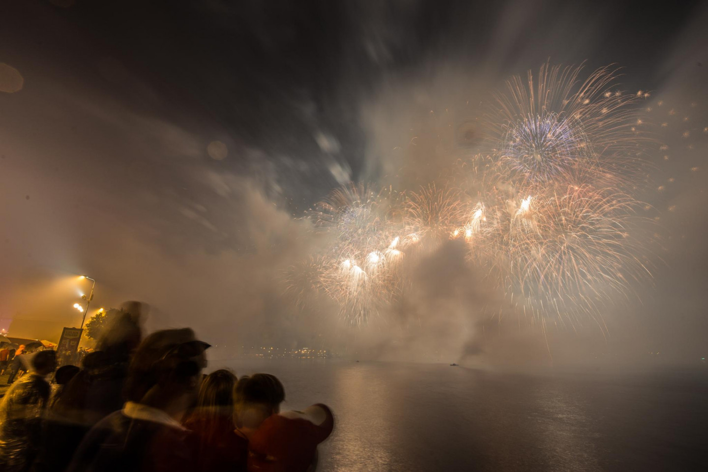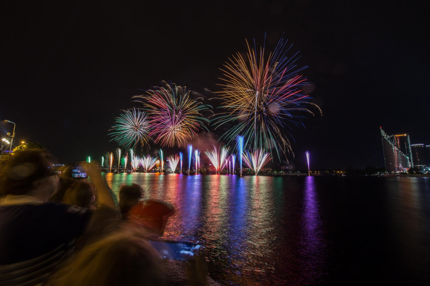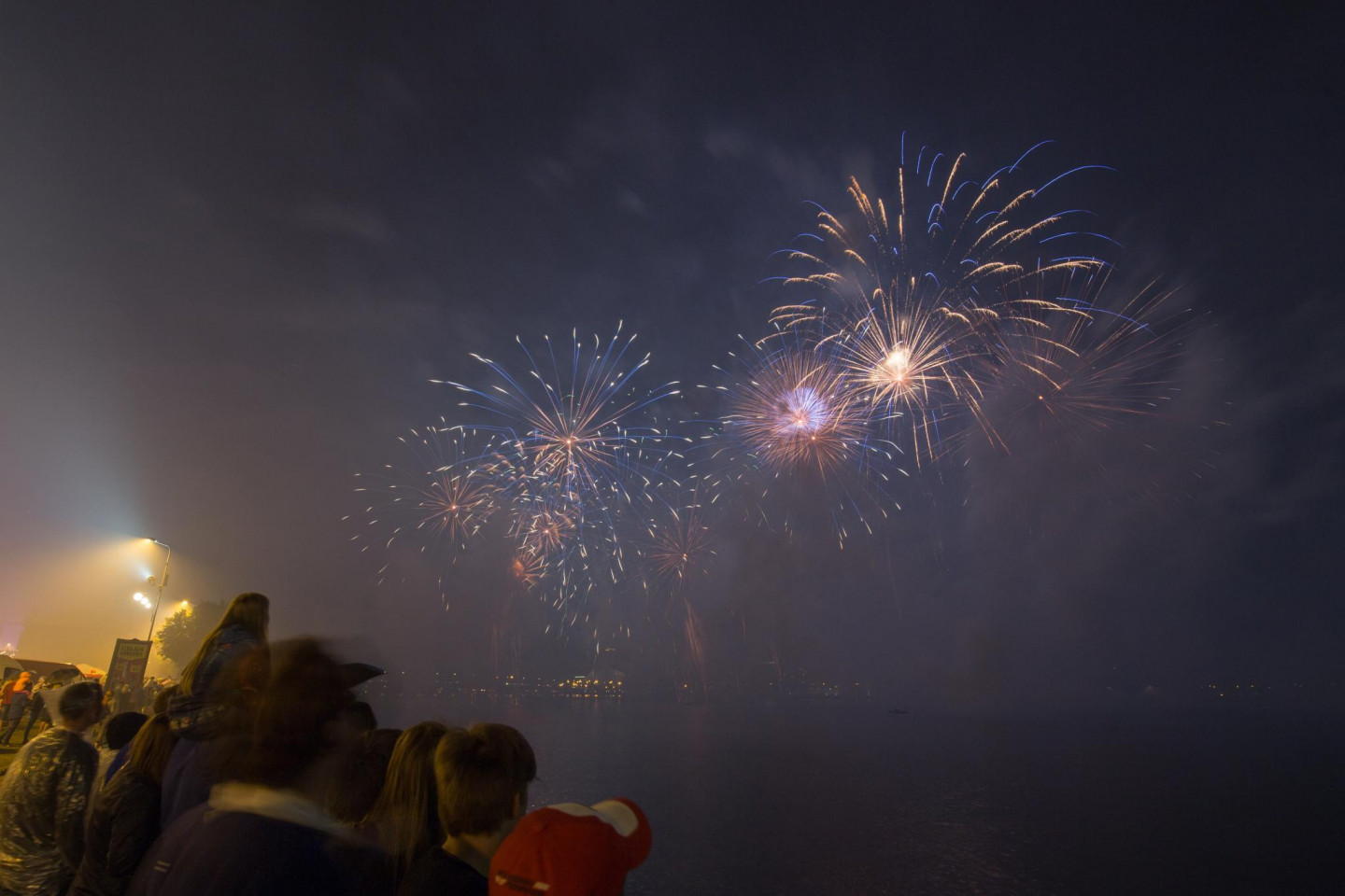 Rīgas svētku sestdienas programma noslēdzās ar uguņošanu virs Daugavas.