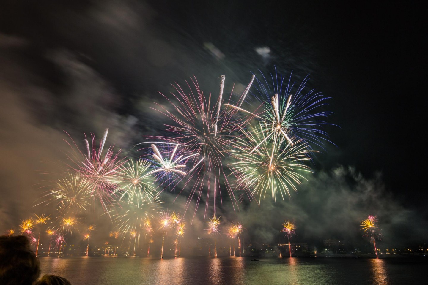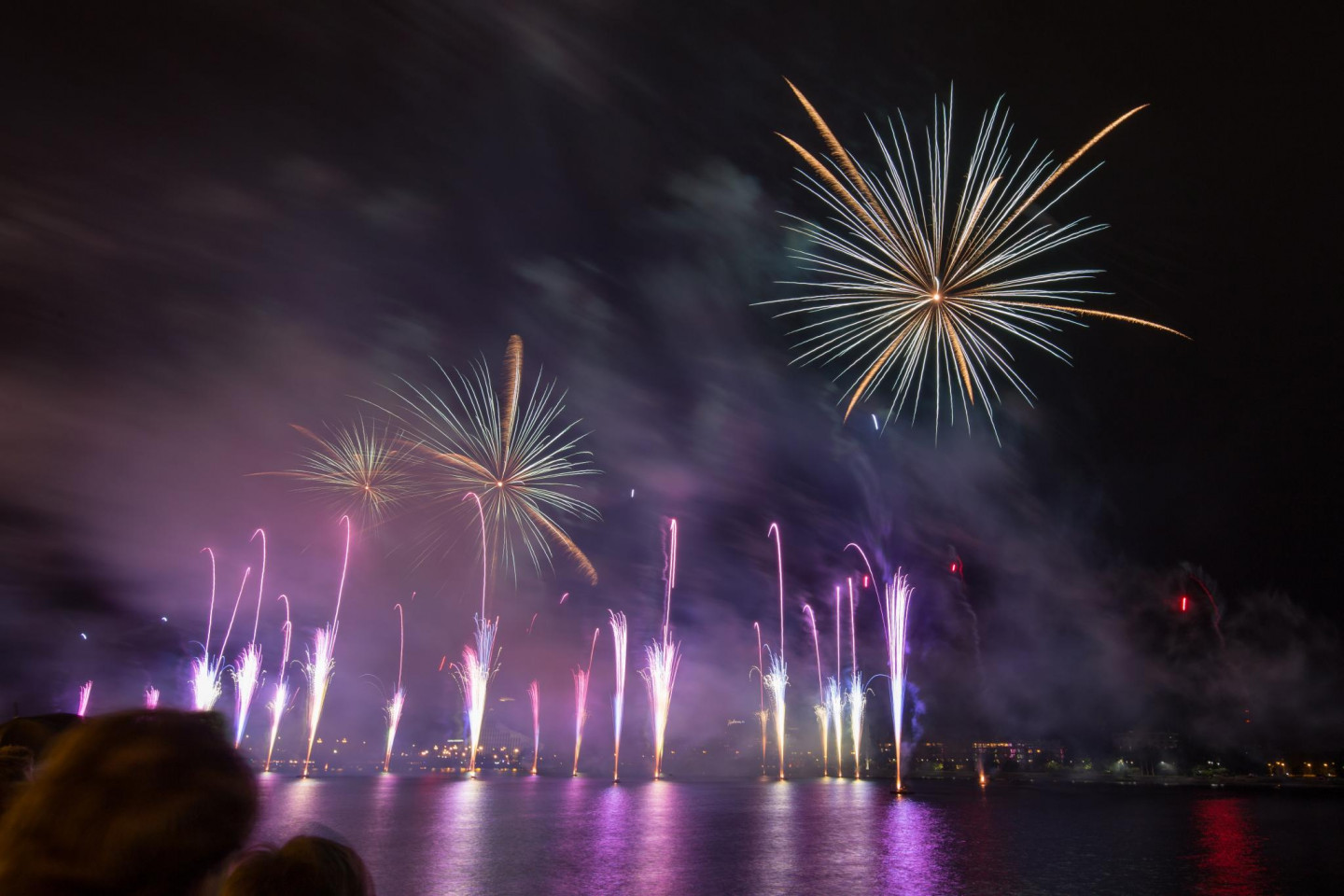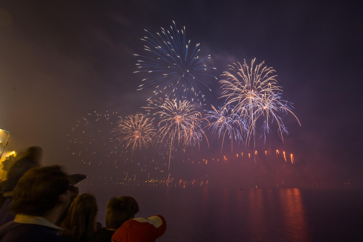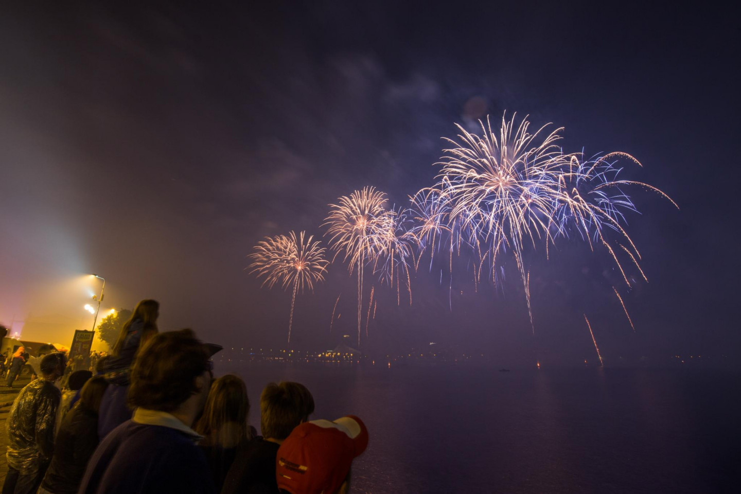 Rīgas svētku sestdienas programma noslēdzās ar uguņošanu virs Daugavas.