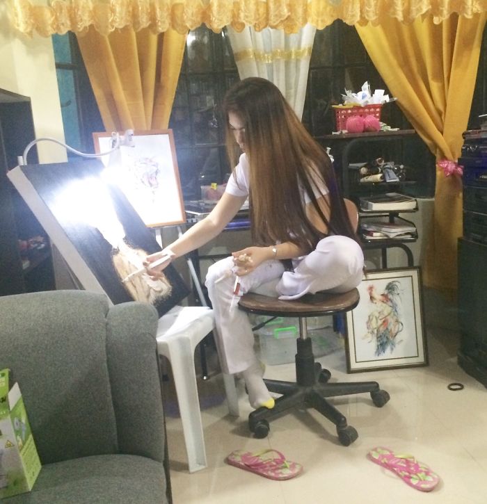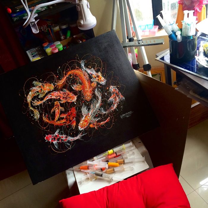 Medmāsa otu vietā glezno ar šļircēm; rezultāts - apbrīnojams