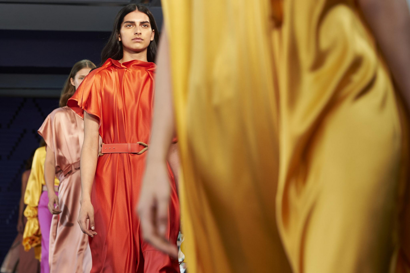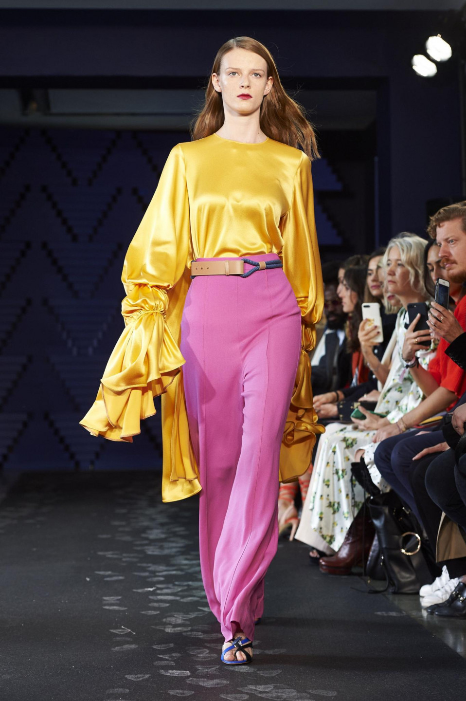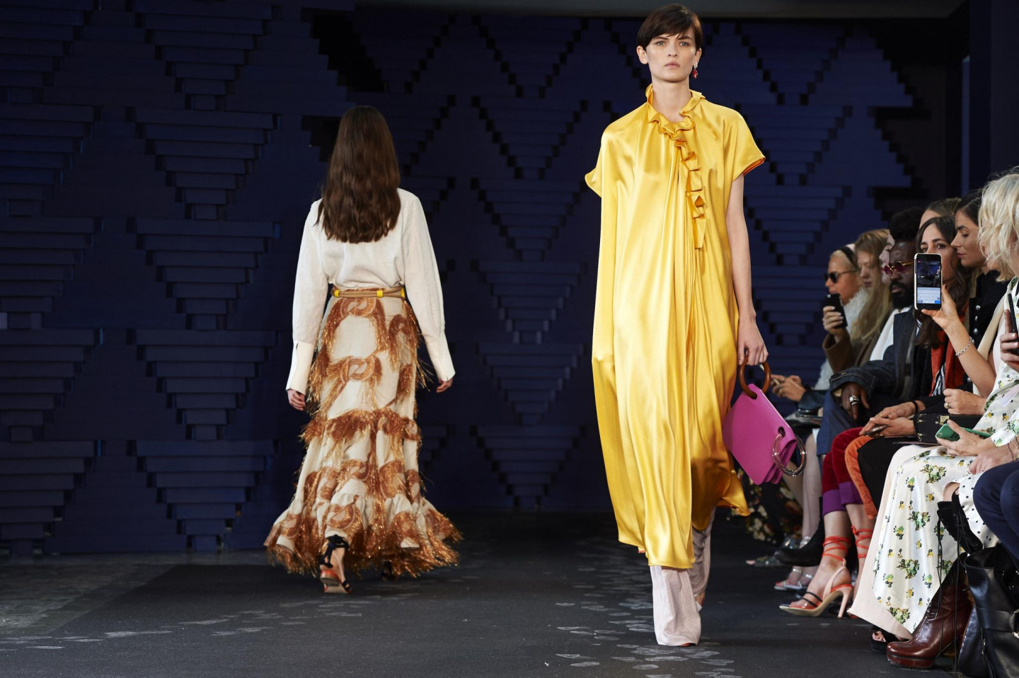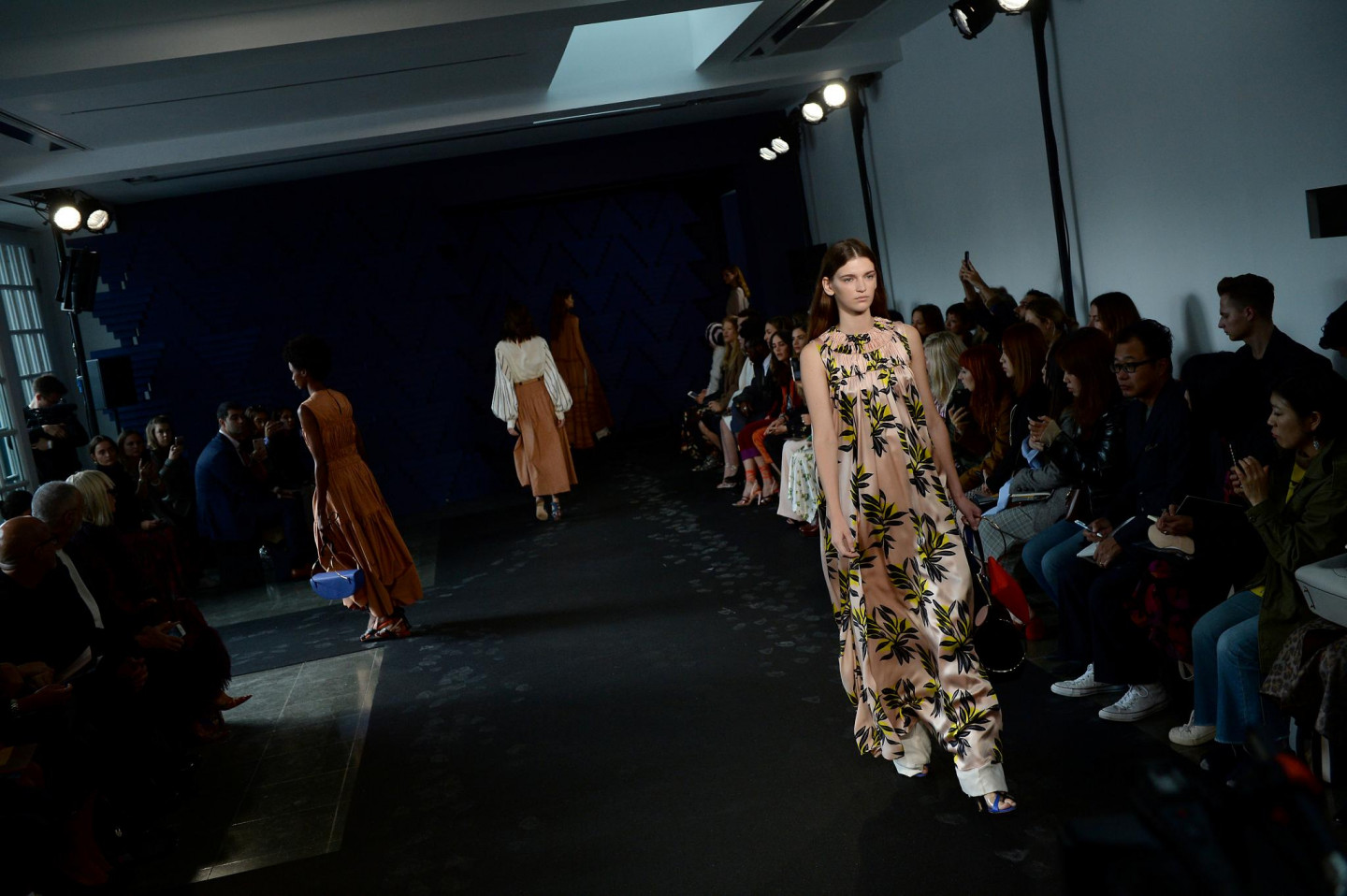 Londonas modes nedēļā demonstrēti tērpi, kas sagatavoti nākamās vasaras modes namu kolekcijām.