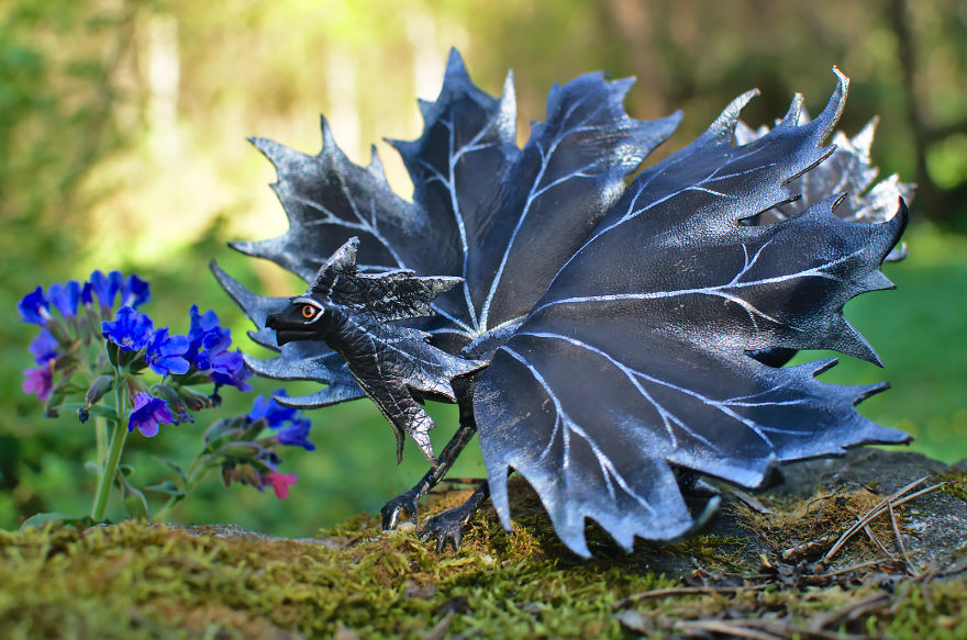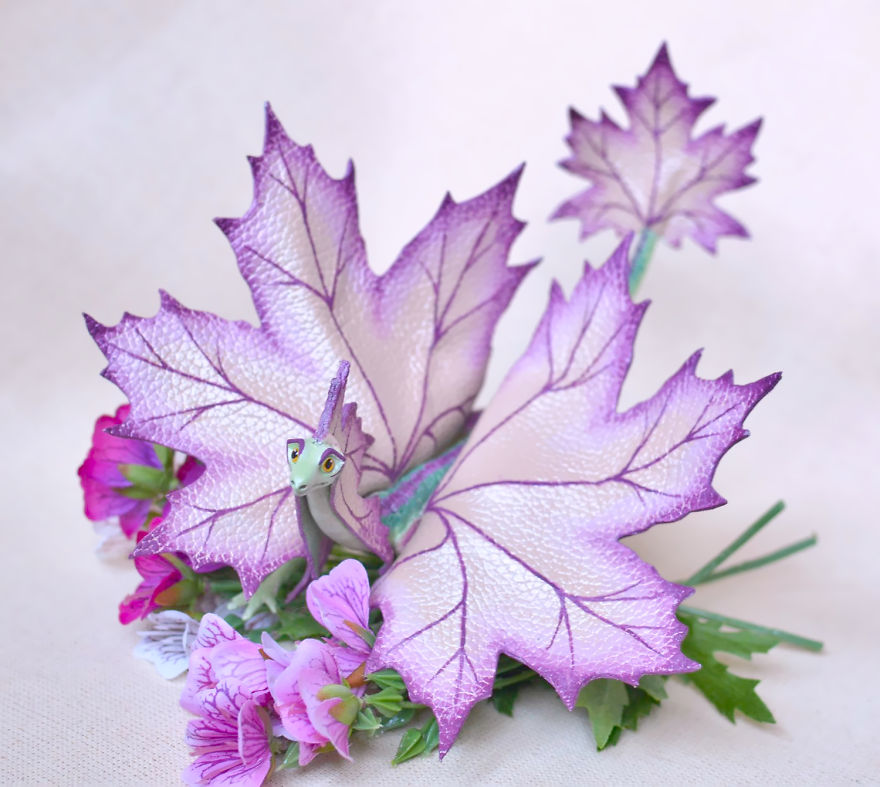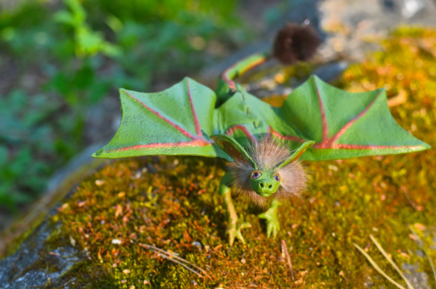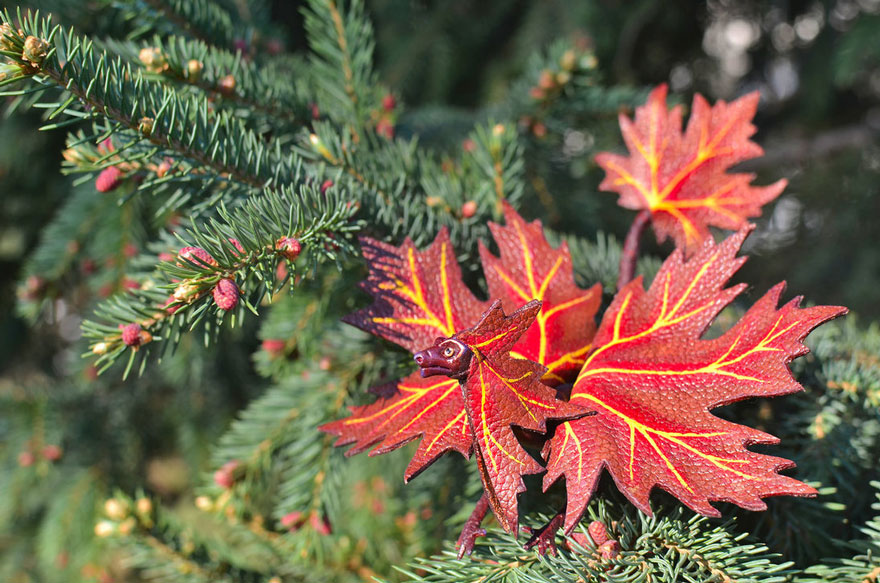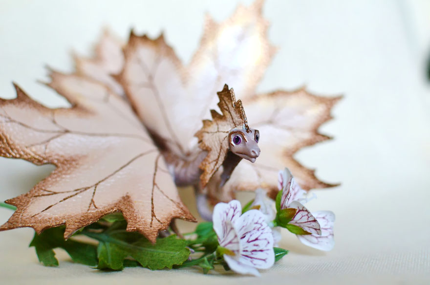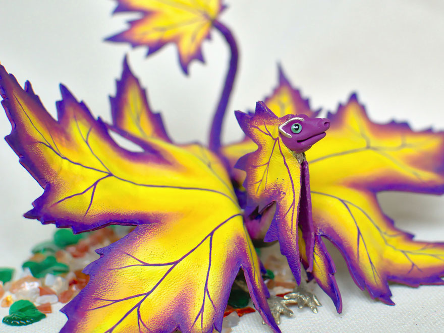 Kāda sieviete Krievijā rudenī radījusi neparastas rotaļlietas. No krāsainām lapām tapuši pūķi.