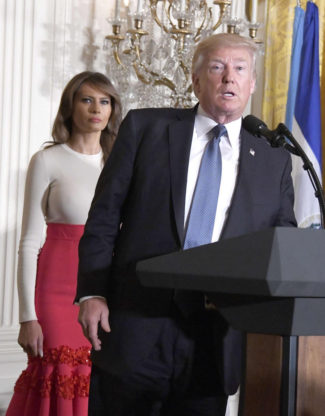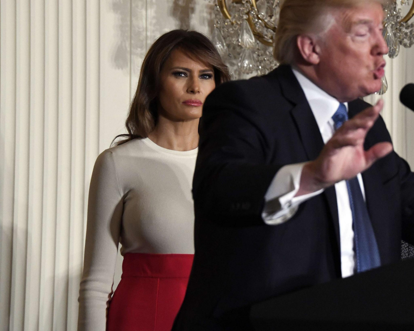 Asu reakciju izsaucis ASV prezidenta kundzes Melānijas Trampas tērps - pieguļošais džemperis, kas pārlieku izceļot viņas ķermeņa aprises.