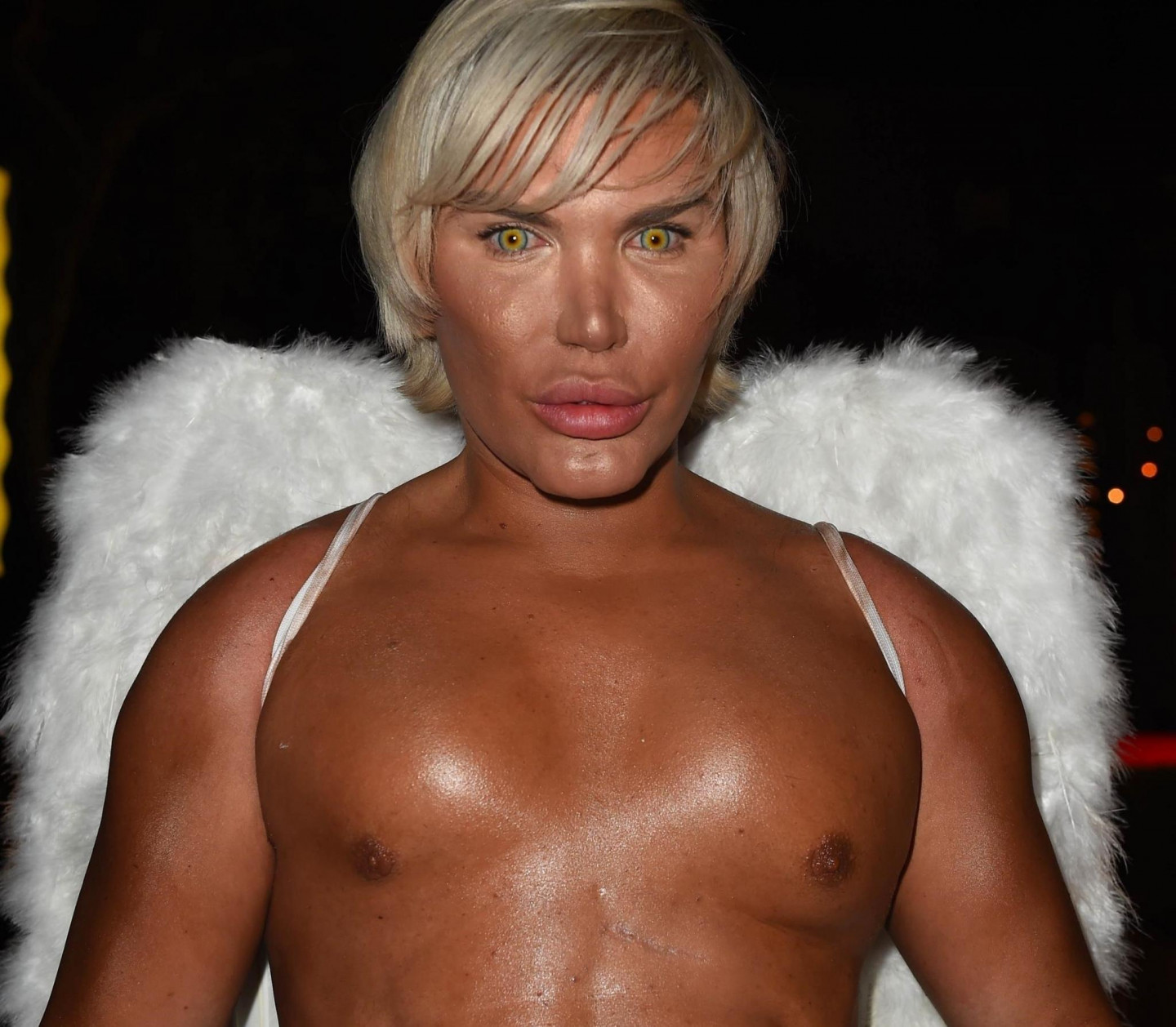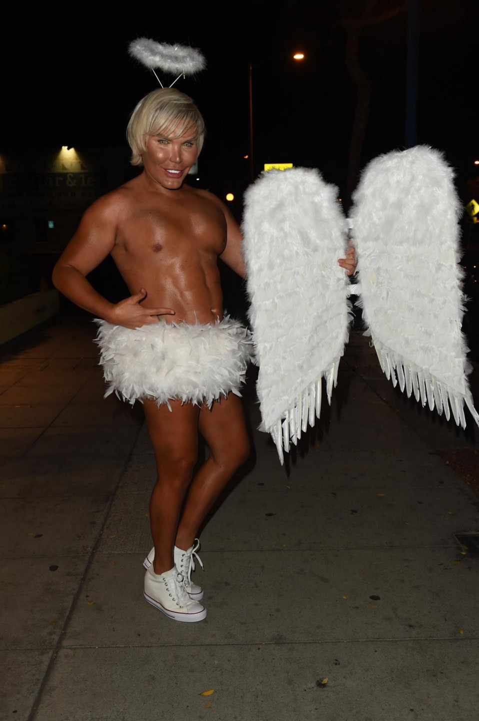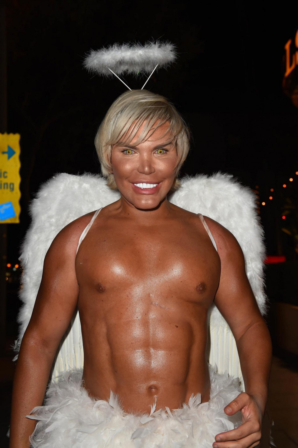 Par "dzīvo Kenu" sauktais brazīlietis Rodrigo Alvess izmantojis izdevīgu Helovīnā atrādīt jauniegūtās vēdera presītes implantus.