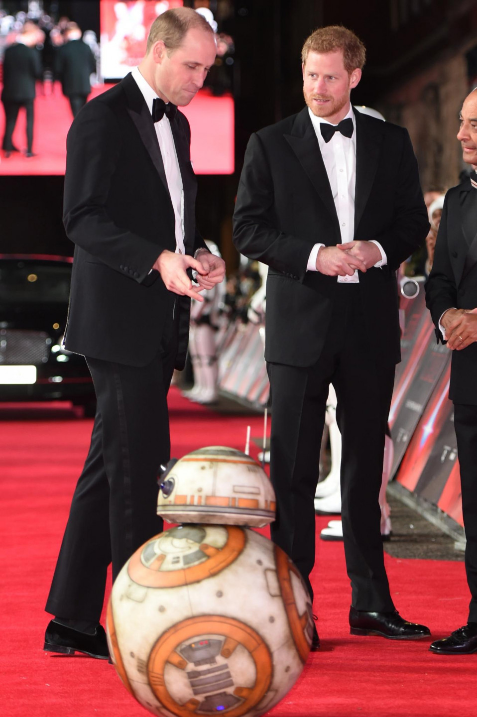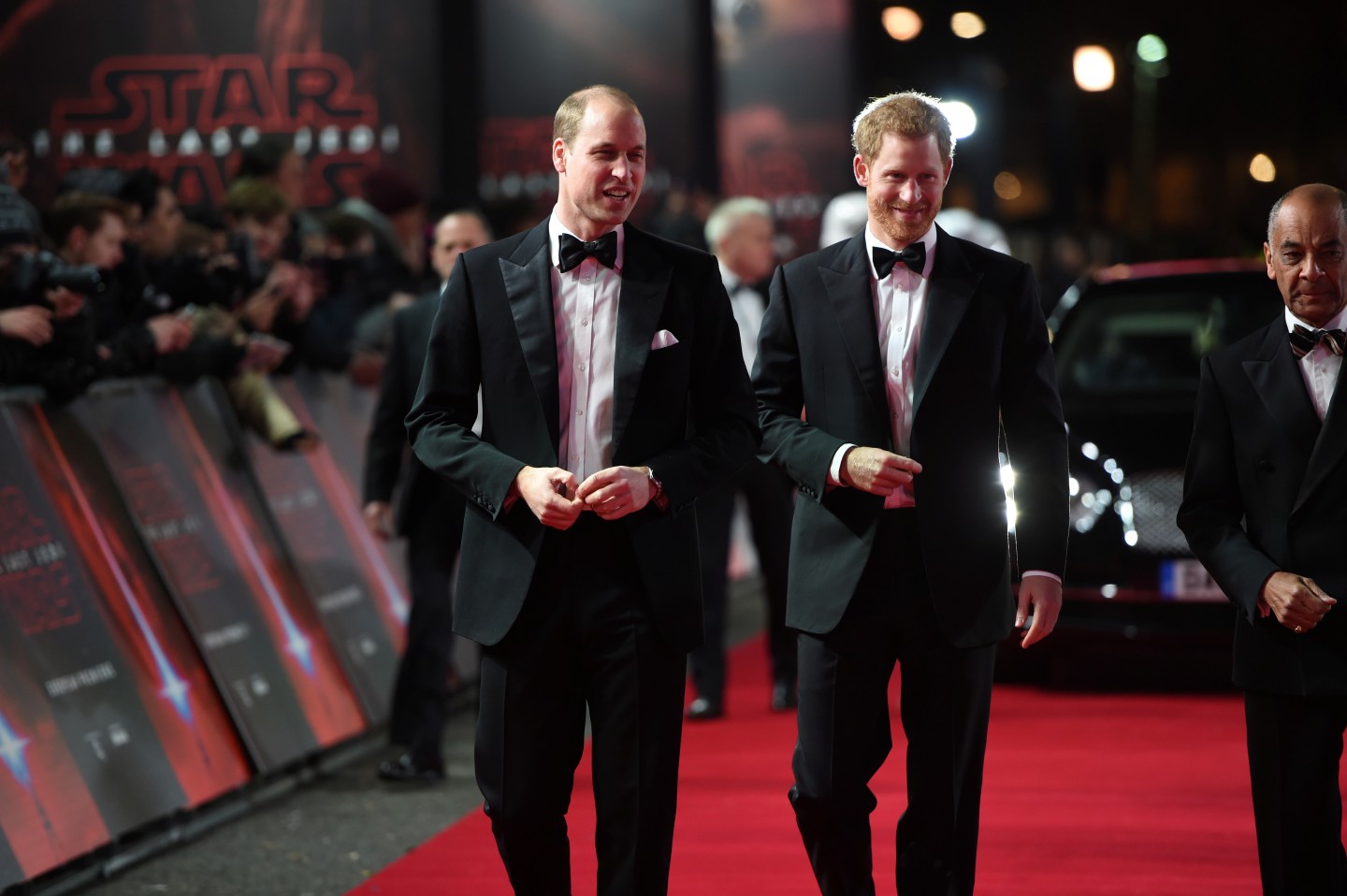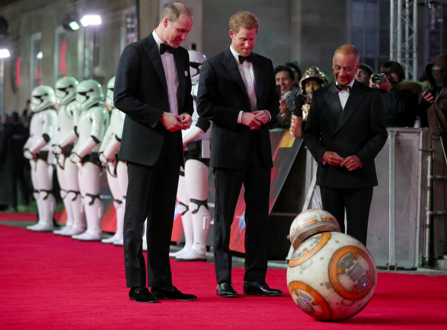 Lielbritānijas prinči Viljams un Harijs Londonā ierodas uz filmas "Zvaigžņu kari: Pēdējie džedi" pirmizrādi Londonā.