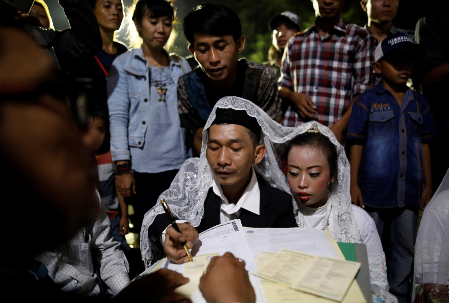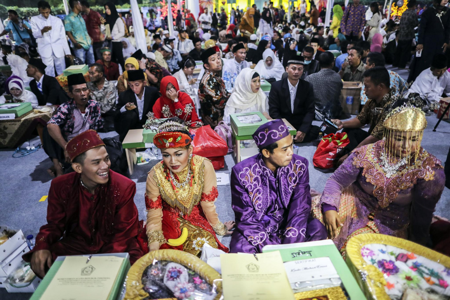 Vecgada vakarā Indonēzijā reizē salaulājas 500 pāru