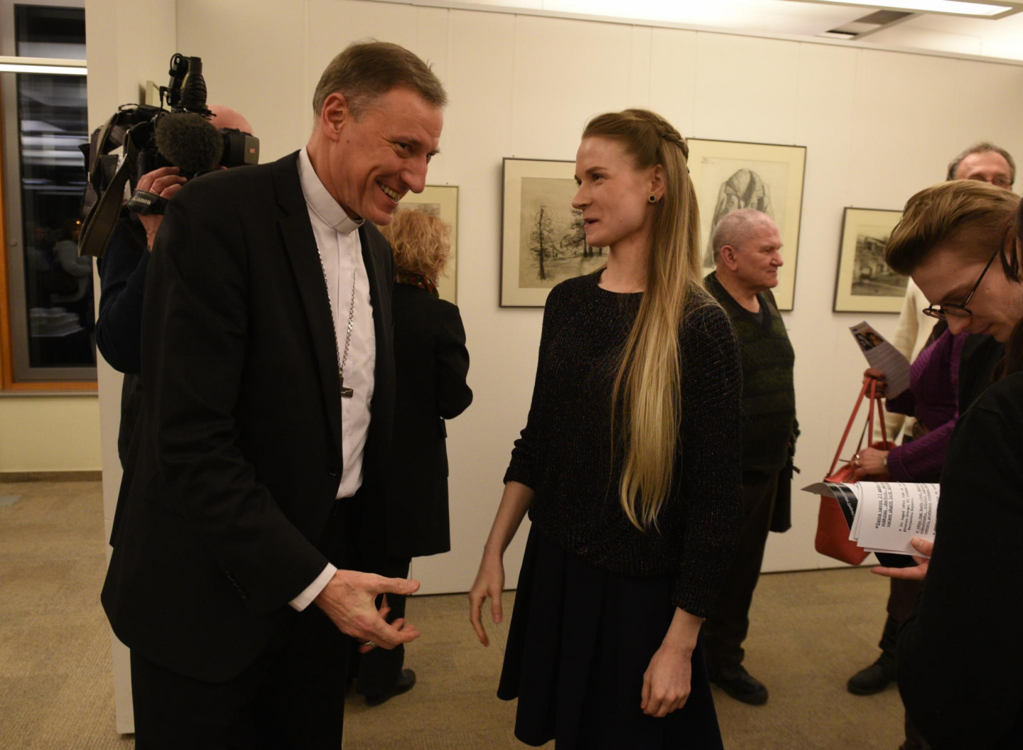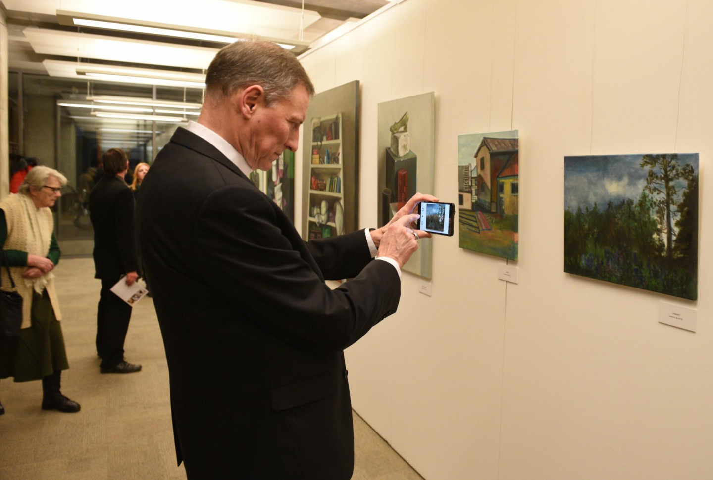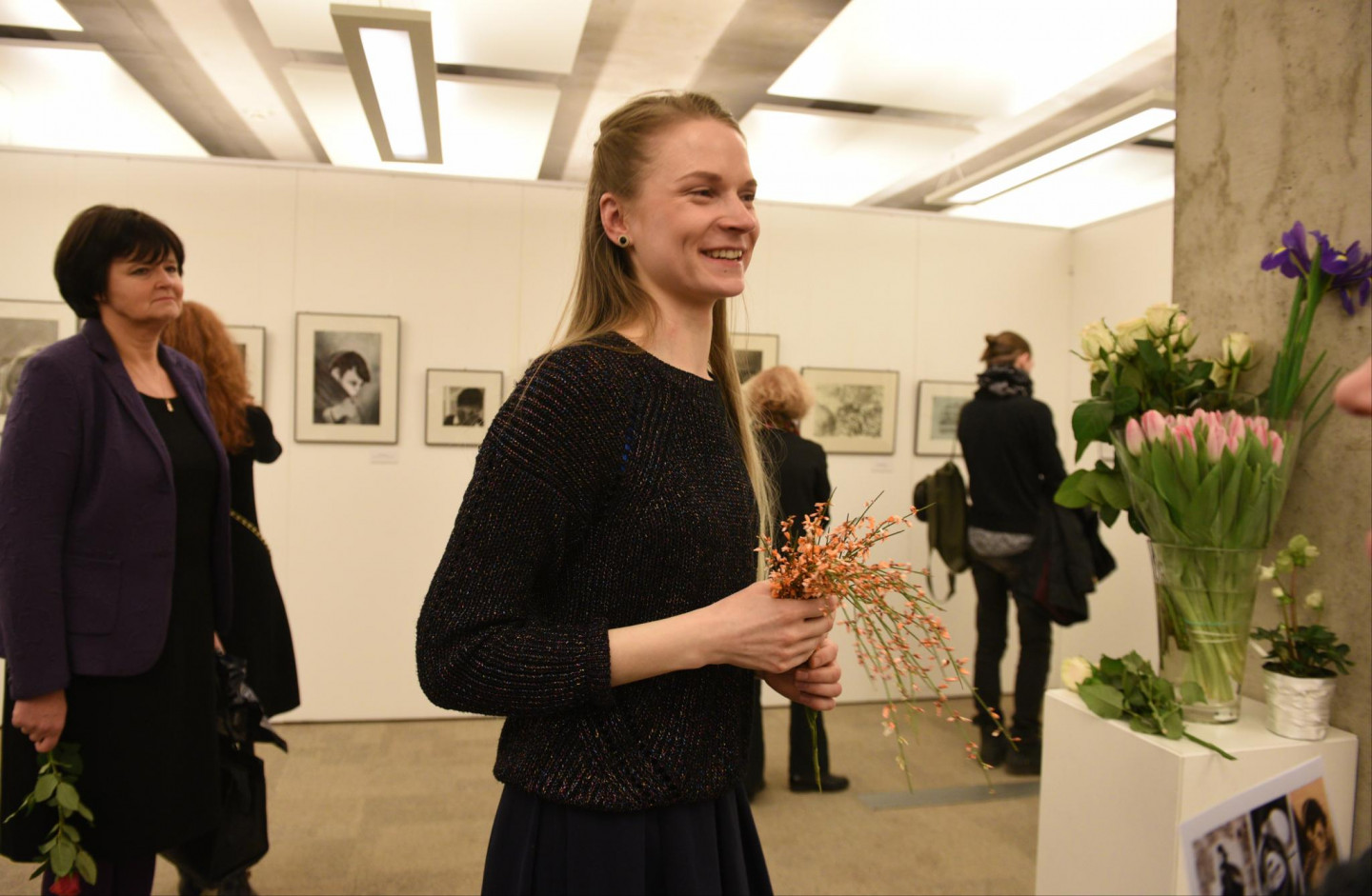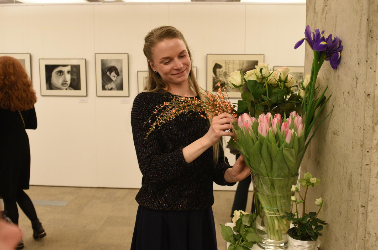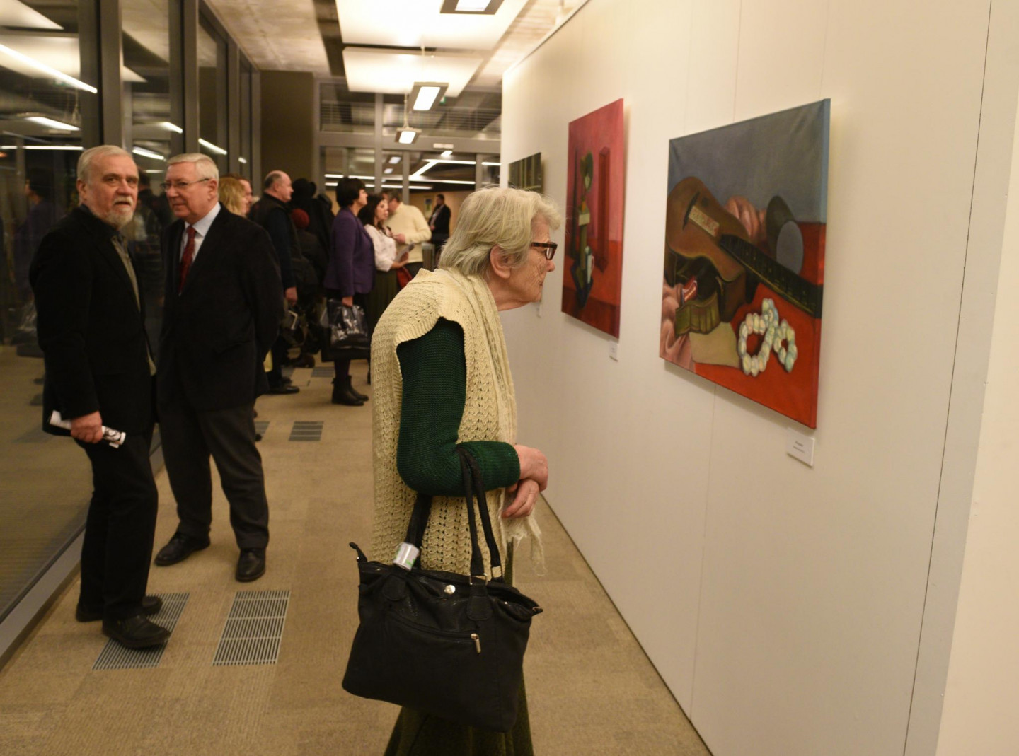 Rietumu bankas mākslas galerijā "Rietumu Capital Centre" māksliniece Anda Skadmane atklāja Zolitūdes traģēdijā bojā gājušās dvīņu māsas, mākslinieces Dainas Skadmanes darbu izstādi "Mākslas pasaule".