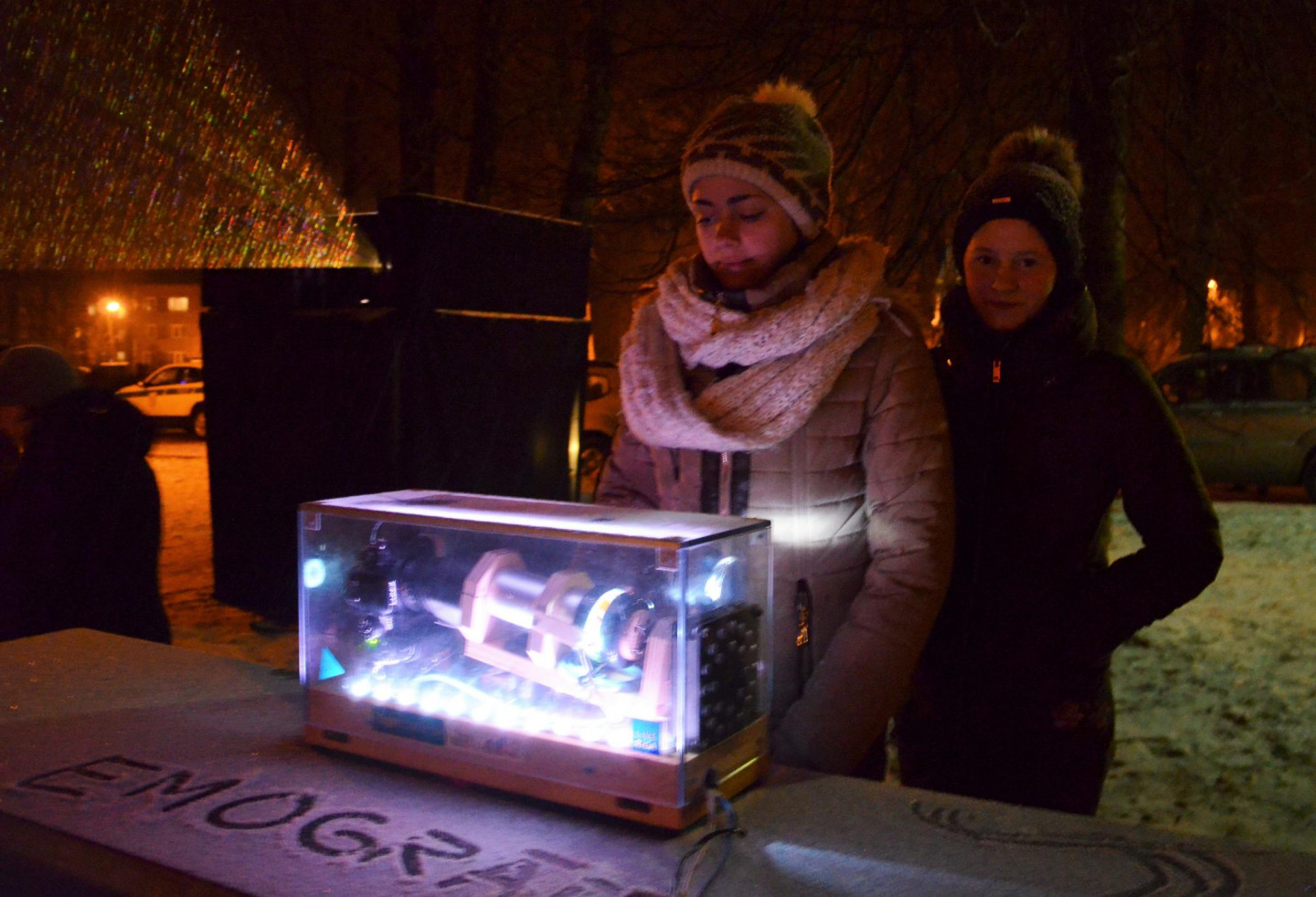 Latvijas simtgades svinēšanas festivāls “Latvijas Goda aplis” turpina apceļot un godināt valsts novadus un 10. februārī piestāja Jelgavas novada Staļģenē, kur vidusskolas telpās notika pasākums “Ziemas sadancis” un pēc tā turpat pie skolas bija apskatāms gaismas objekts “Emogrāfs”. Par Jelgavas novada deju svētkiem dēvētajā ziemas sadancī piedalījās visi Jelgavas novada jauniešu, vidējās paaudzes un senioru tautas deju kolektīvi un publikas interese par šo pasākumu bija ļoti liela. Pēc deju koncerta beigām tā skatītāji aizrautīgi izmēģināja arī vienu no publikas iecienītākajiem gaismas festivāla “Staro Rīga” objektiem “Emogrāfs”, kas ikviena dalībnieka sirdspukstus spēj pārvērst mūzikā un žilbinošā mozaīkā. Uzdevums bija vienkāršs – ierīcē bija jāievieto savs pirksts un tad jāskatās savu sirdspukstu veidotā mozaīkā, kuru nav iespējams ietekmēt ar apziņu.