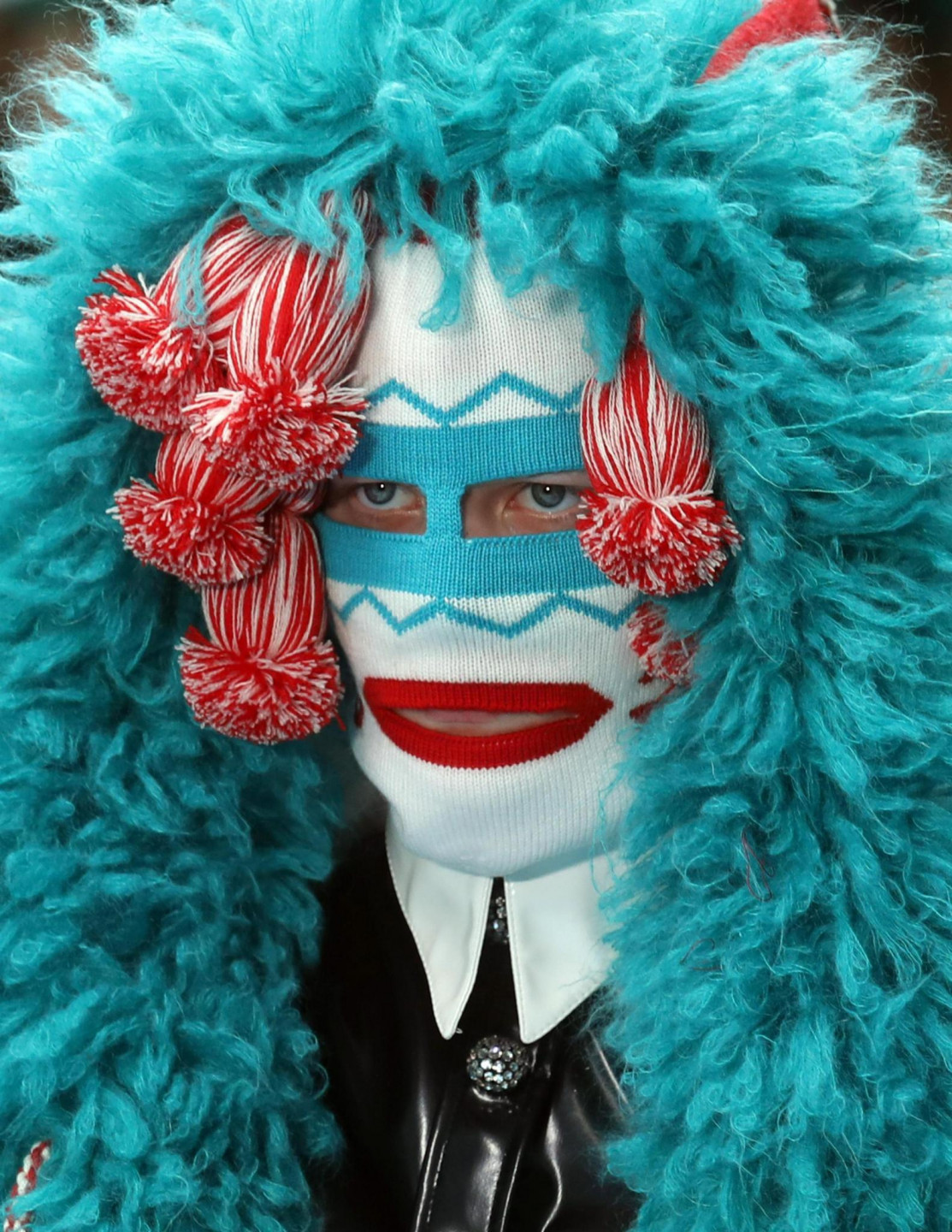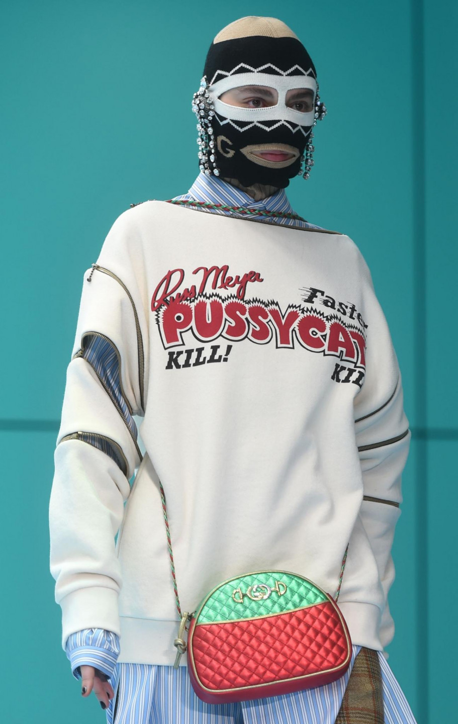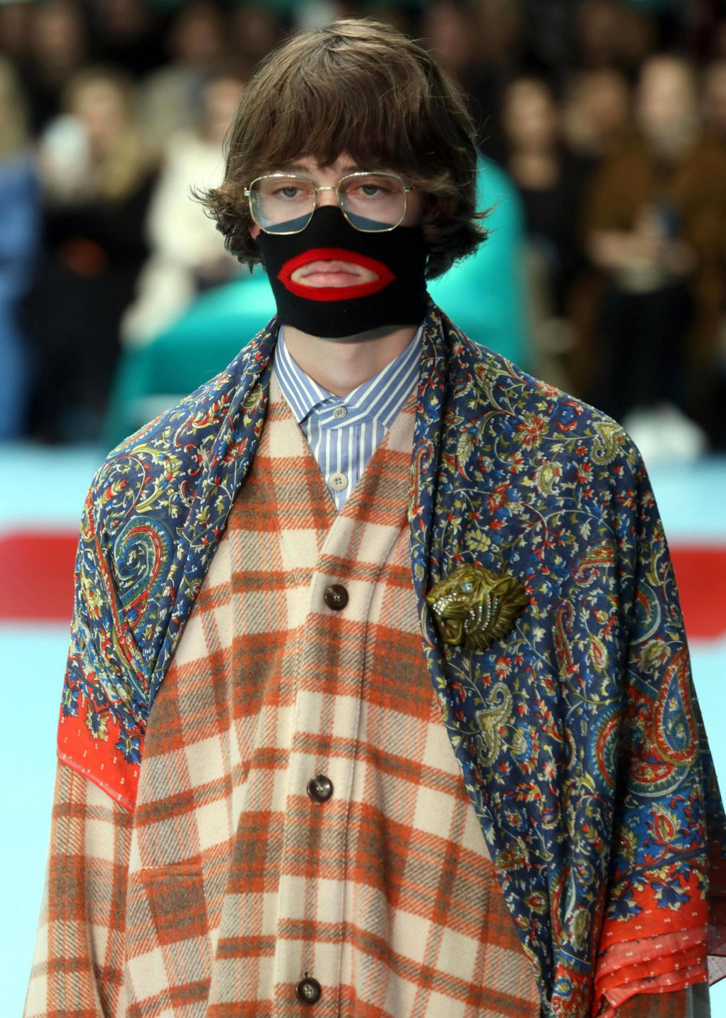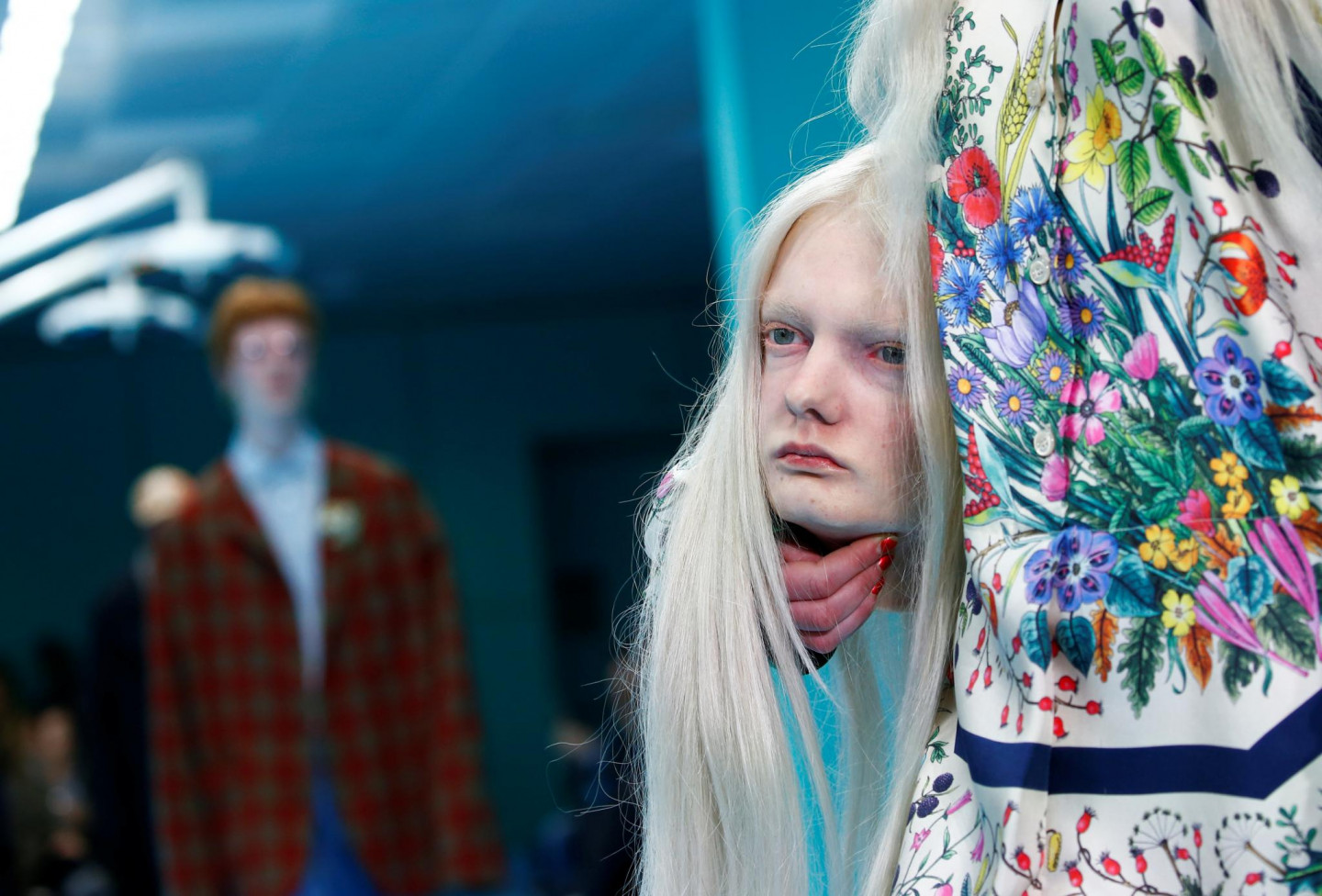 Itāļu modes zīmols "Gucci" pārsteidzis ar neparastu modes skati 2018./2019. gada rudens/ziemas kolekcijai. Modeļi nēsāja dīvainas maskas un pat pie rokas "savas galvas".