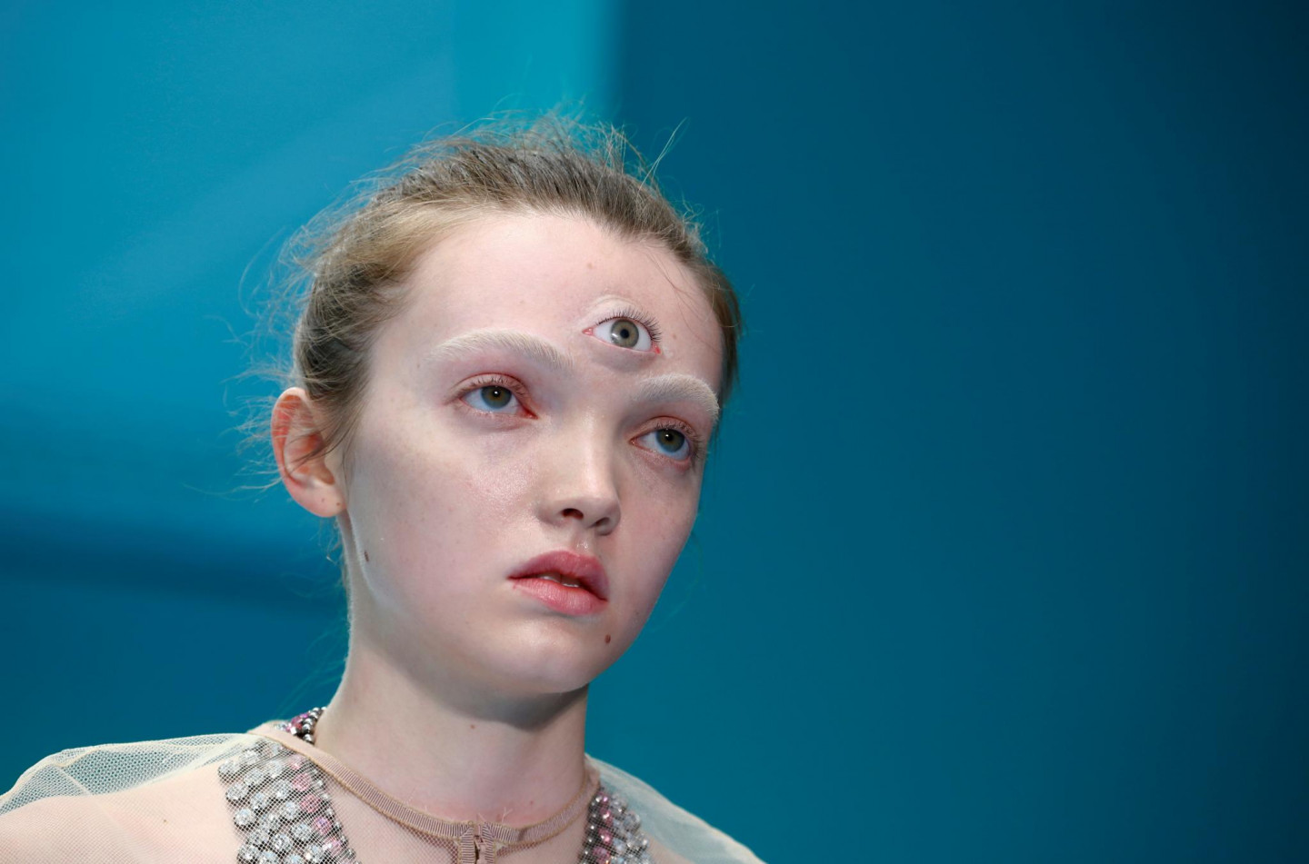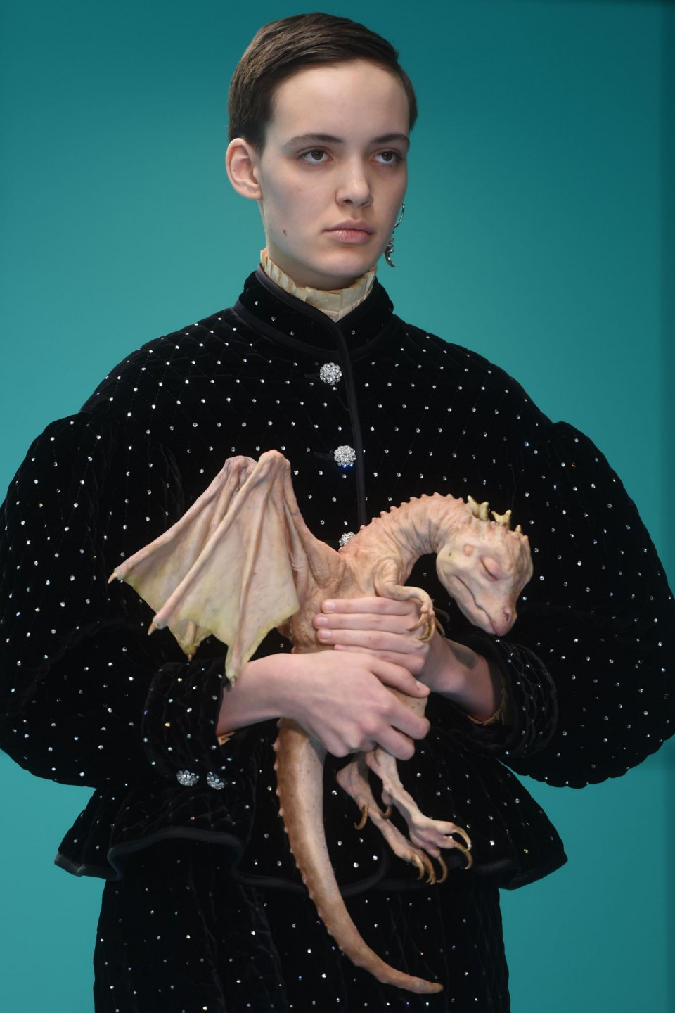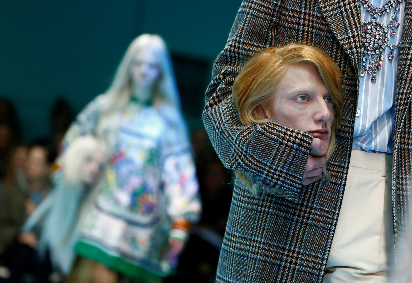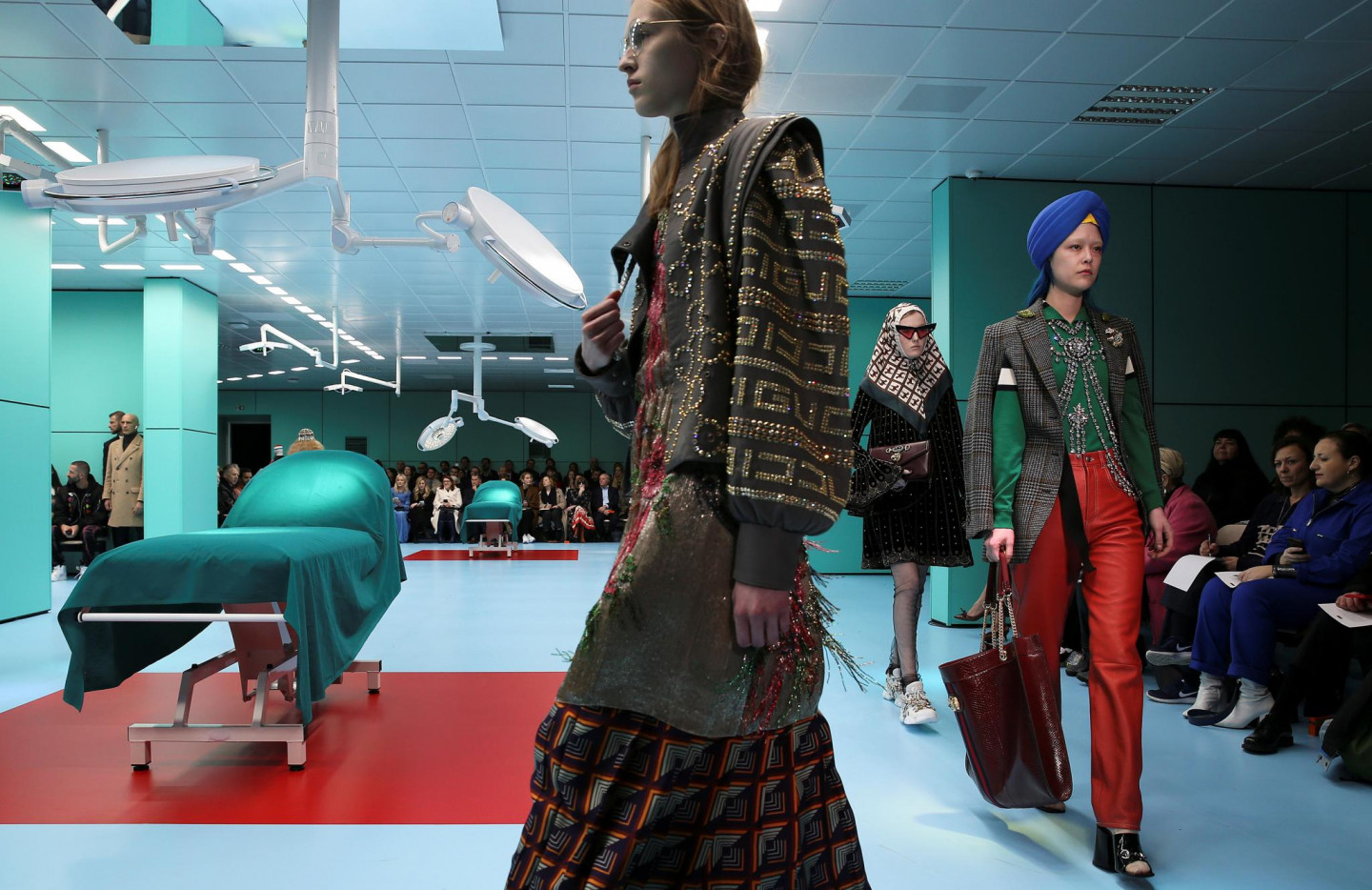 Itāļu modes zīmols "Gucci" pārsteidzis ar neparastu modes skati 2018./2019. gada rudens/ziemas kolekcijai. Modeļi nēsāja dīvainas maskas un pat pie rokas "savas galvas".
