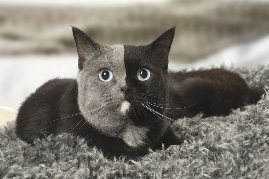 Kaķis ar "divām sejām" kļūst par interneta mīluli