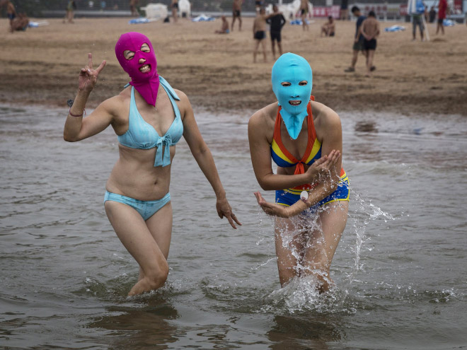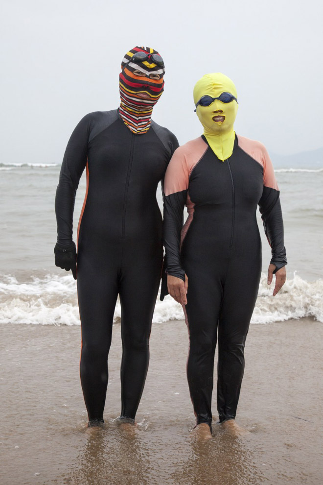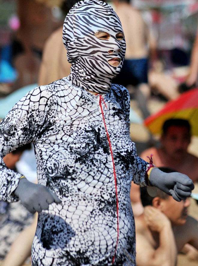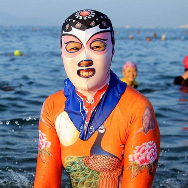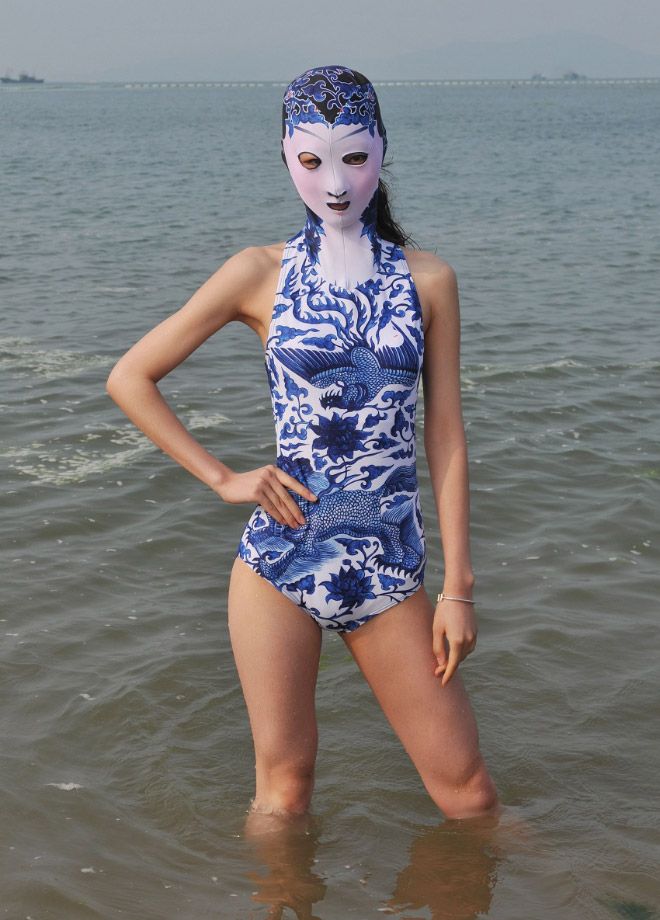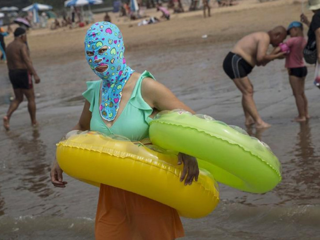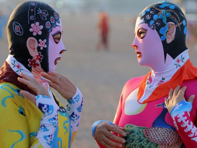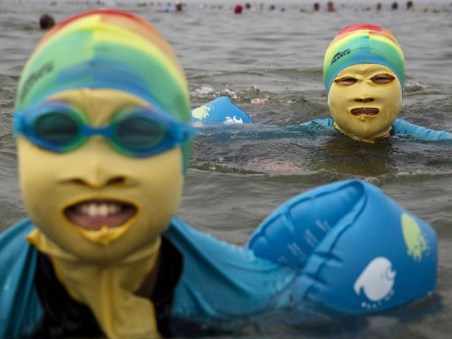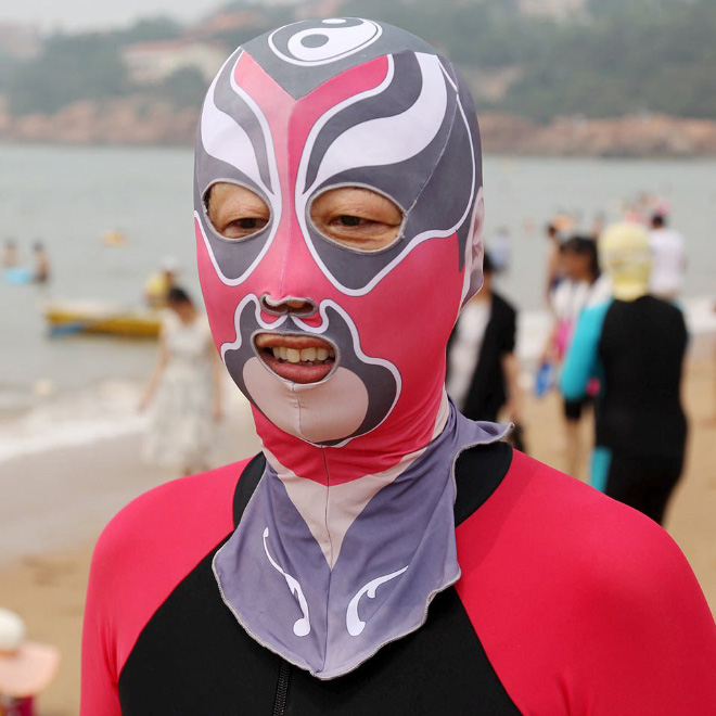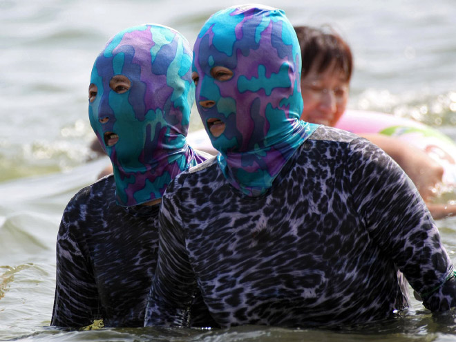 Ķīnieši jau vairākus gadus izbauda "facekini" - peldkostīms, kas pilnibā nosedz seju. Izrādās, tas izgudrots, lai pasargātu seju no saules un medūzu dzēlieniem.