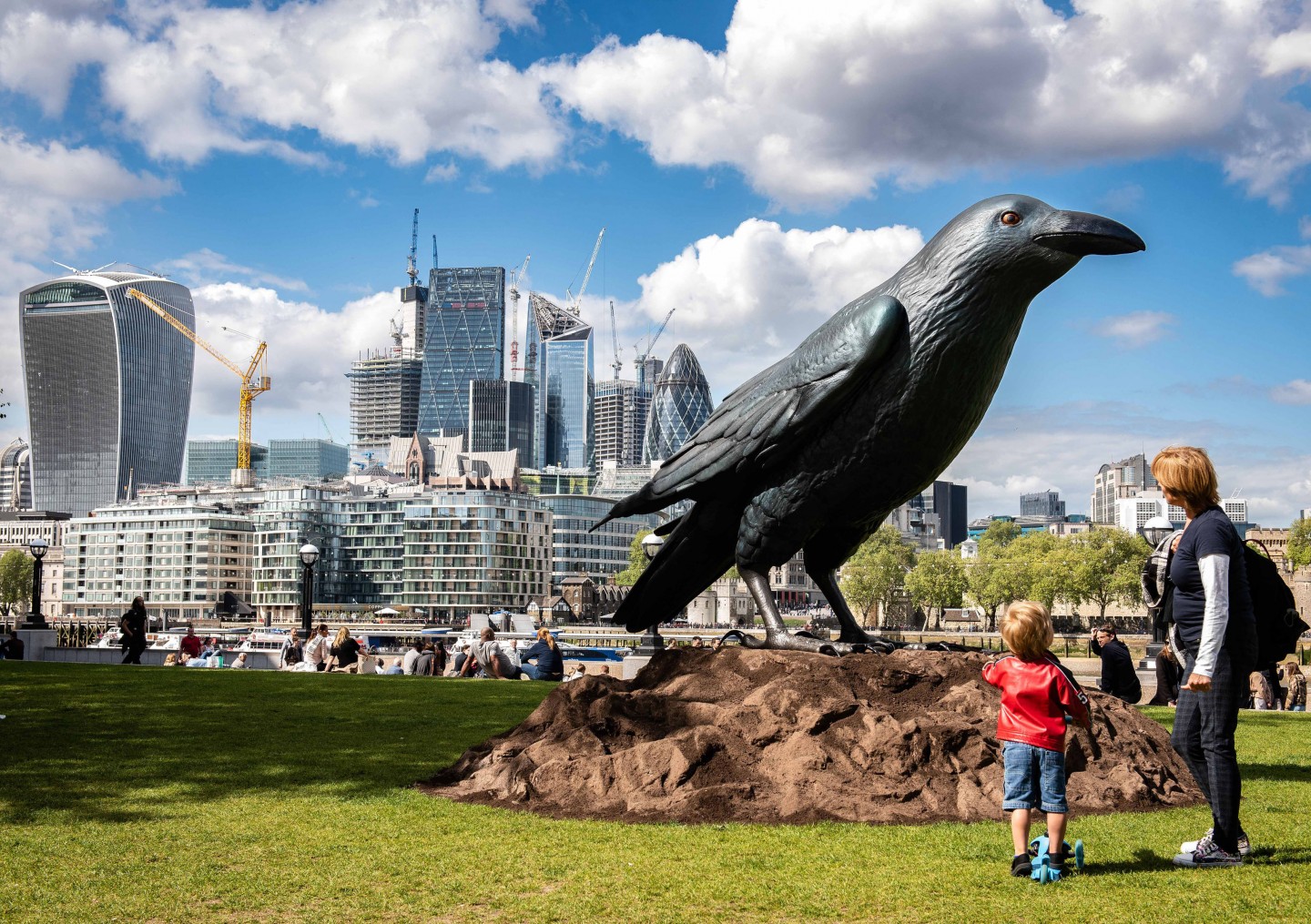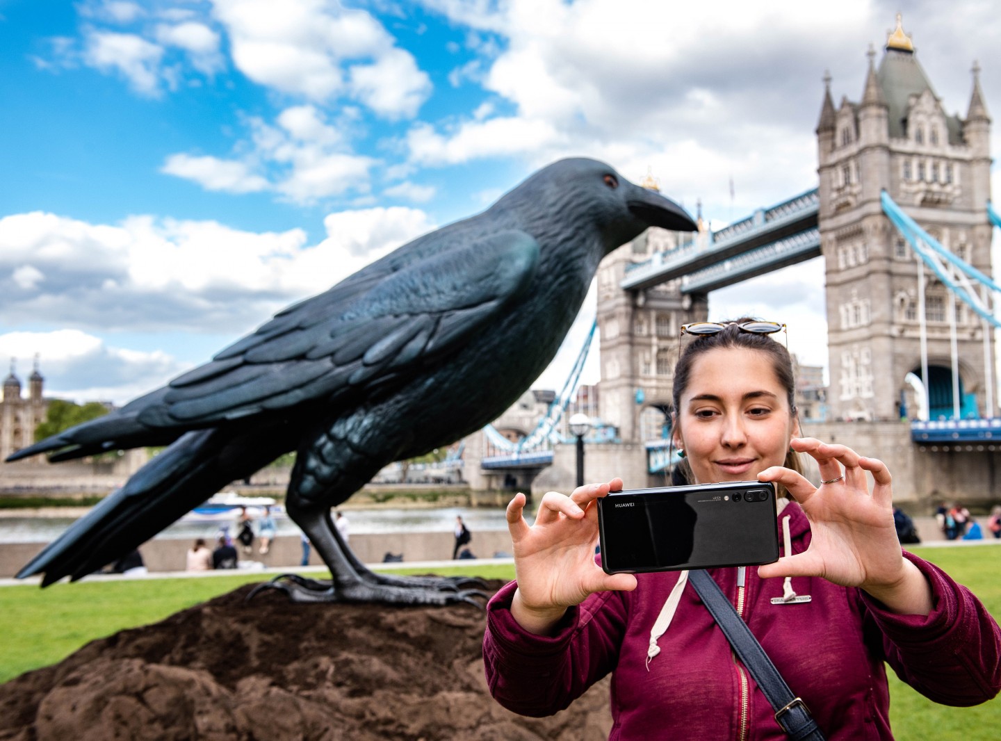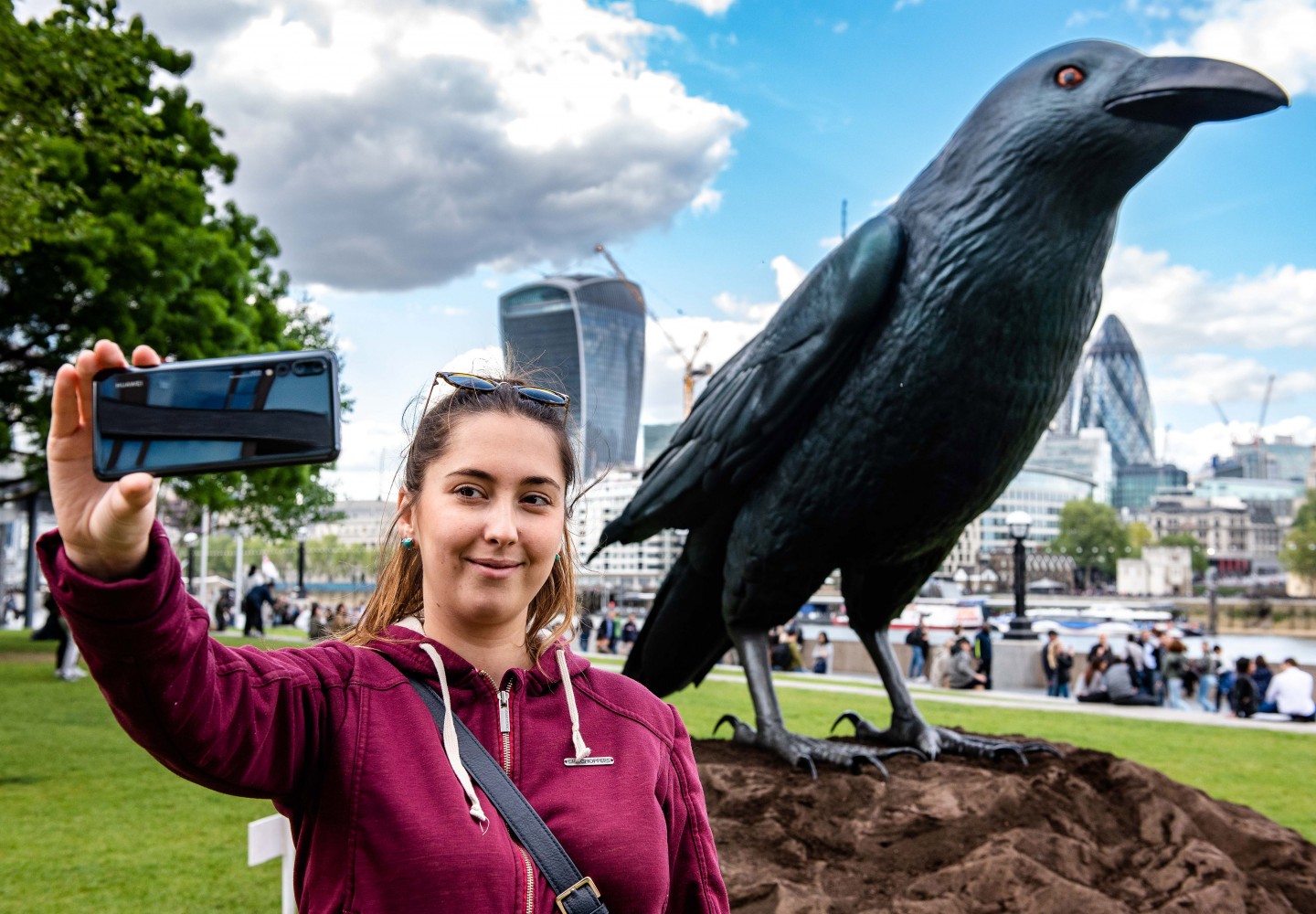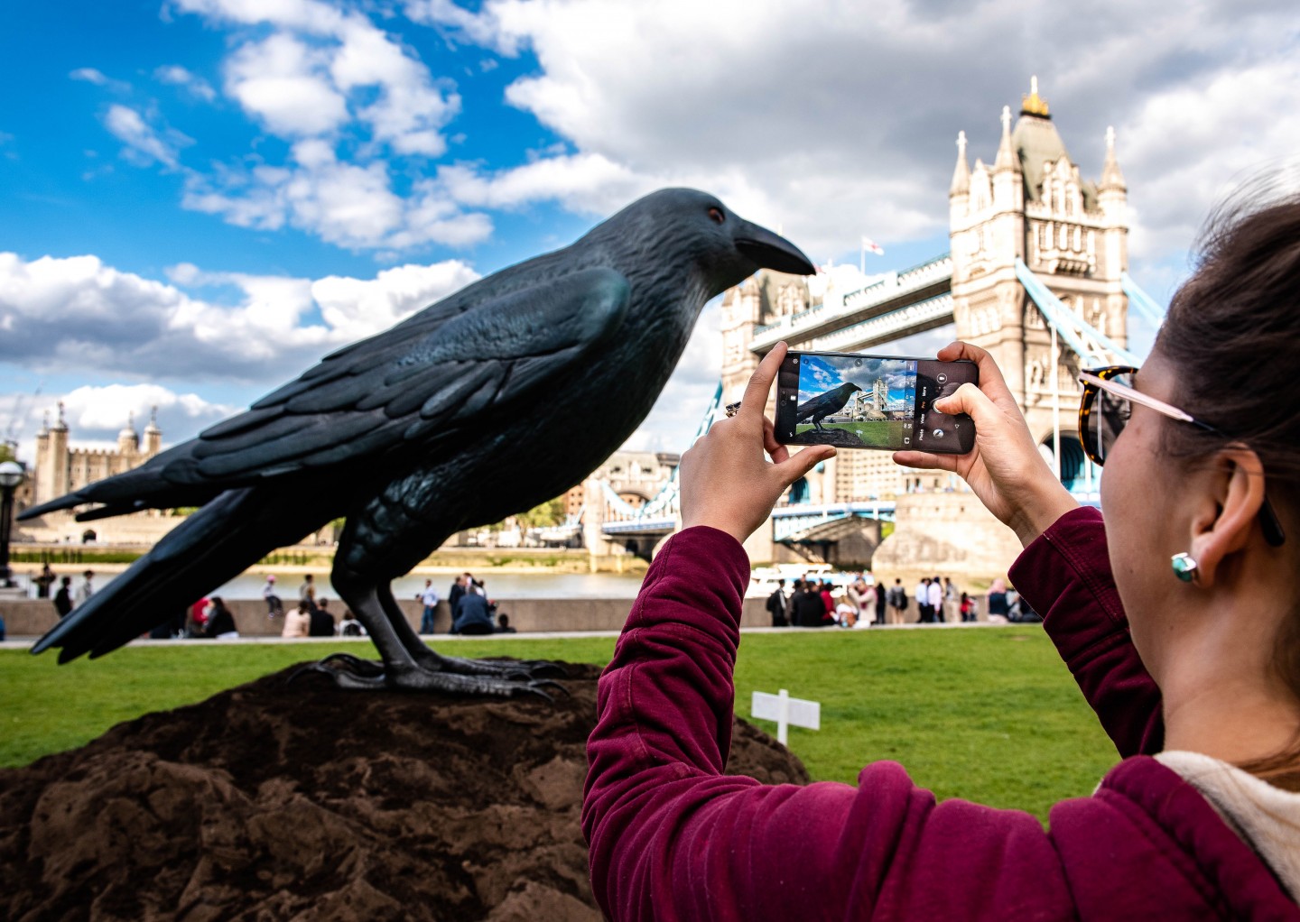 Par godu savam pētījumam par Lielbritānijas dabu, viedtālruņu ražotājs ''Huawei'' Londonas centrā uzstādījuši 2,5 metrus lielu kraukļa statuju.