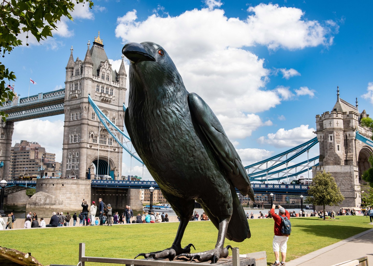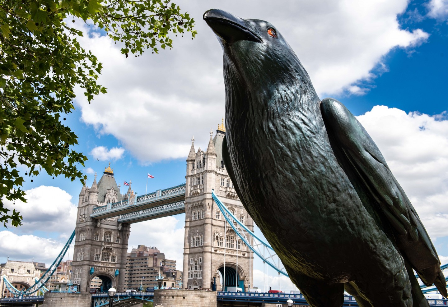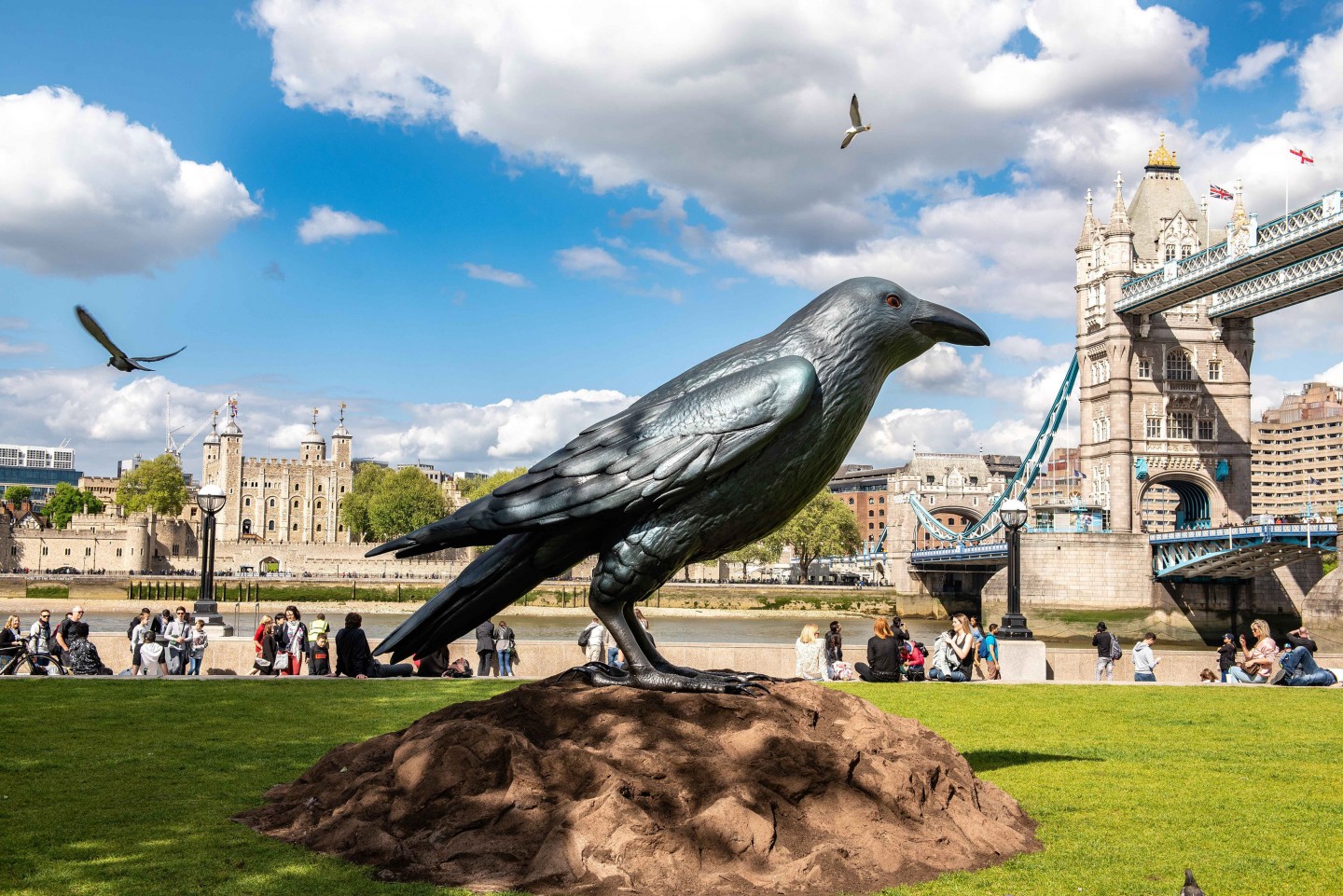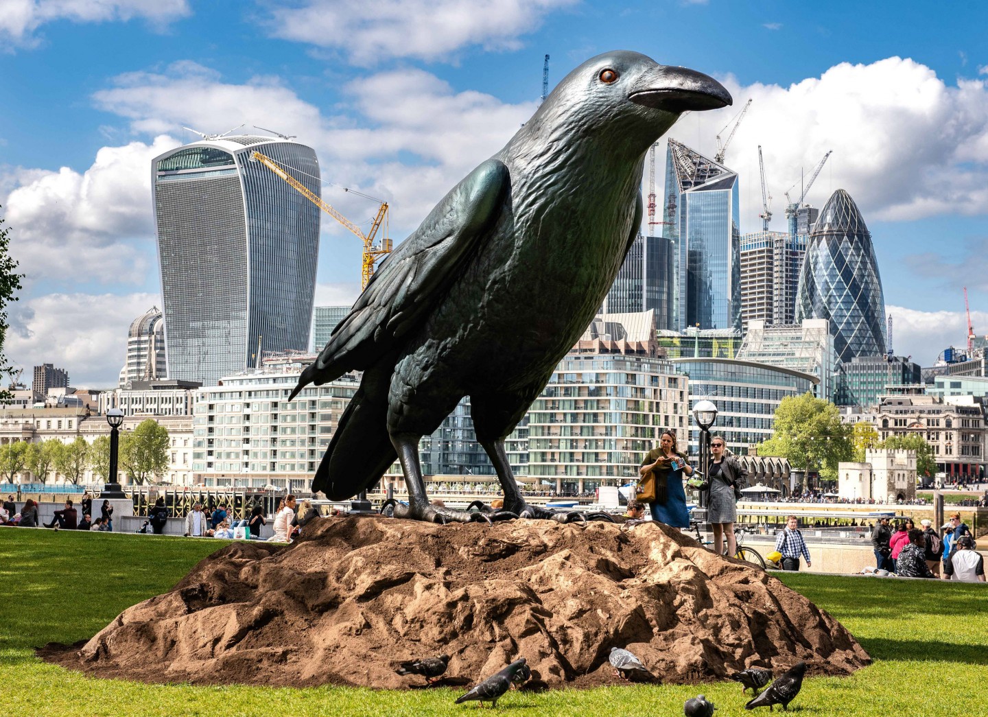 Par godu savam pētījumam par Lielbritānijas dabu, viedtālruņu ražotājs ''Huawei'' Londonas centrā uzstādījuši 2,5 metrus lielu kraukļa statuju.