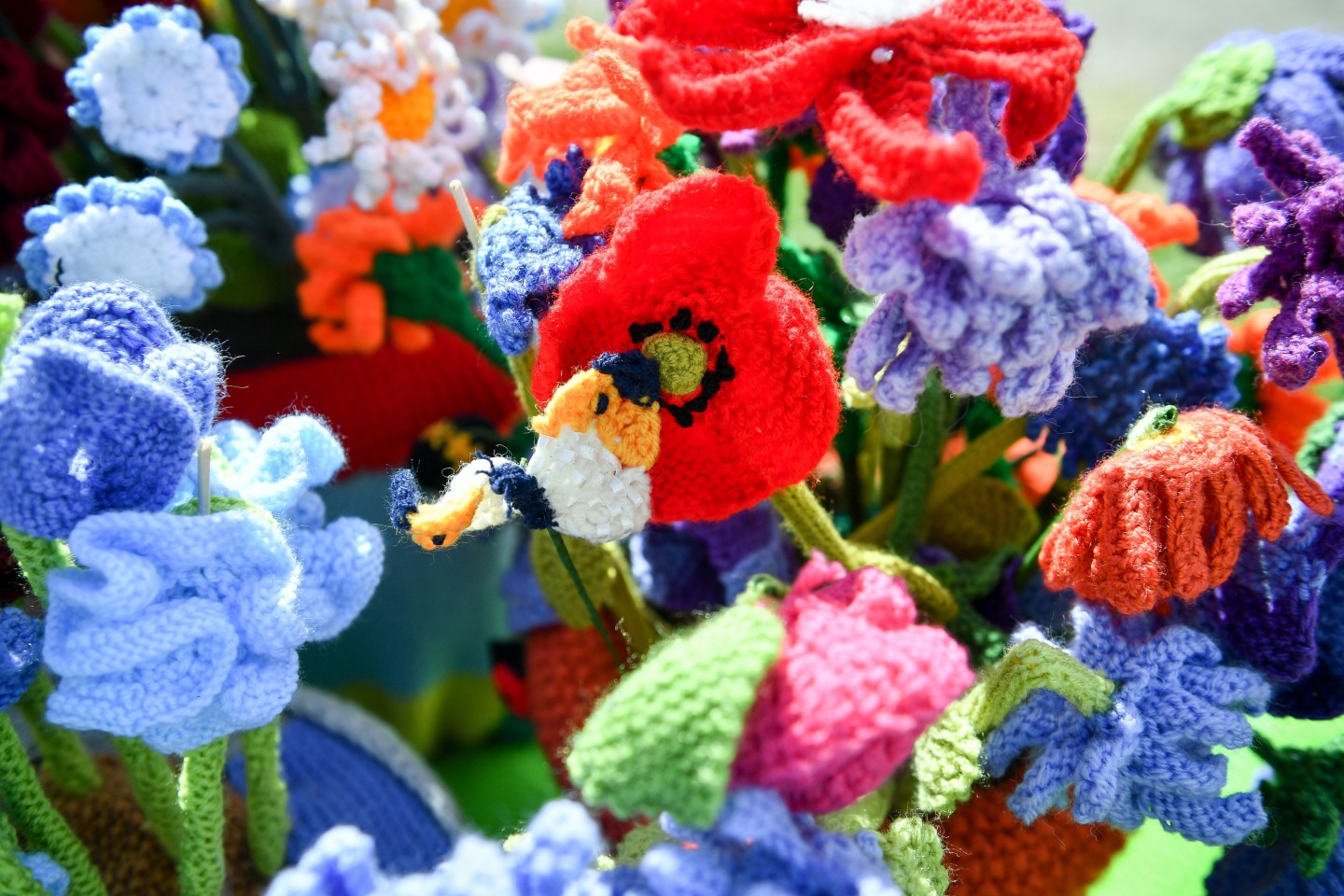 Anglijas iedzīvotāja Klēra Janga radījusi unikālu dārzu- tajā uzplaukuši nevis īsti, bet gan adīti ziedi. Unikālais darbs tapis slimā vīra piemiņai un izrādīts pavasara festivālā Anglijā.