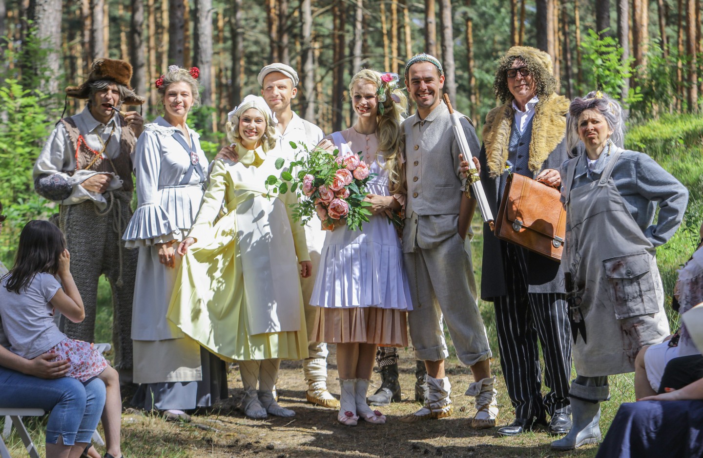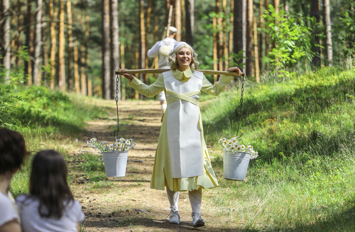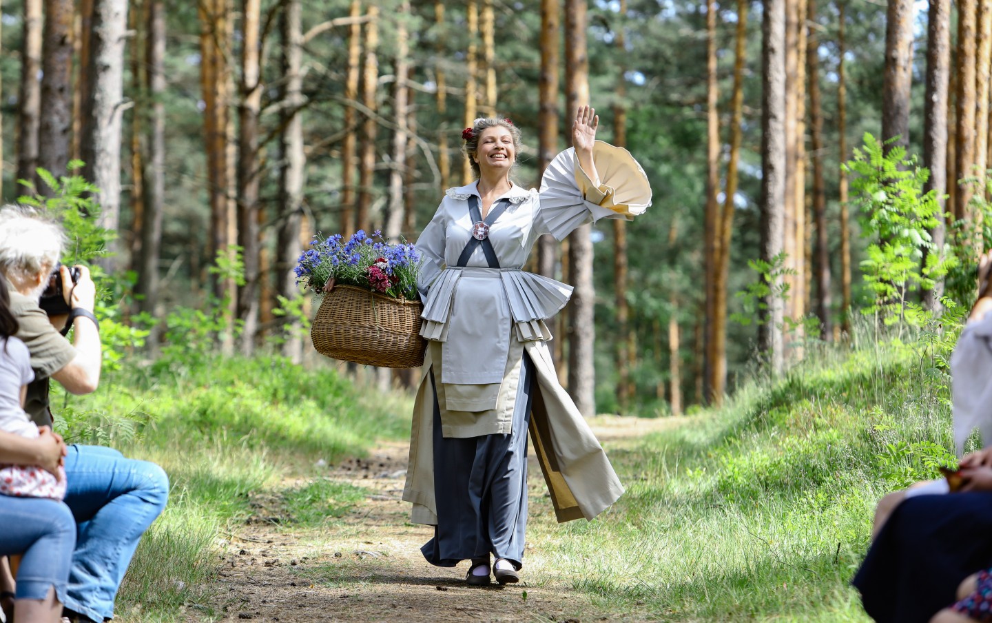 Biķenieku mežā trešdien notika izrādes "No saldenās pudeles" modes skate.