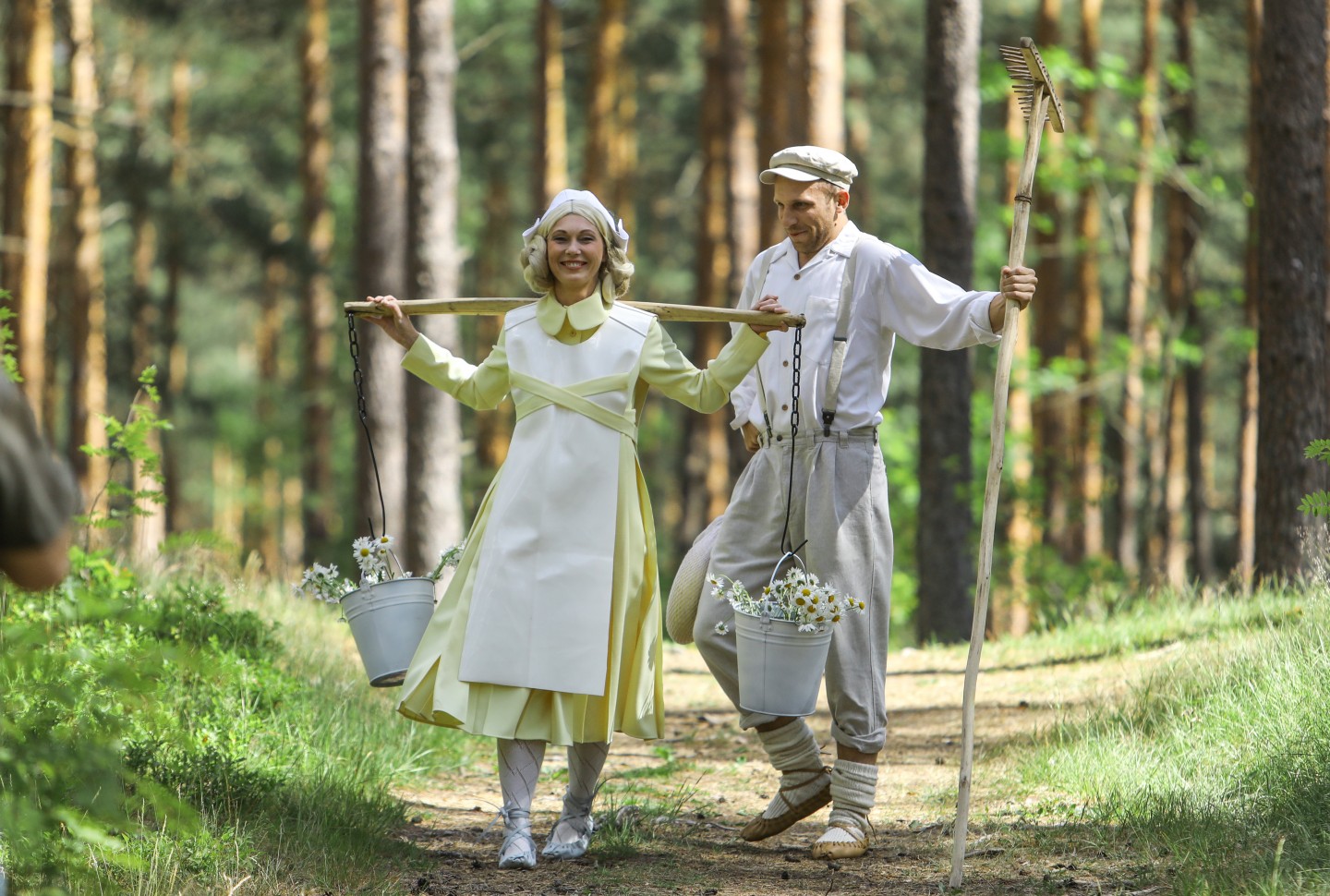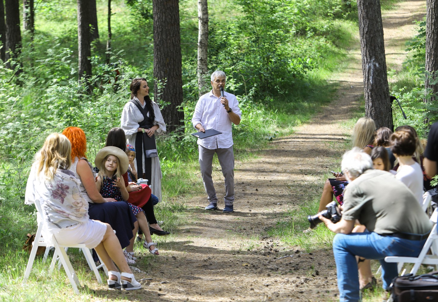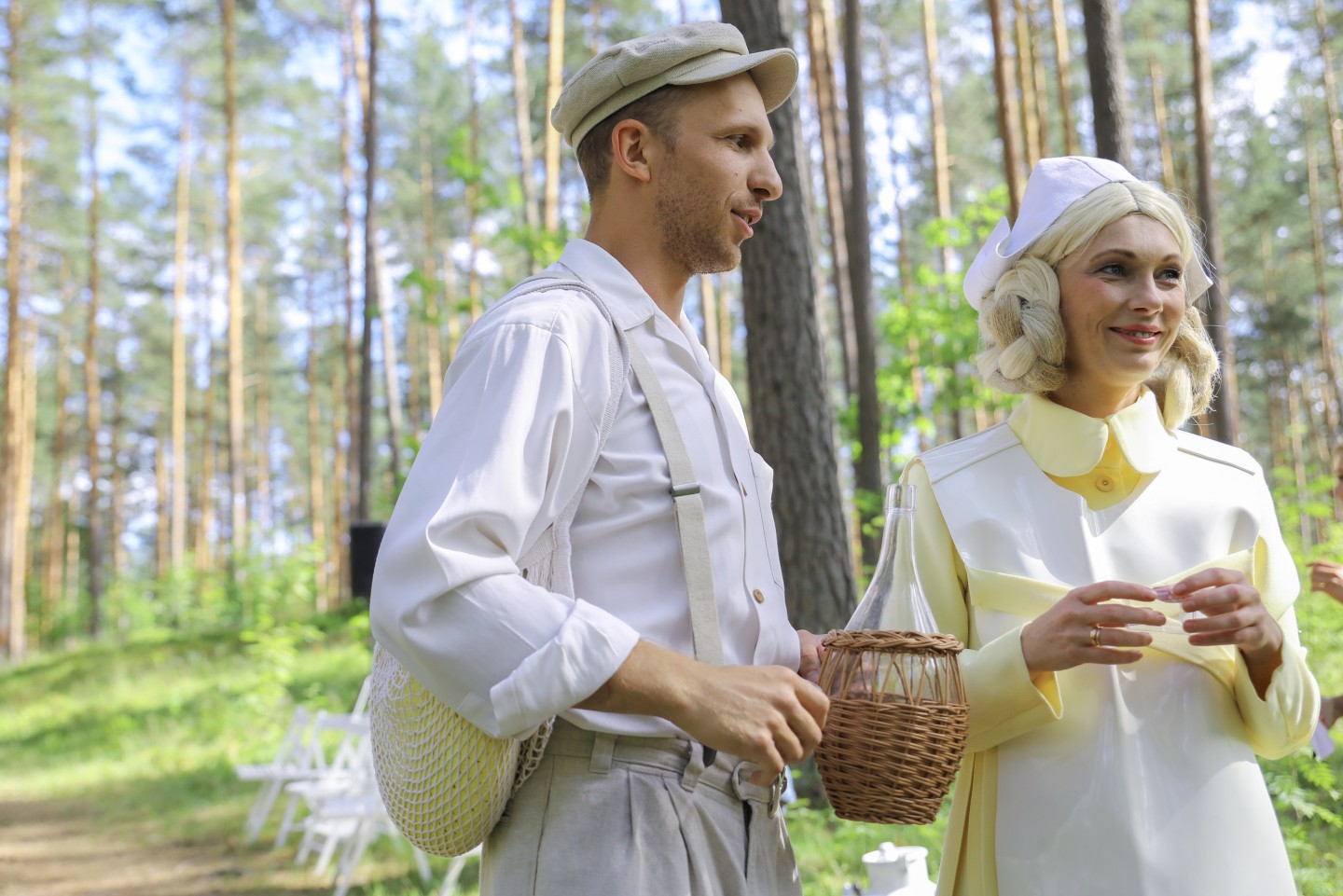 Biķenieku mežā trešdien notika izrādes "No saldenās pudeles" modes skate.