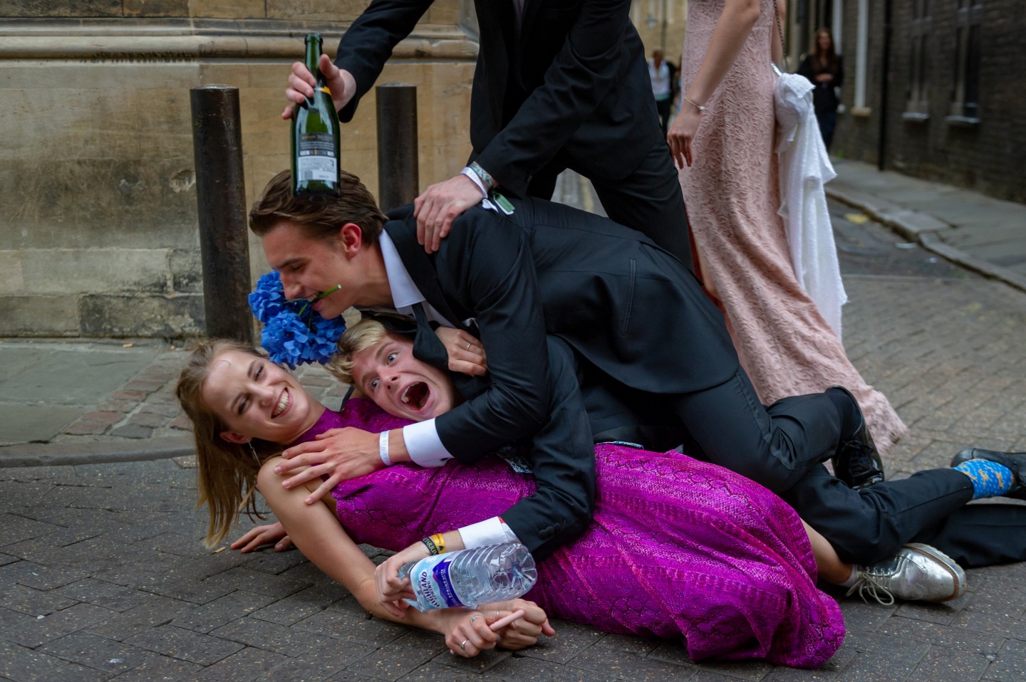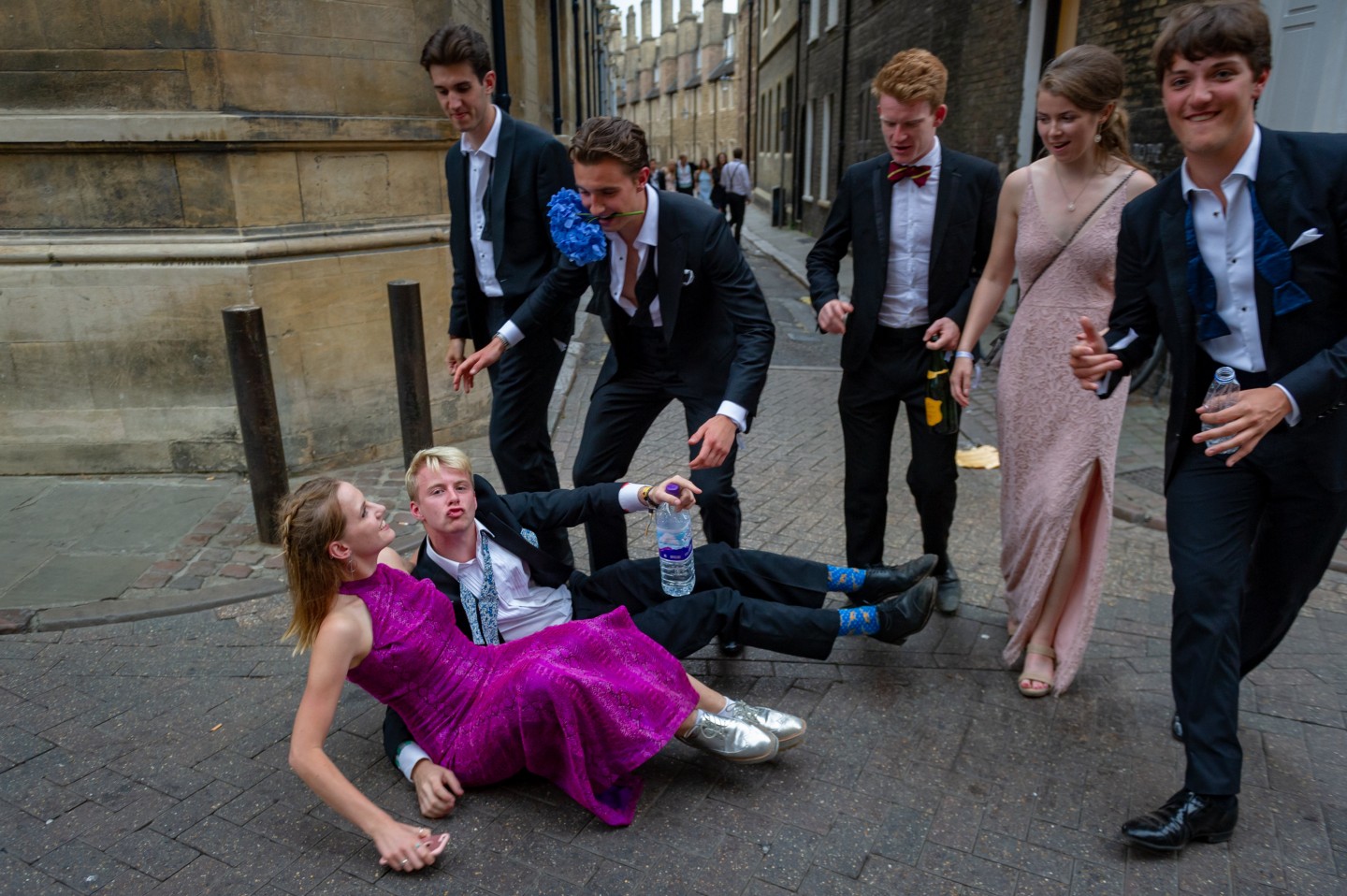Kembridžas Universitātes studenti pēc vētrainas ballītes