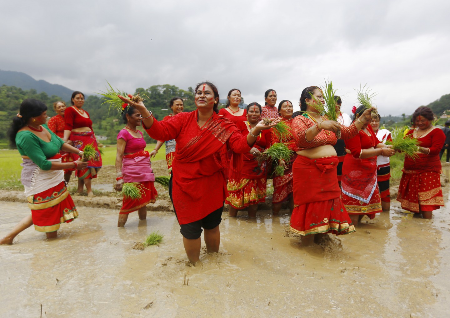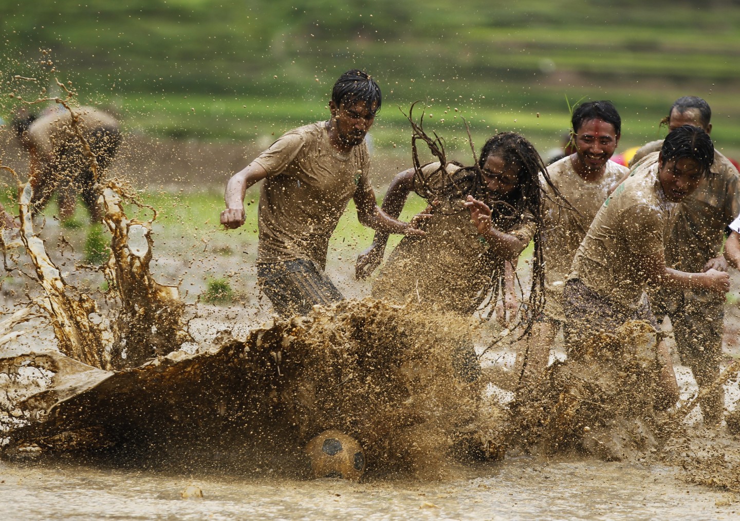 Jūnijā izskaņā Nepālā atzīmēta rīsu stādīšanas diena, kuras laikā appludinātajos laukos cilvēki metas izbaudīt īstas dubļu cīņas.
