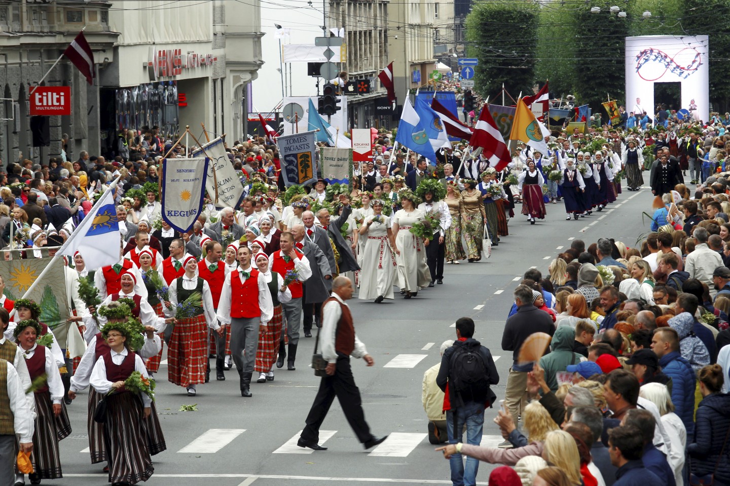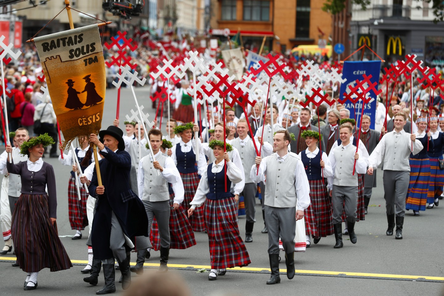 Rīgā svētdien notika XXVI Vispārējo latviešu Dziesmu un XVI deju svētku dalībnieku gājiens. Paredzēts, ka gājienā piedalījās vairāk nekā 43 000 svētku dalībnieku.