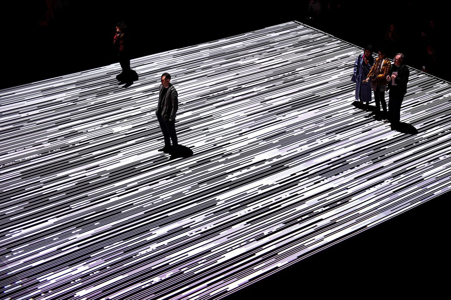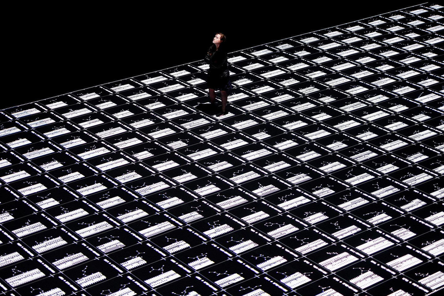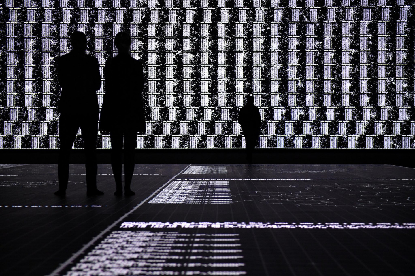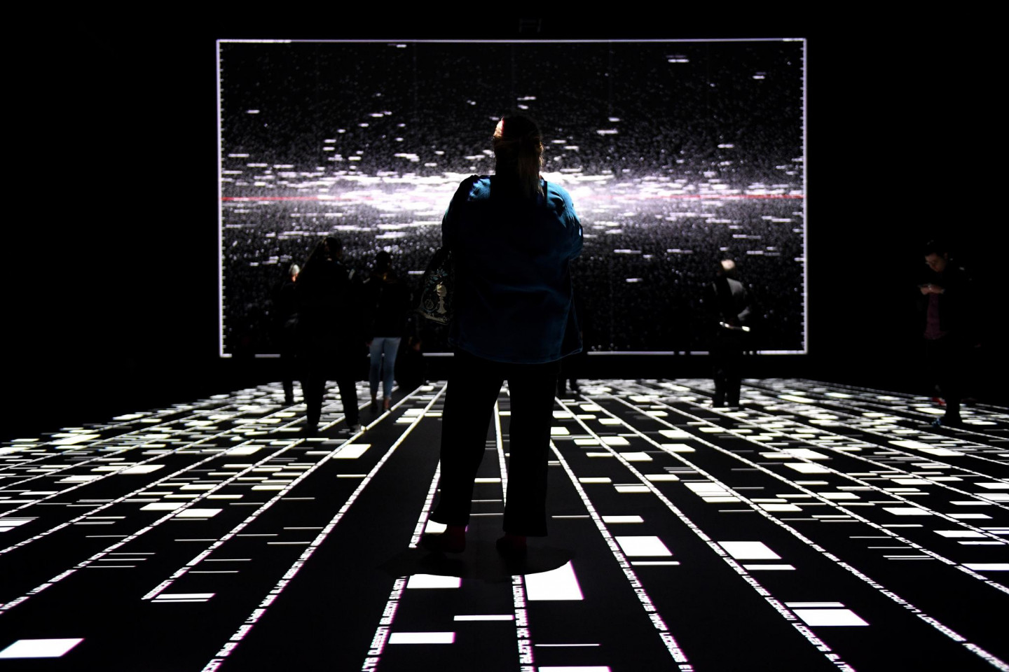 Sidnejas ''Carriageworks art institute'' apskatei izstādīta japāņu mākslinieka Rodži Ikedas instalācija ''micro/macro''.