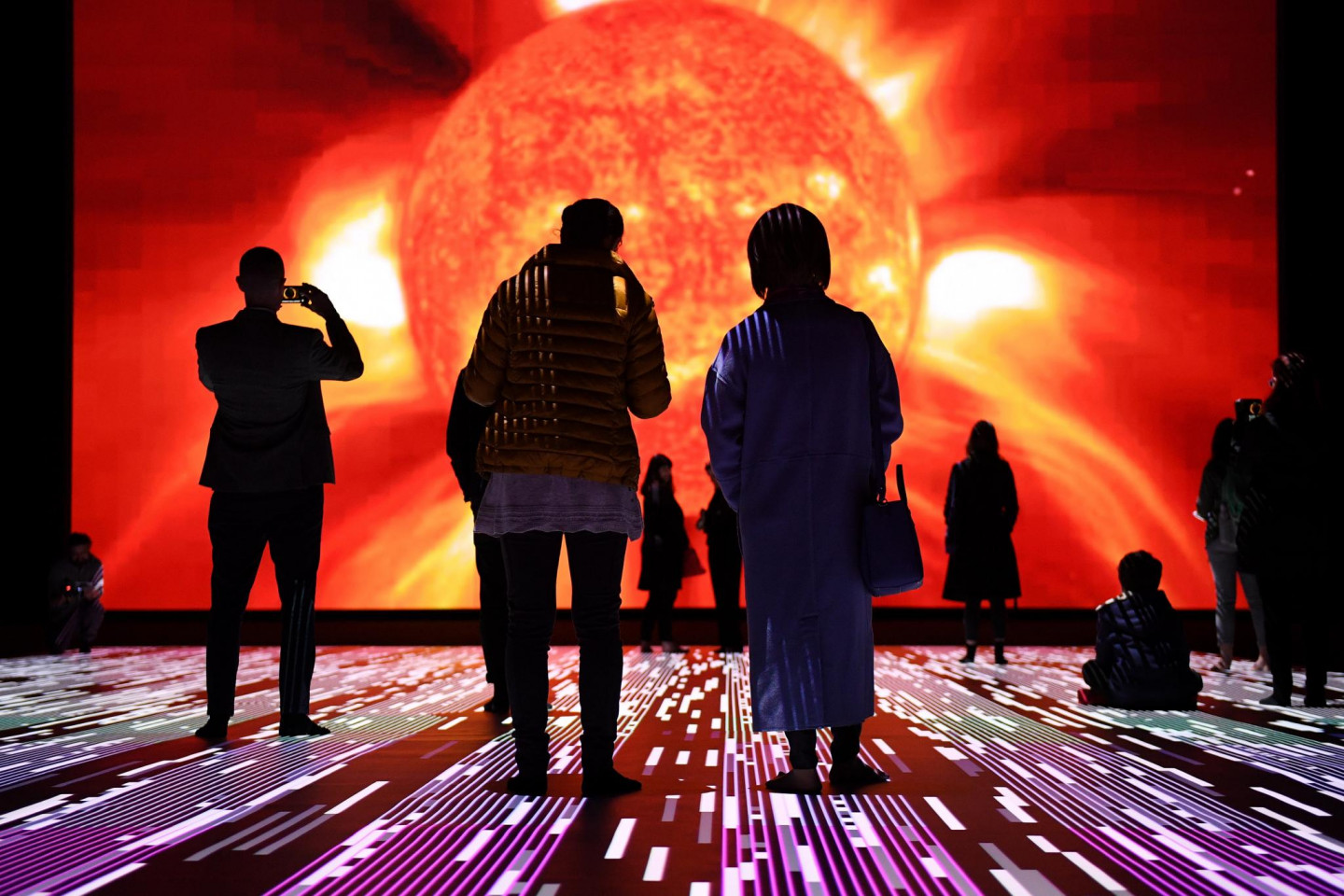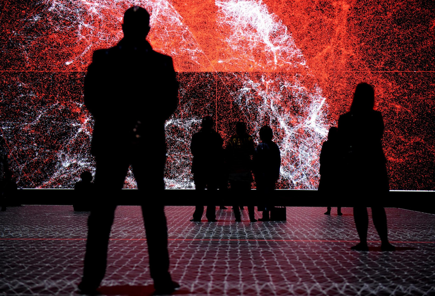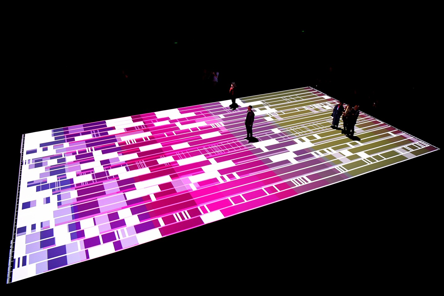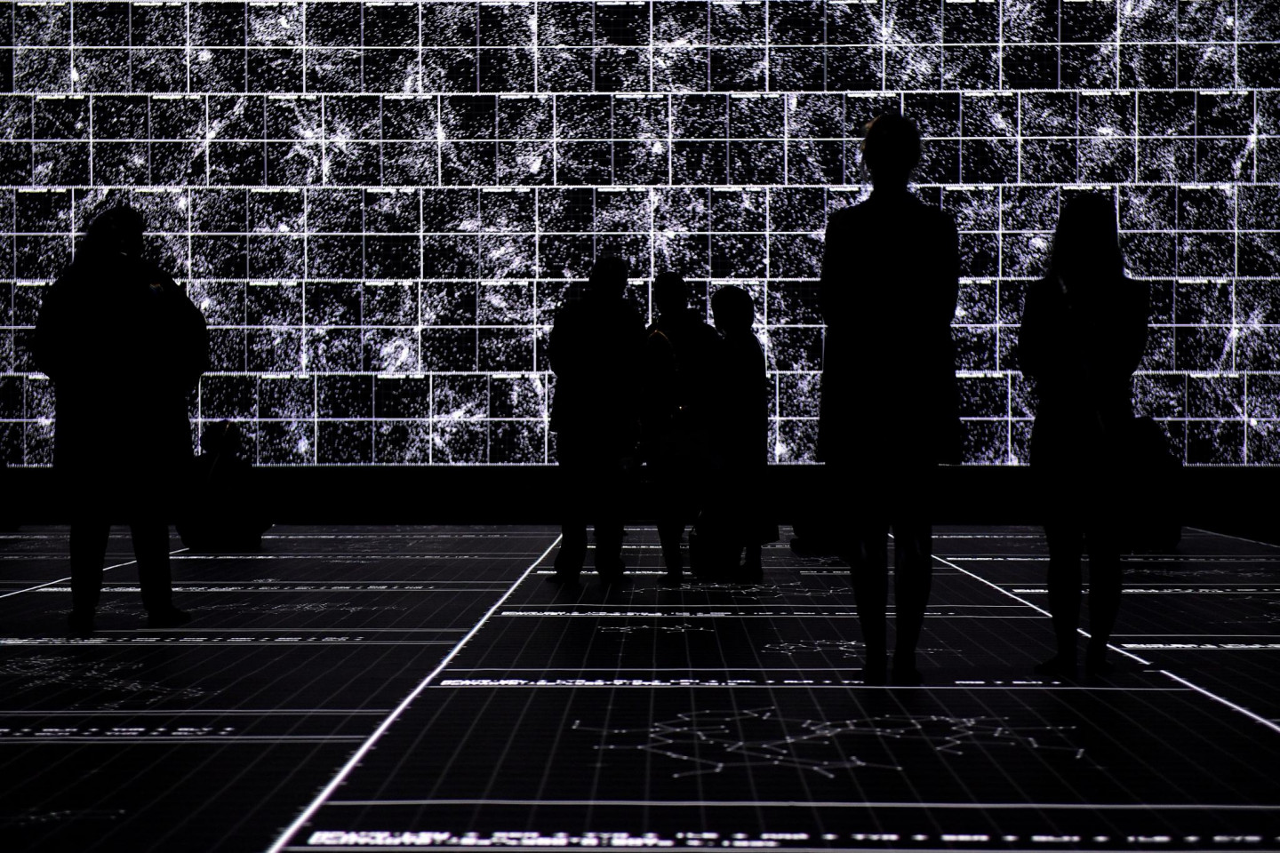 Sidnejas ''Carriageworks art institute'' apskatei izstādīta japāņu mākslinieka Rodži Ikedas instalācija ''micro/macro''.