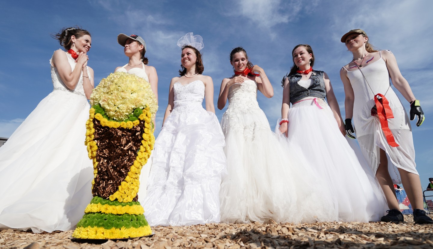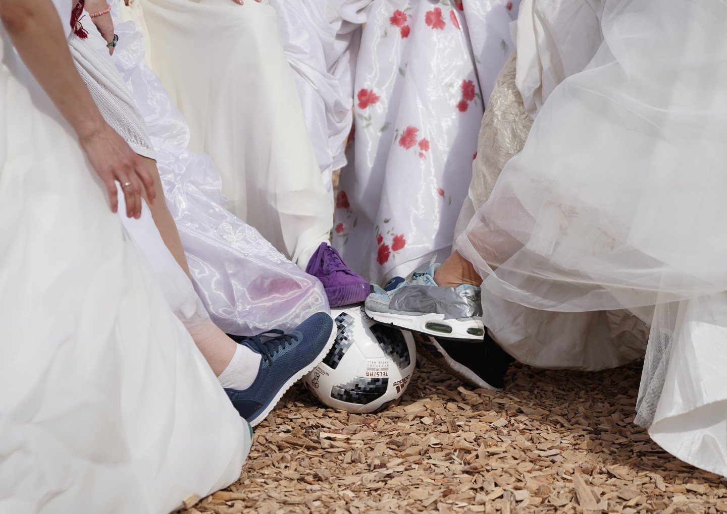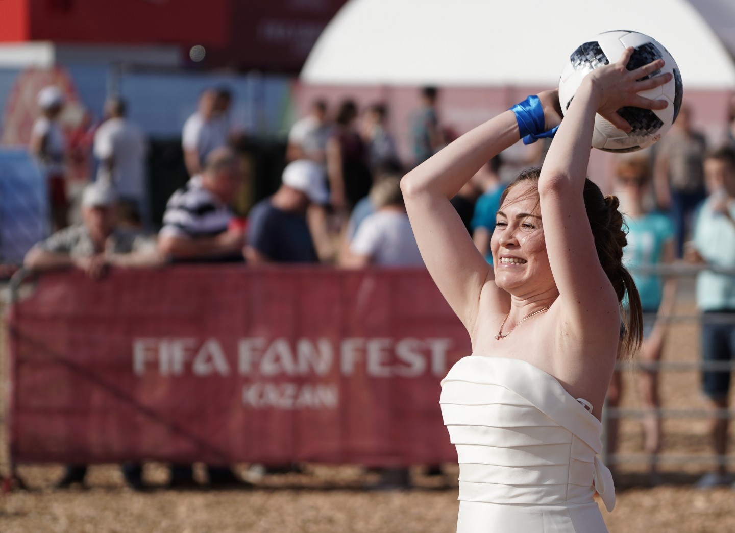 Laikā, kad pasaules kausā futbolā Maskavā cīnās labākās komandas, savu spēli pludmalē sarīkojušas arī līgavas kāzu kleitās.