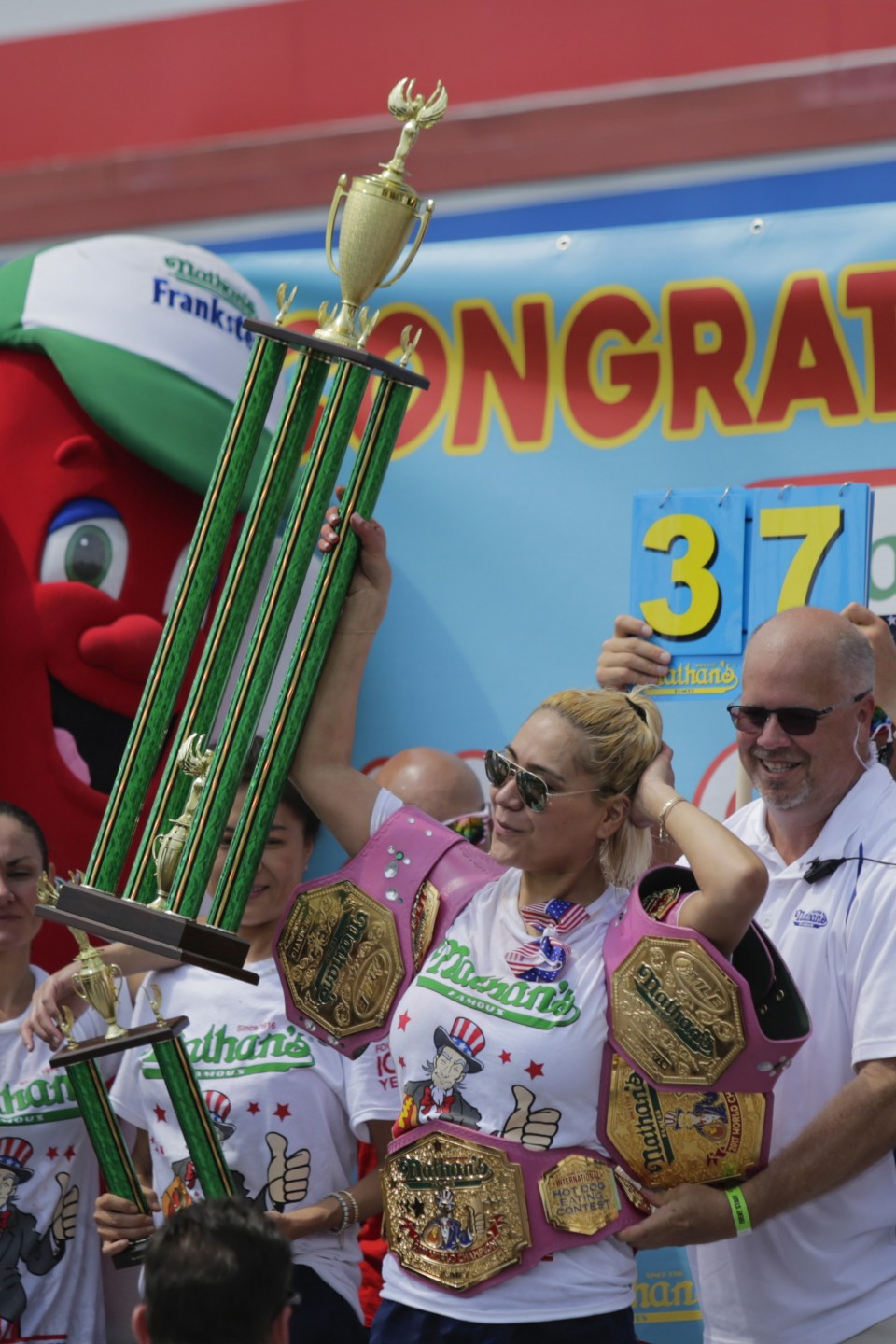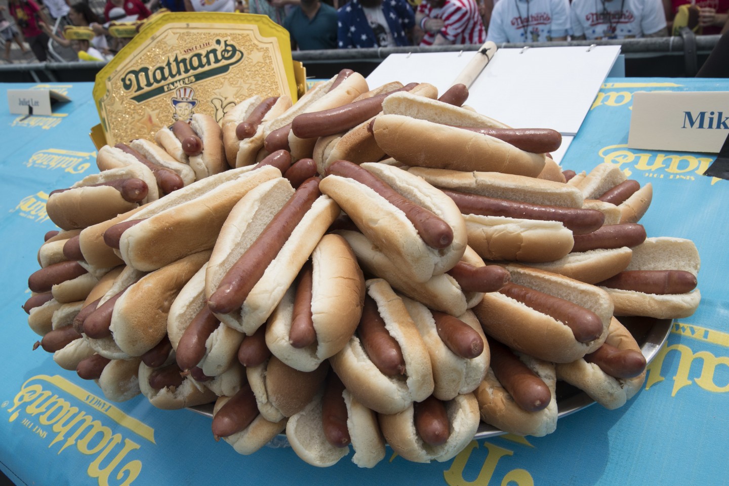 Kārtējais rekords uzstādīts ASV, kur hotdogu ēšanas sacensību uzvarētājs pēc kārtas apēdis 72 hotdogus.