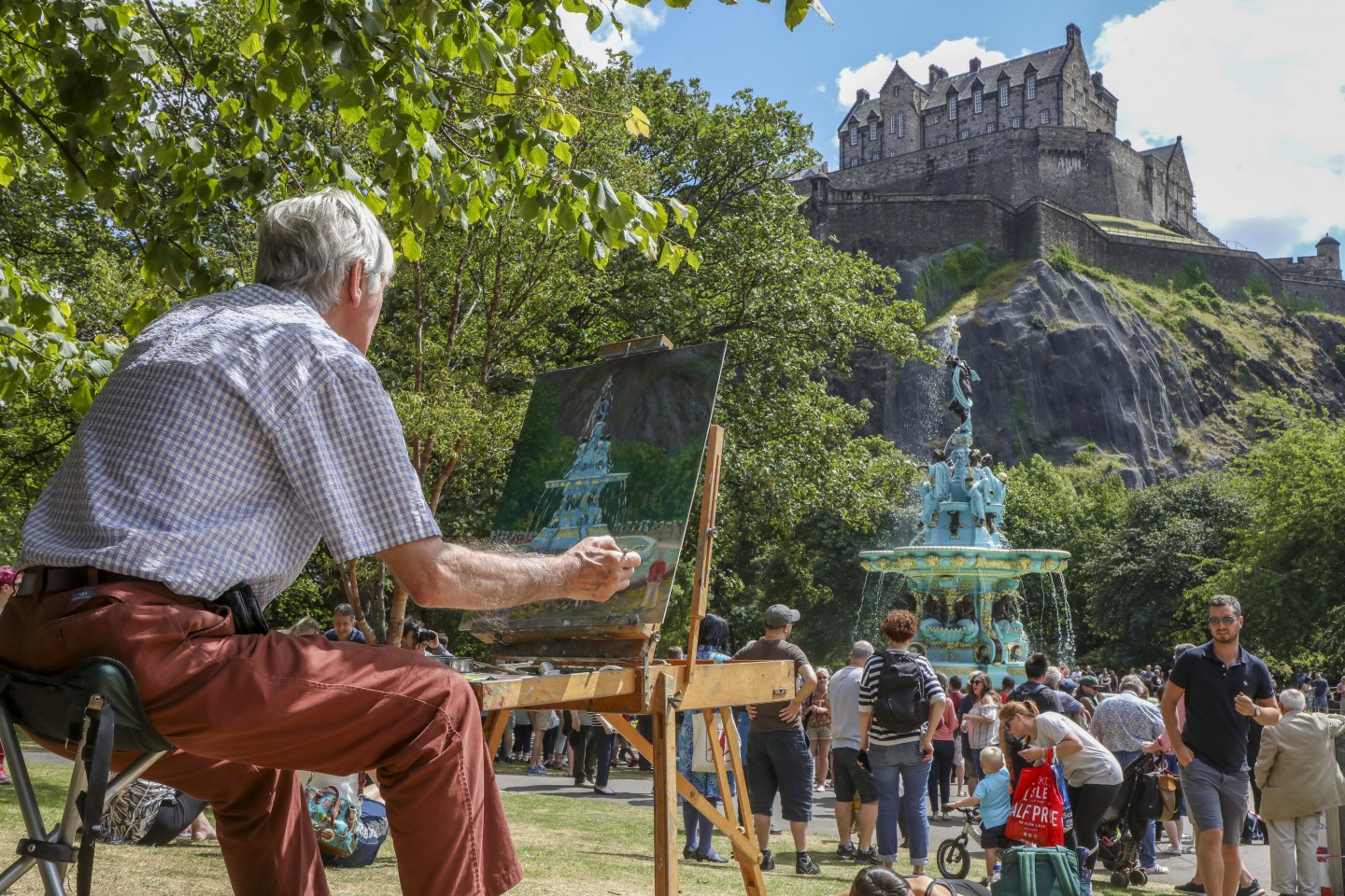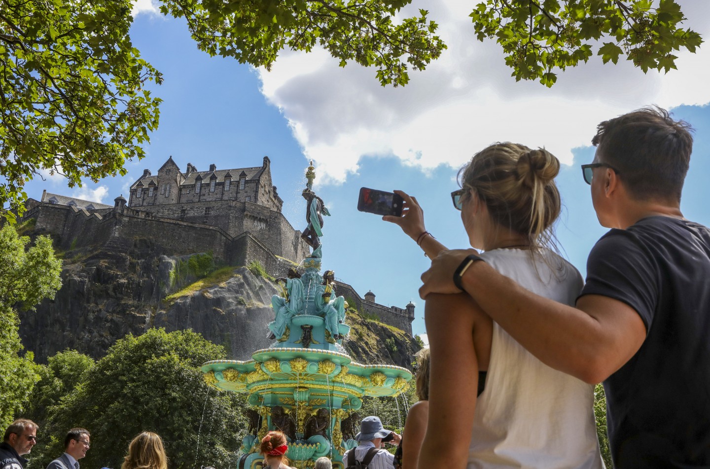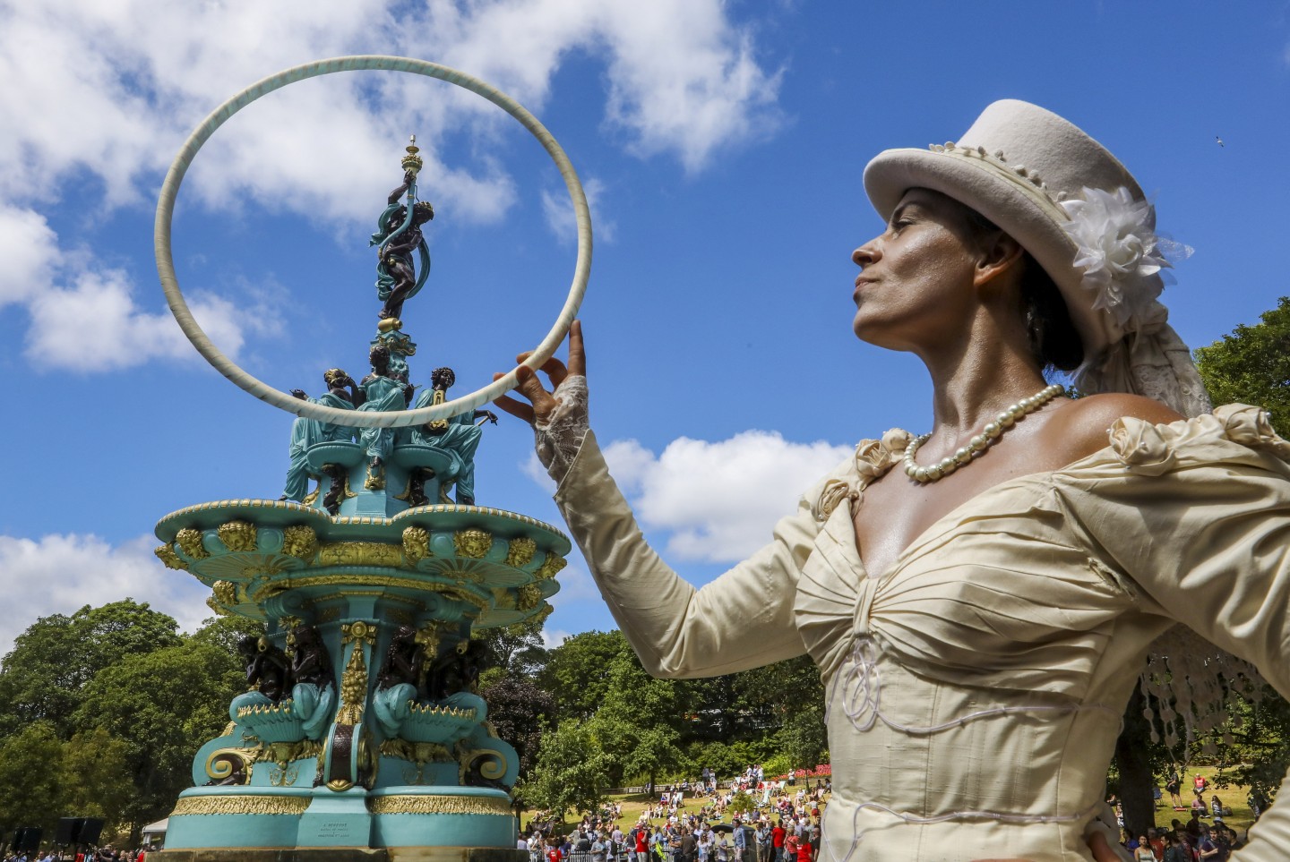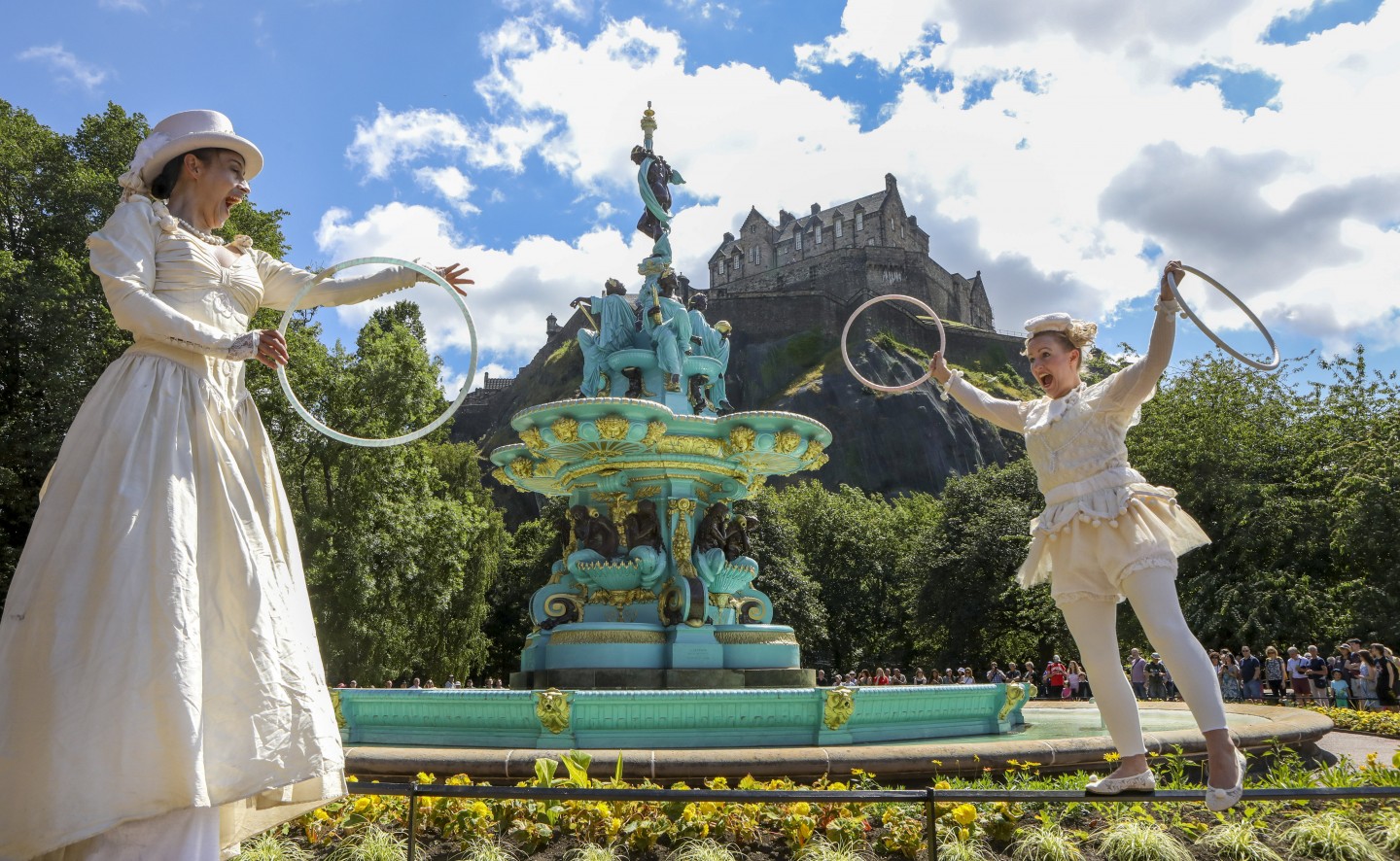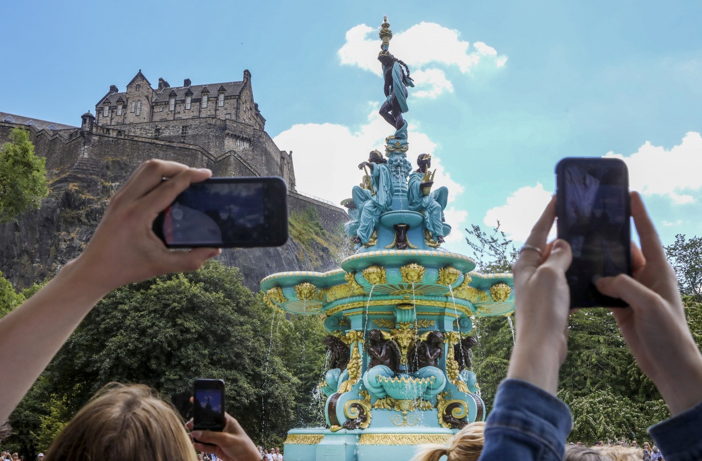 Pēc 1.8 miljonu mārciņu vērtās rekonstrukcijas Edinburgā, Princešu ielā, apskatāma greznā strūklaka.