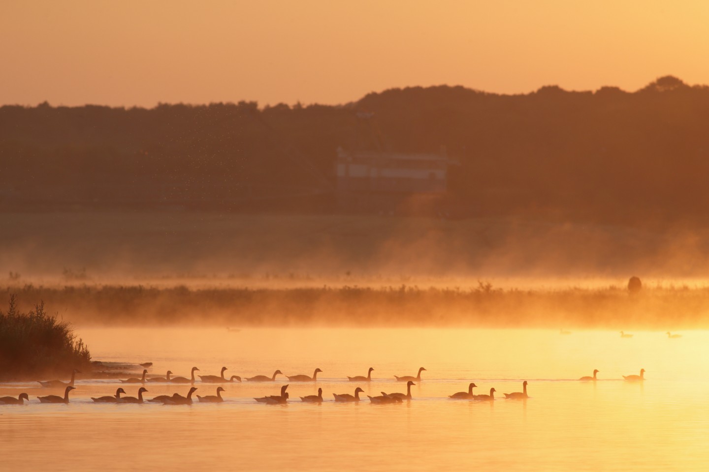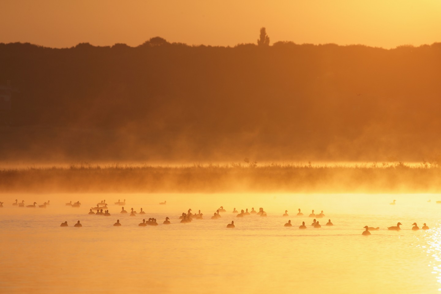 Fotogrāfi agrā rīta stundā iemūžinājuši saullēktu parkā Jorkšīrā. Nofotografēti arī ezerā mītošie ūdensputni.