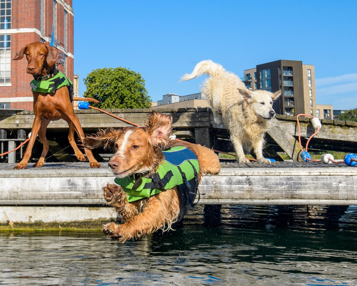 Otrdien, 17.jūlijā, Lielbritānijas galvaspilsētā Londonā pirmo reizi noticis suņu peldēšanas pasākums. Tas organizēts par godu jaunas vietnes suņu staidzināšanai un pieskatīšanai Rover.com palaišanai.