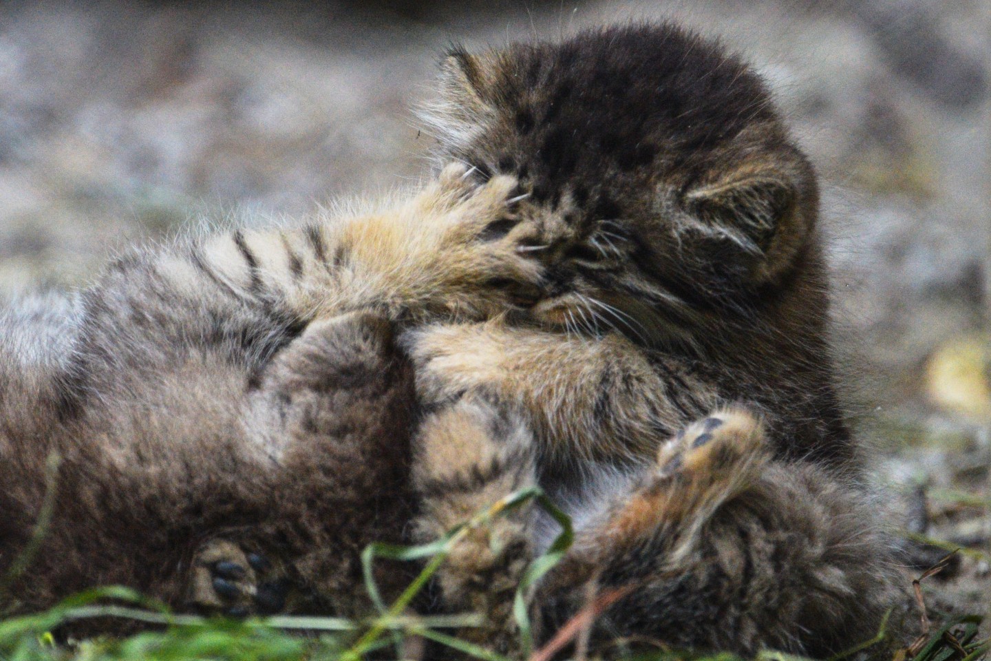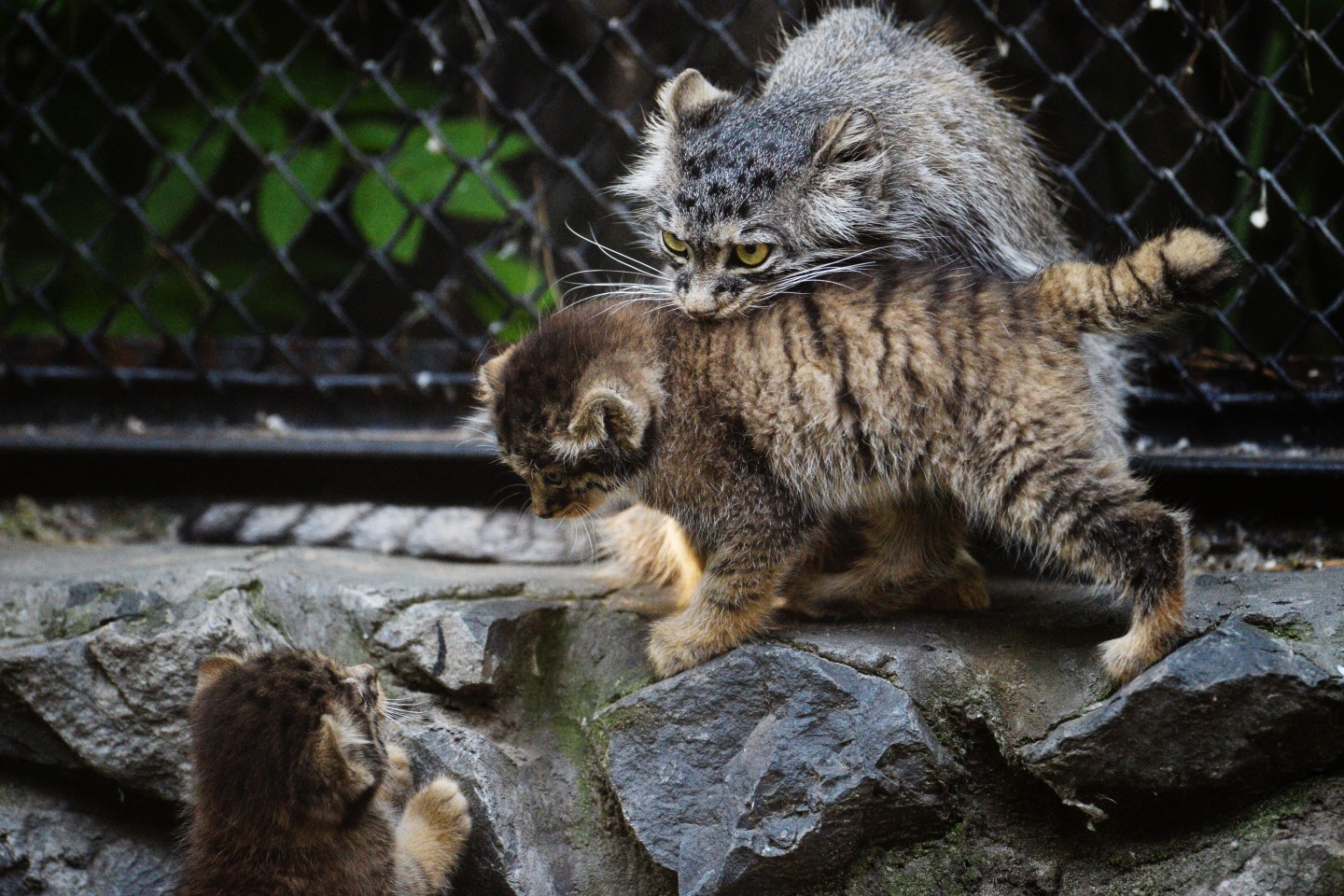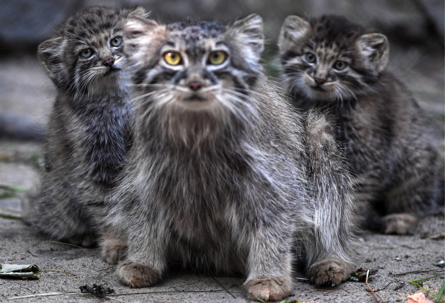 Fotogrāfi fiksējuši, kā zooloģiskajā dārzā Novosibirskā uzvedas maijā dzimušie manulas jeb savvaļas kaķi.