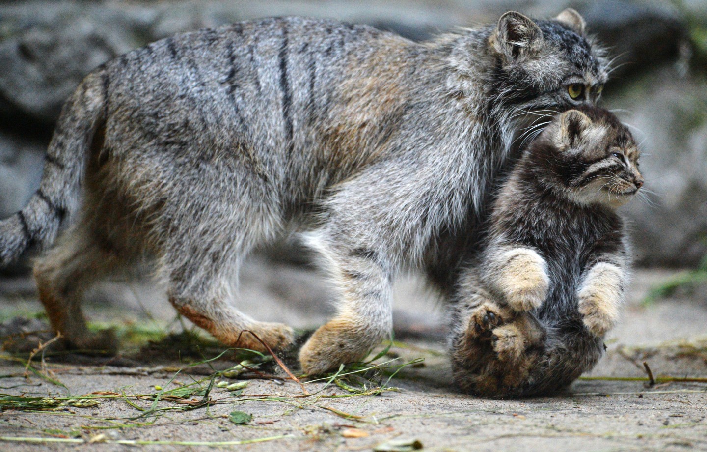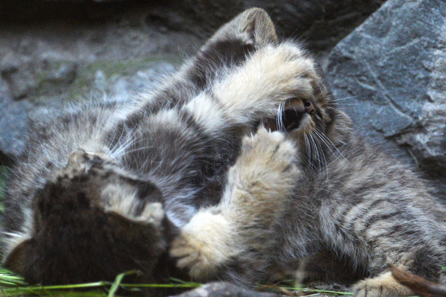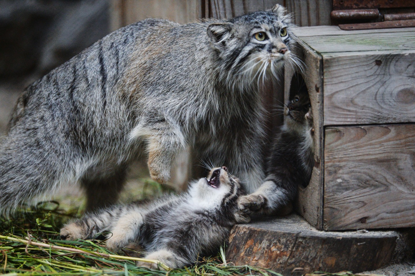 Fotogrāfi fiksējuši, kā zooloģiskajā dārzā Novosibirskā uzvedas maijā dzimušie manulas jeb savvaļas kaķi.